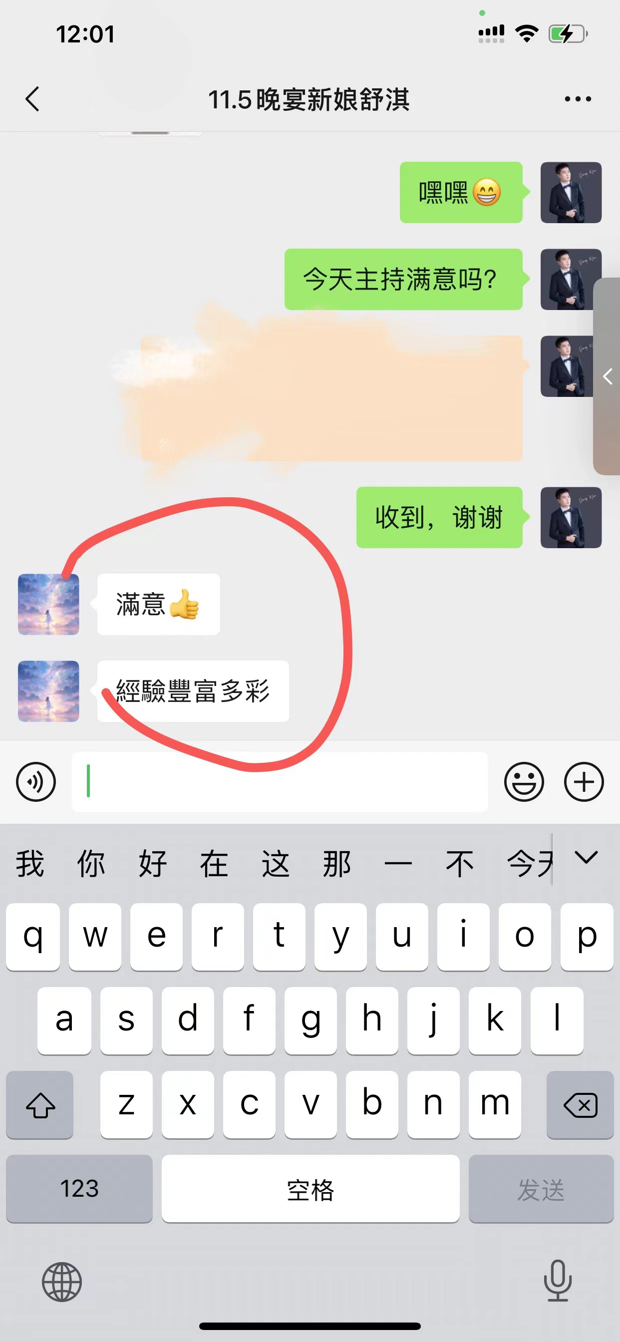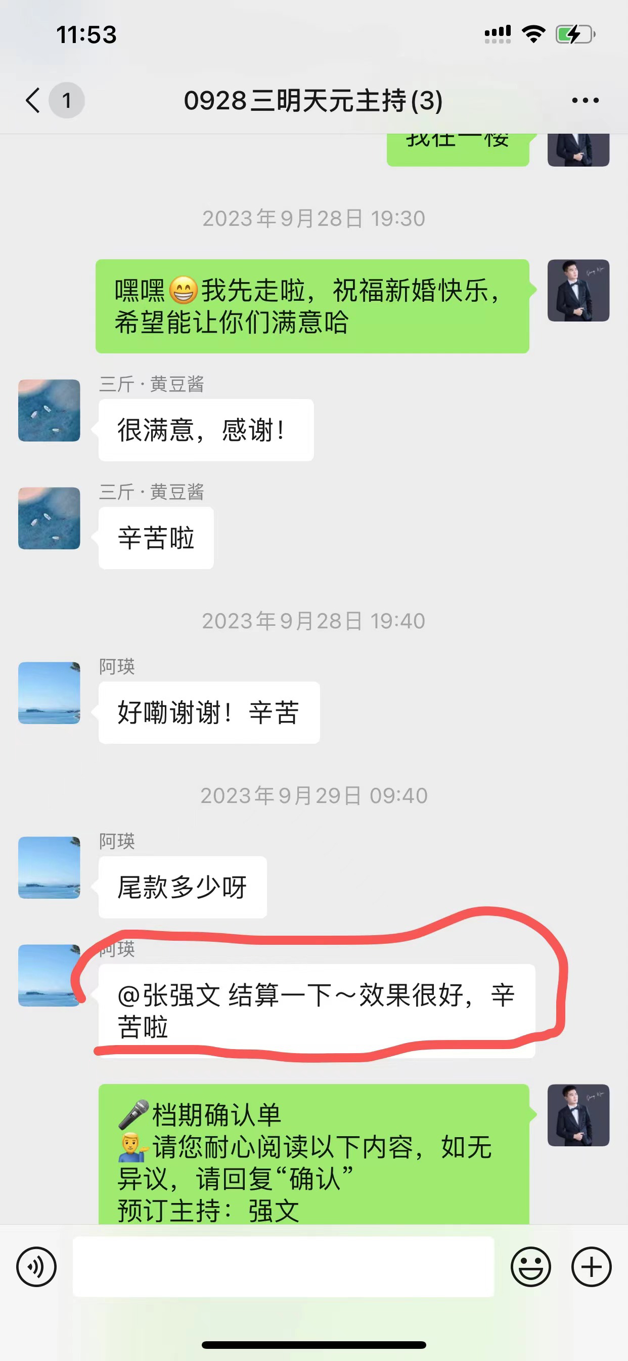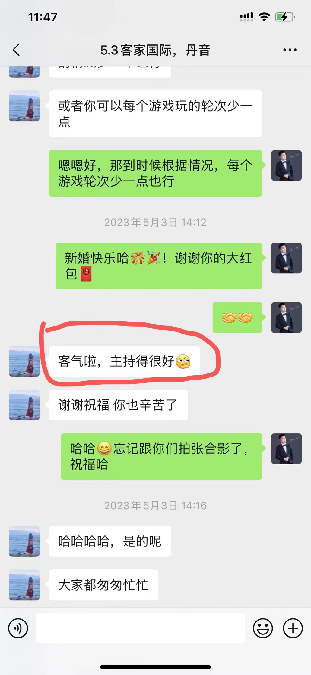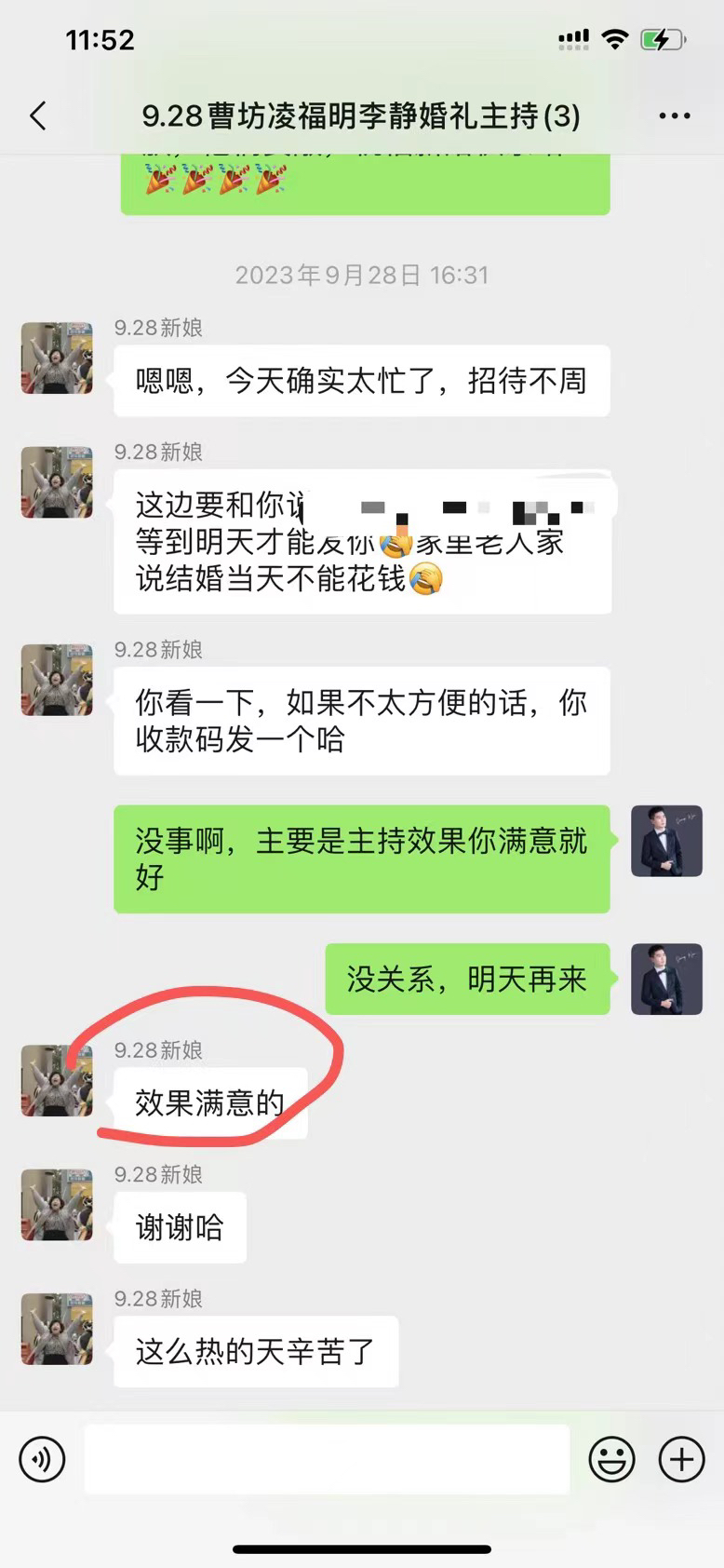 • 在婚礼前就一直密切沟通,主持人真的太给力了,很贴心,很多我没想到的,都能帮我解决了,整个婚礼过程一直跟我说,不要担心有他在,只要我漂漂亮亮的不用担心一切。有这句话真的让我在婚礼上觉得很踏实很感动。
