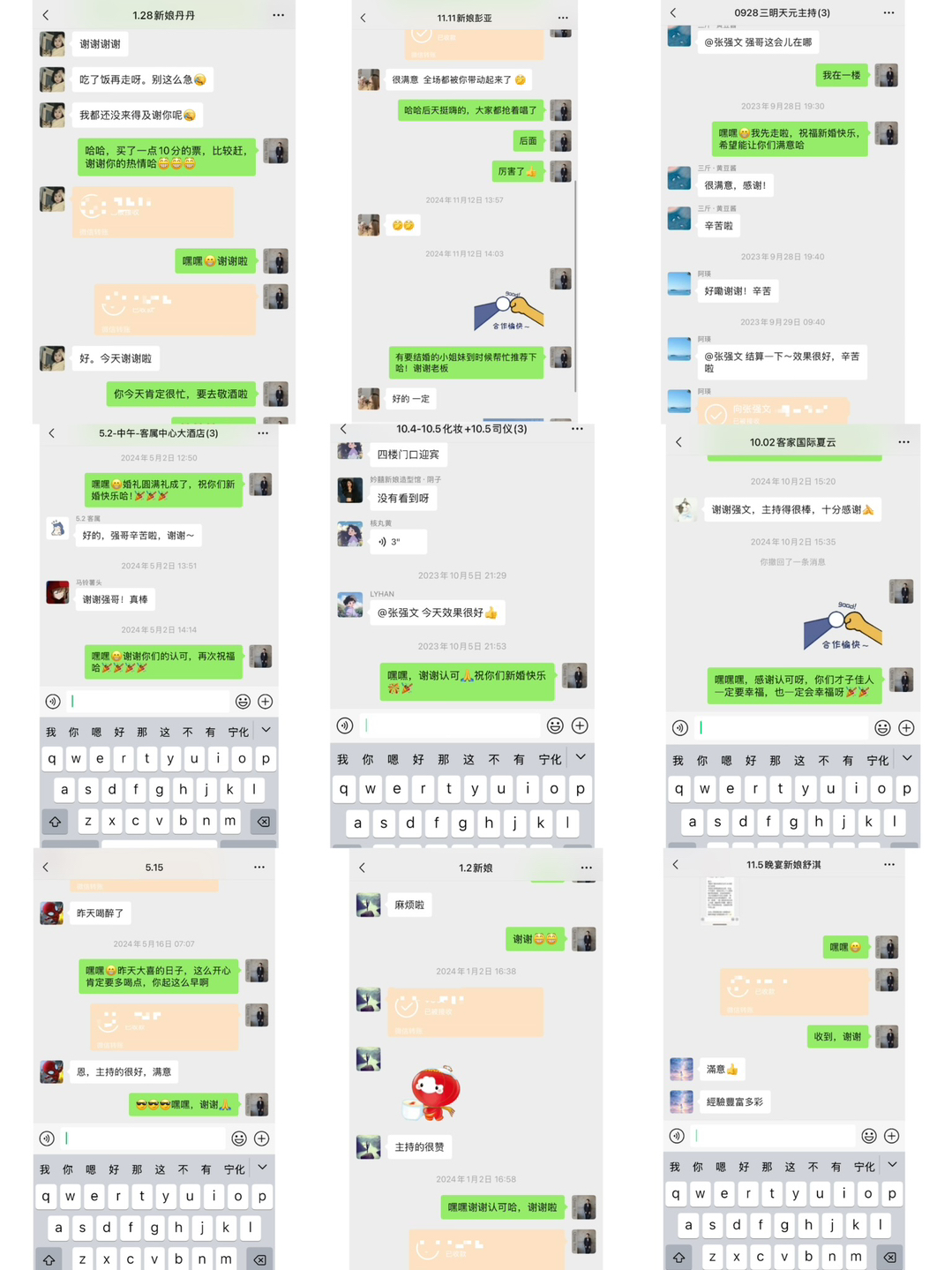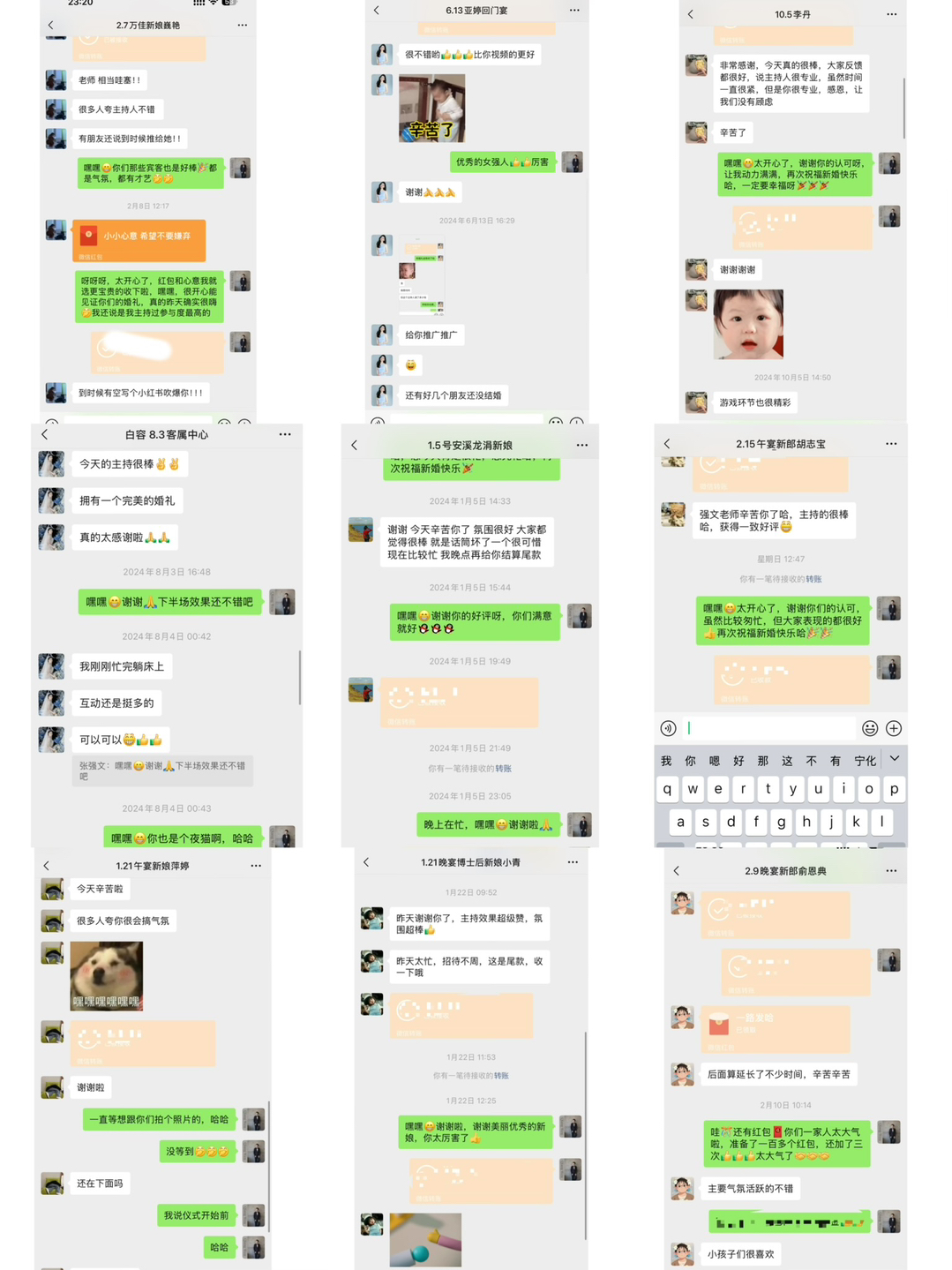 • 真诚认成负责的服务好每对新人,感谢所有新人的信任,把重要仪式的呈现让我来完成,不辜负信任,在婚礼前会根据每对新人的要求想法创意,定制个性化婚礼流程以及婚礼台词,台词定制走心,不俗套不尴尬不煽情,用高性价比来提升服务口碑,为更多新人完成梦中的婚礼!