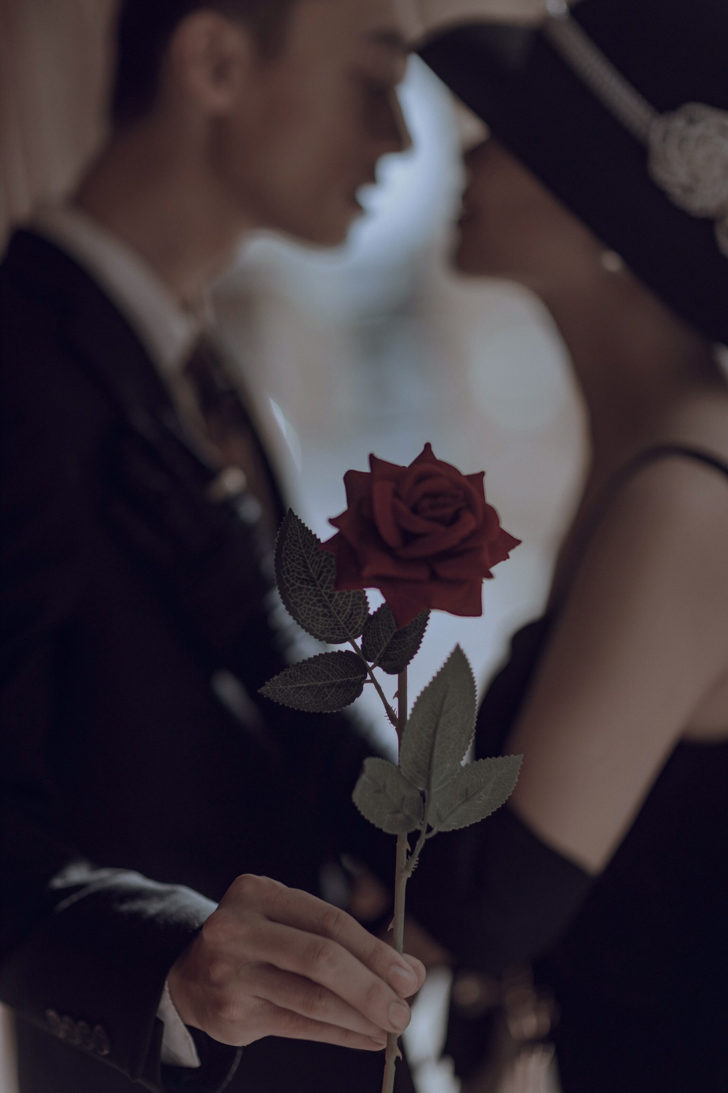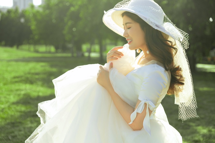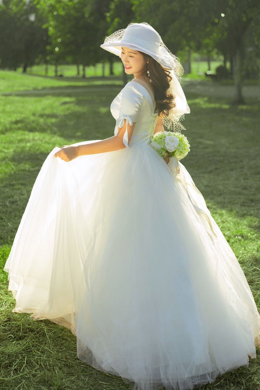 • 法式礼帽搭配蕾丝手套,与修身白纱尽显新娘的优雅 。#2023热门婚纱照风格