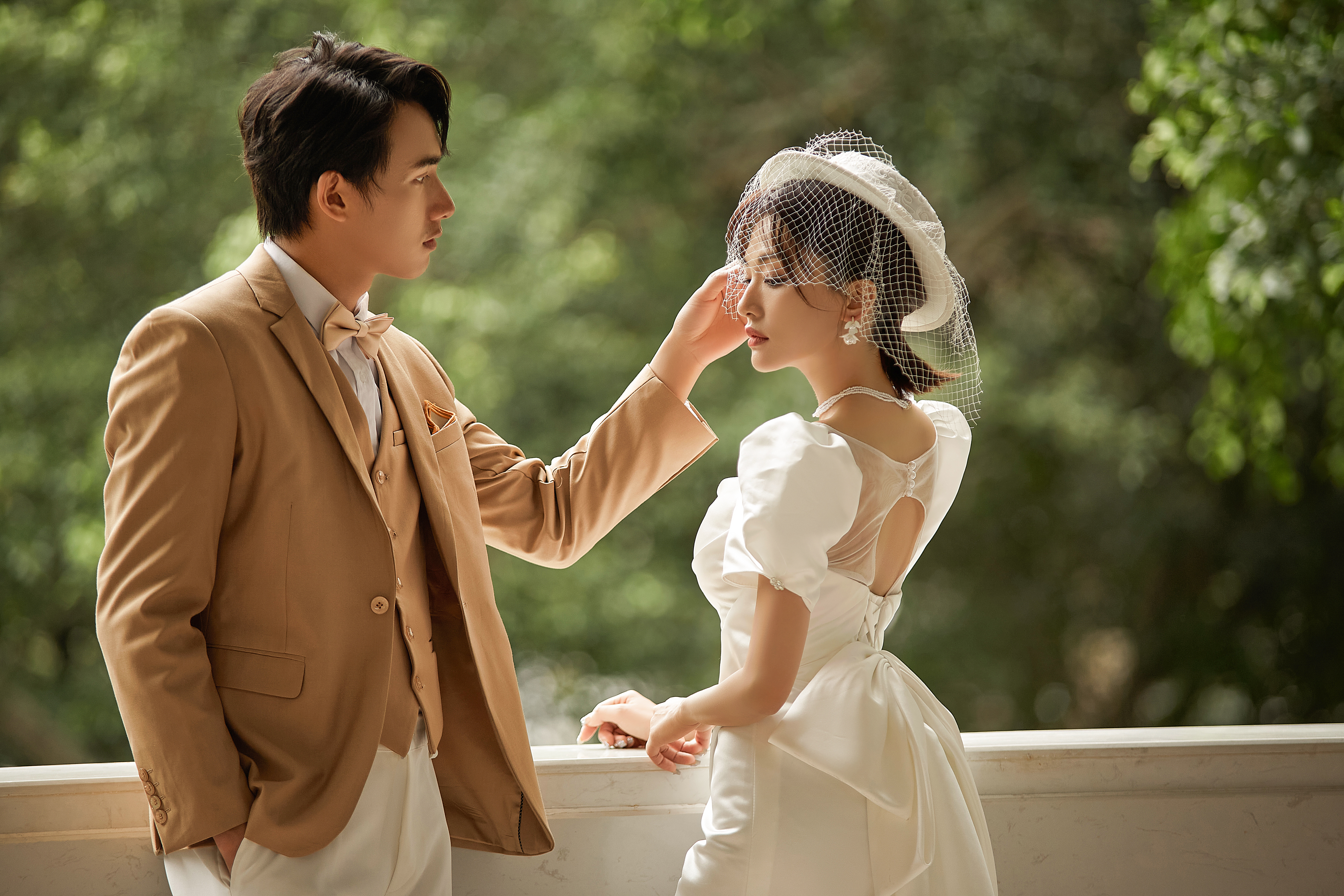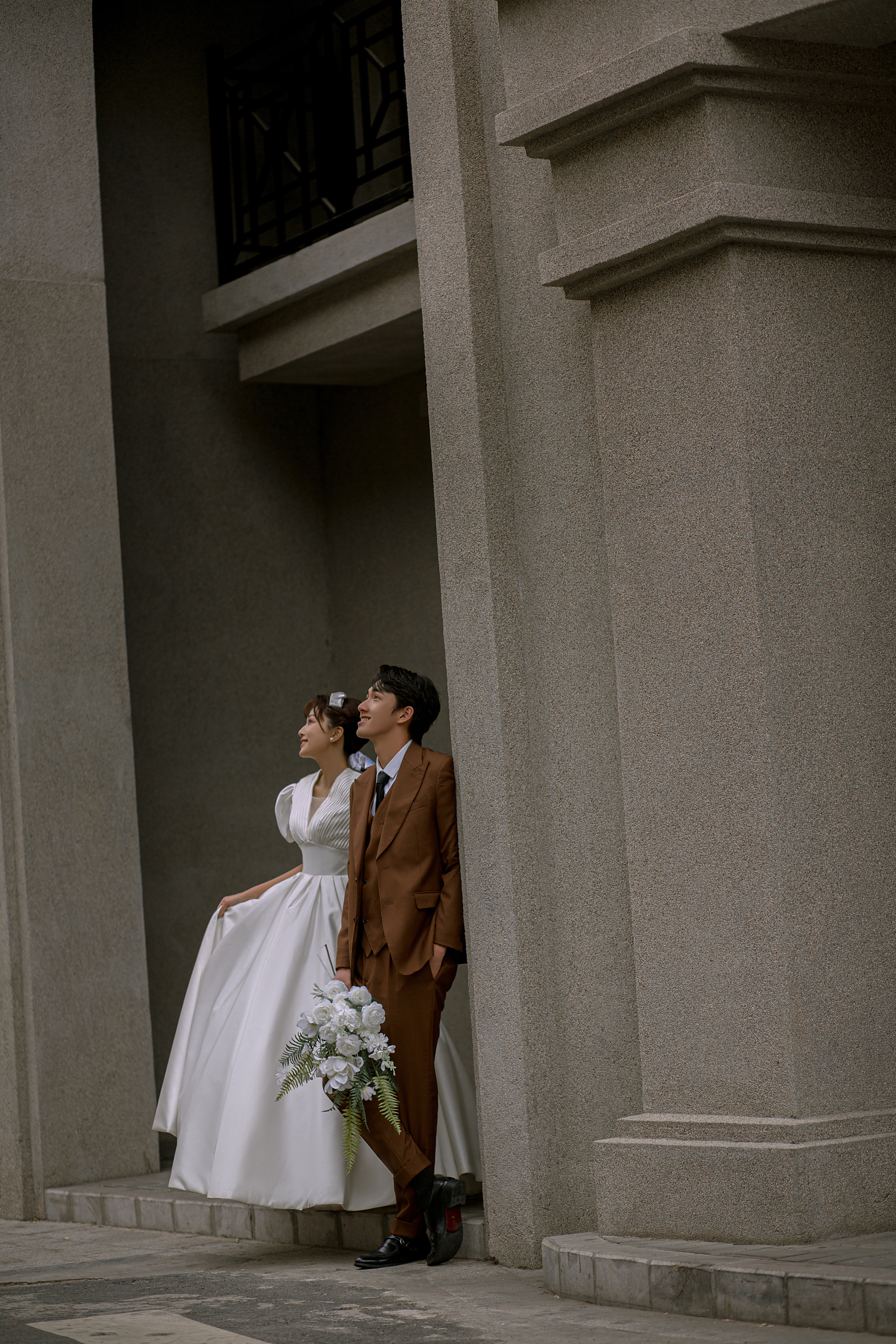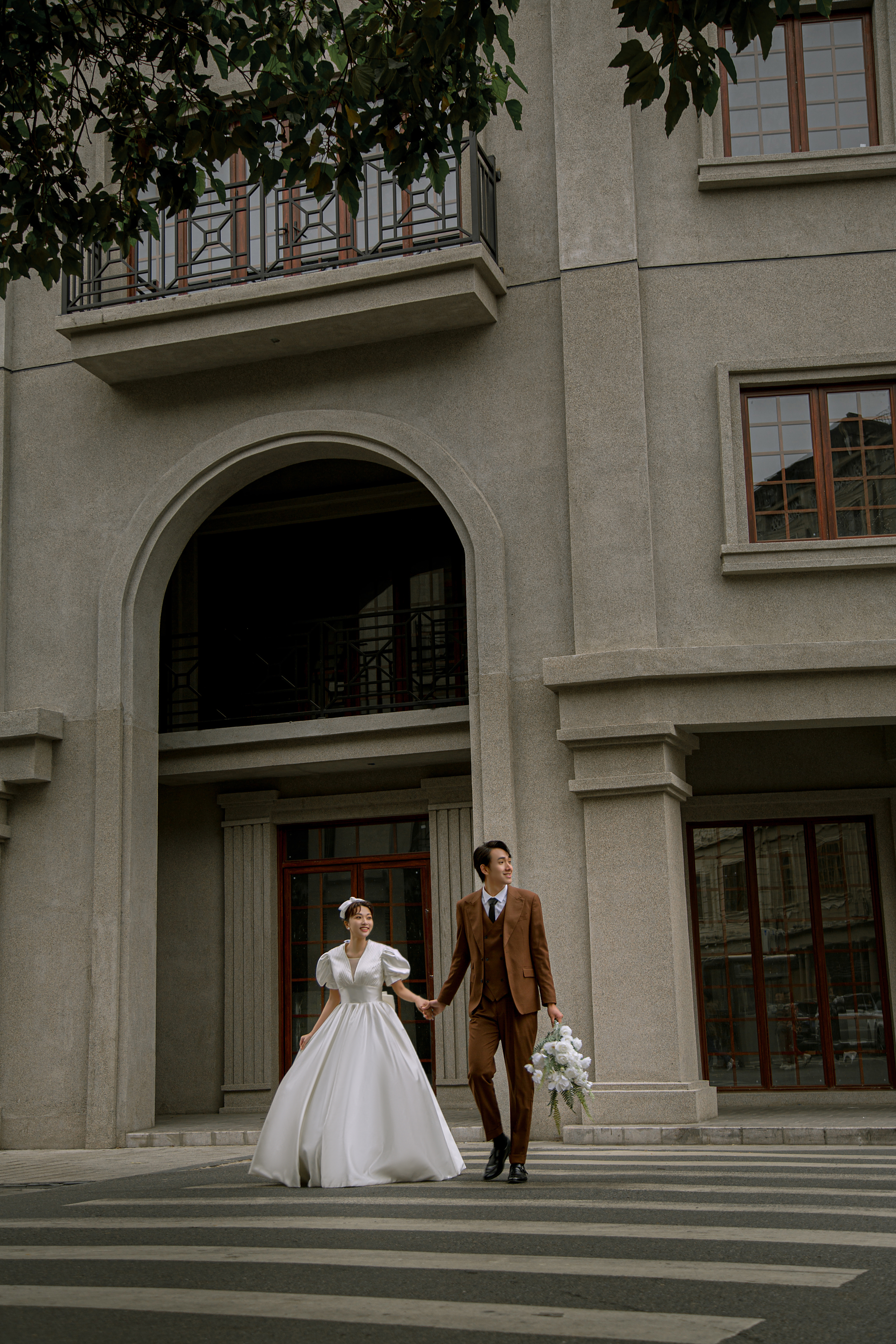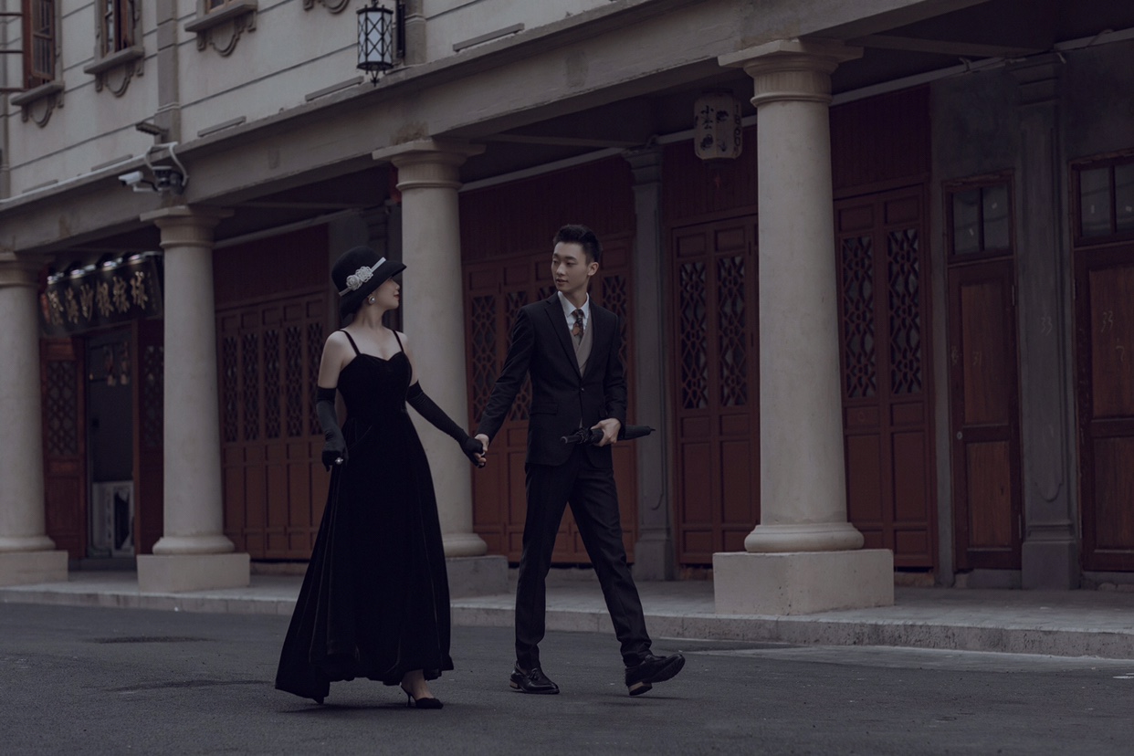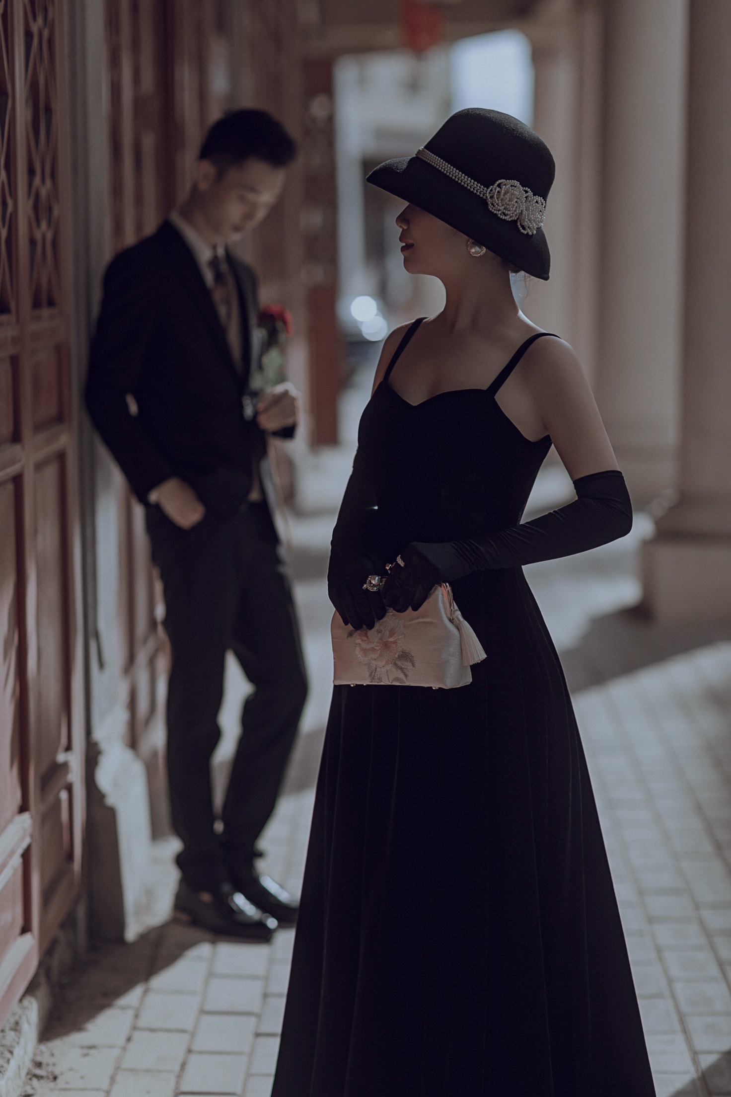 • 老式区复古建筑搭配法式婚纱,礼帽配搭蕾丝手套承托新娘优雅气质。#2023热门婚纱照风格