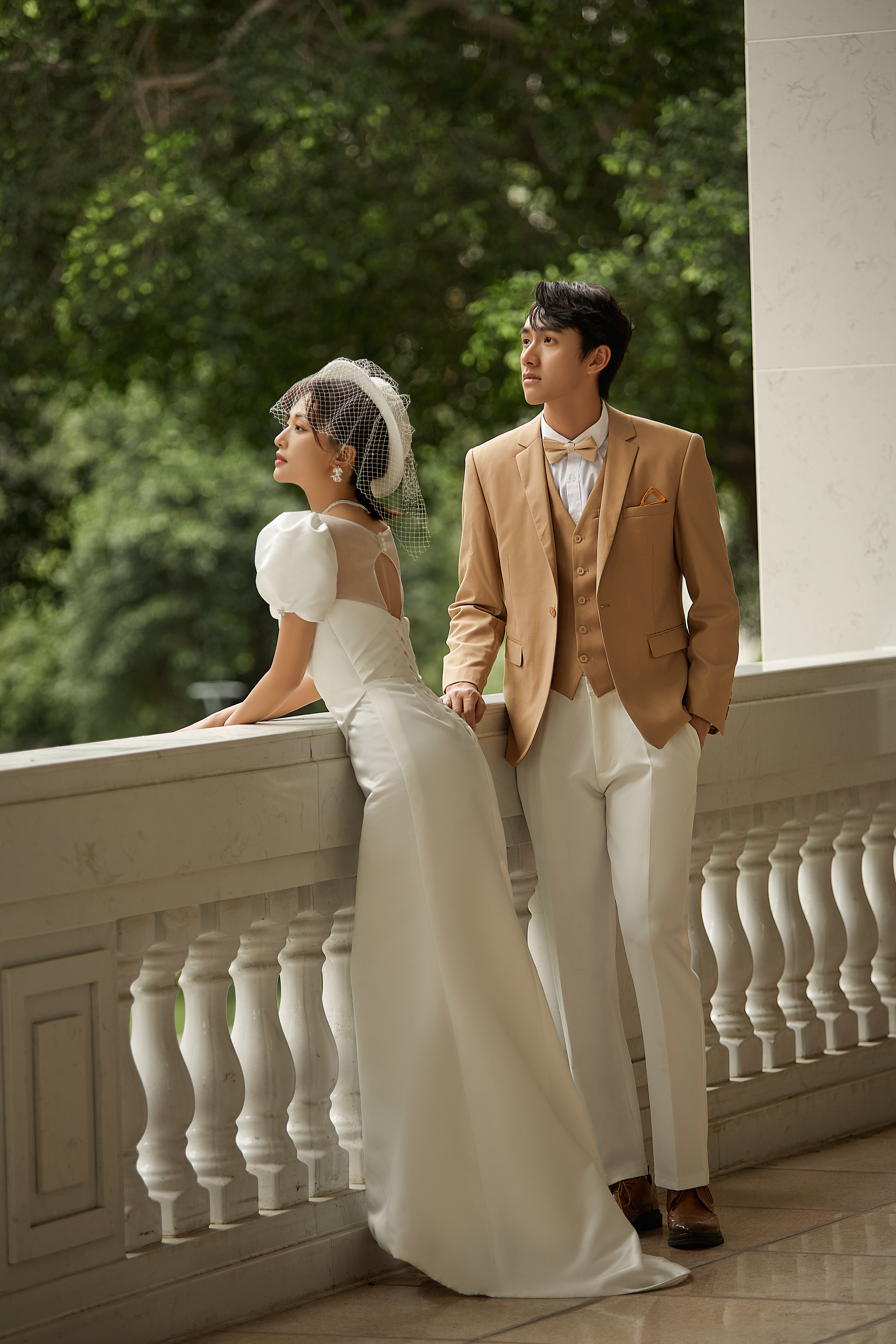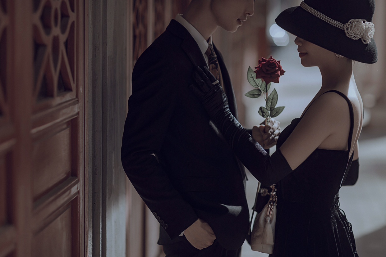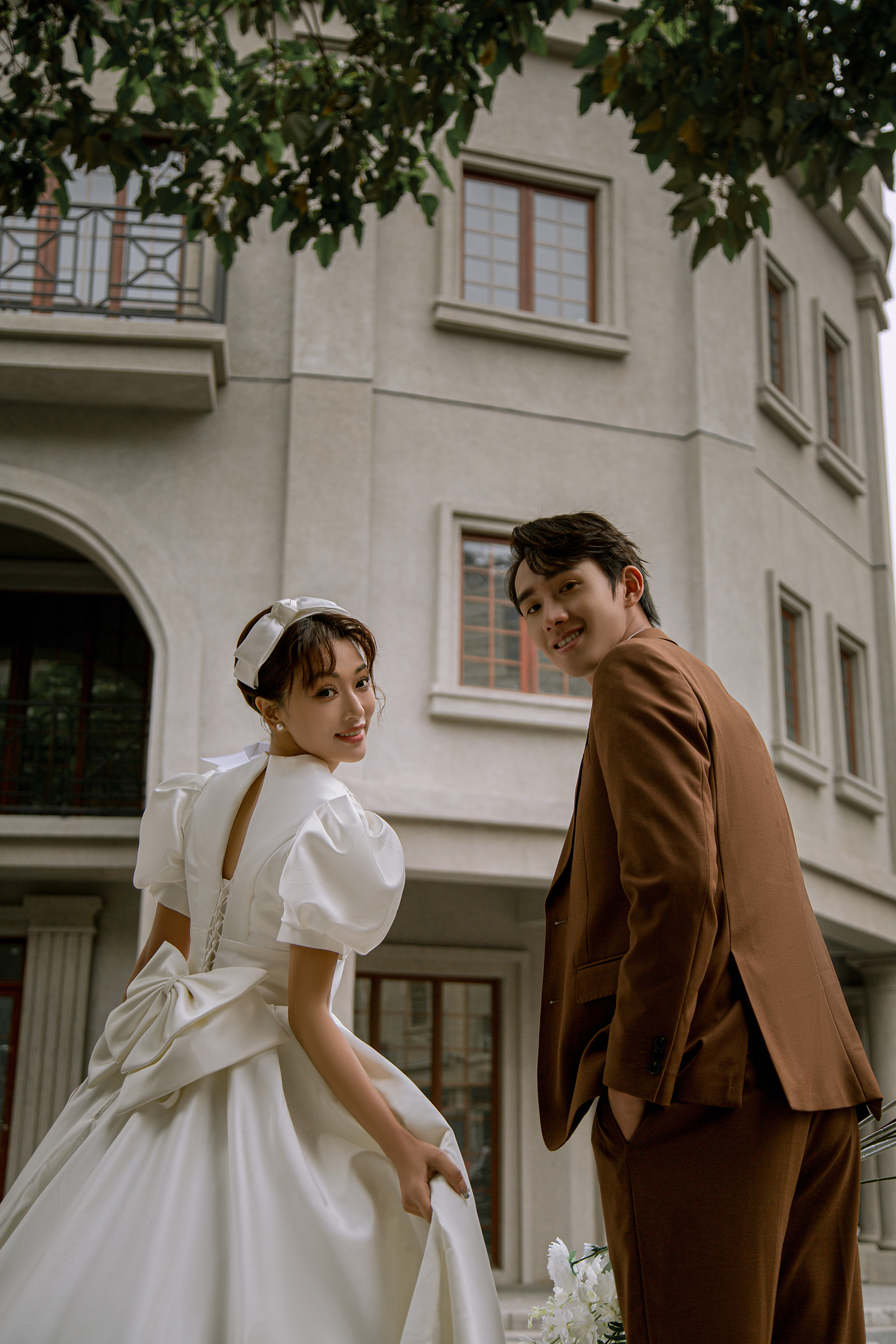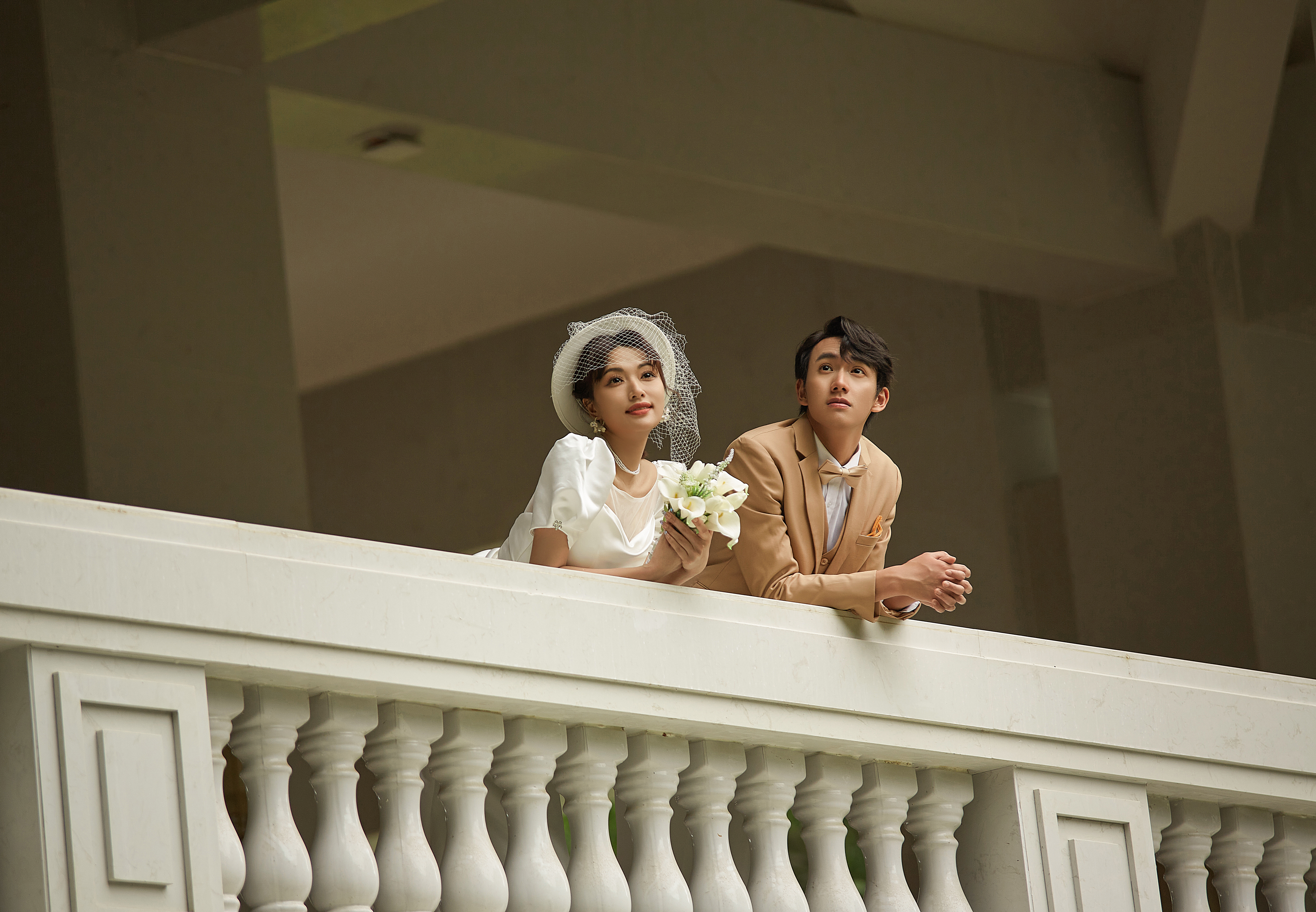 • 老式区复古建筑搭配法式婚纱,礼帽配搭蕾丝手套承托新娘优雅气质。#2023热门婚纱照风格