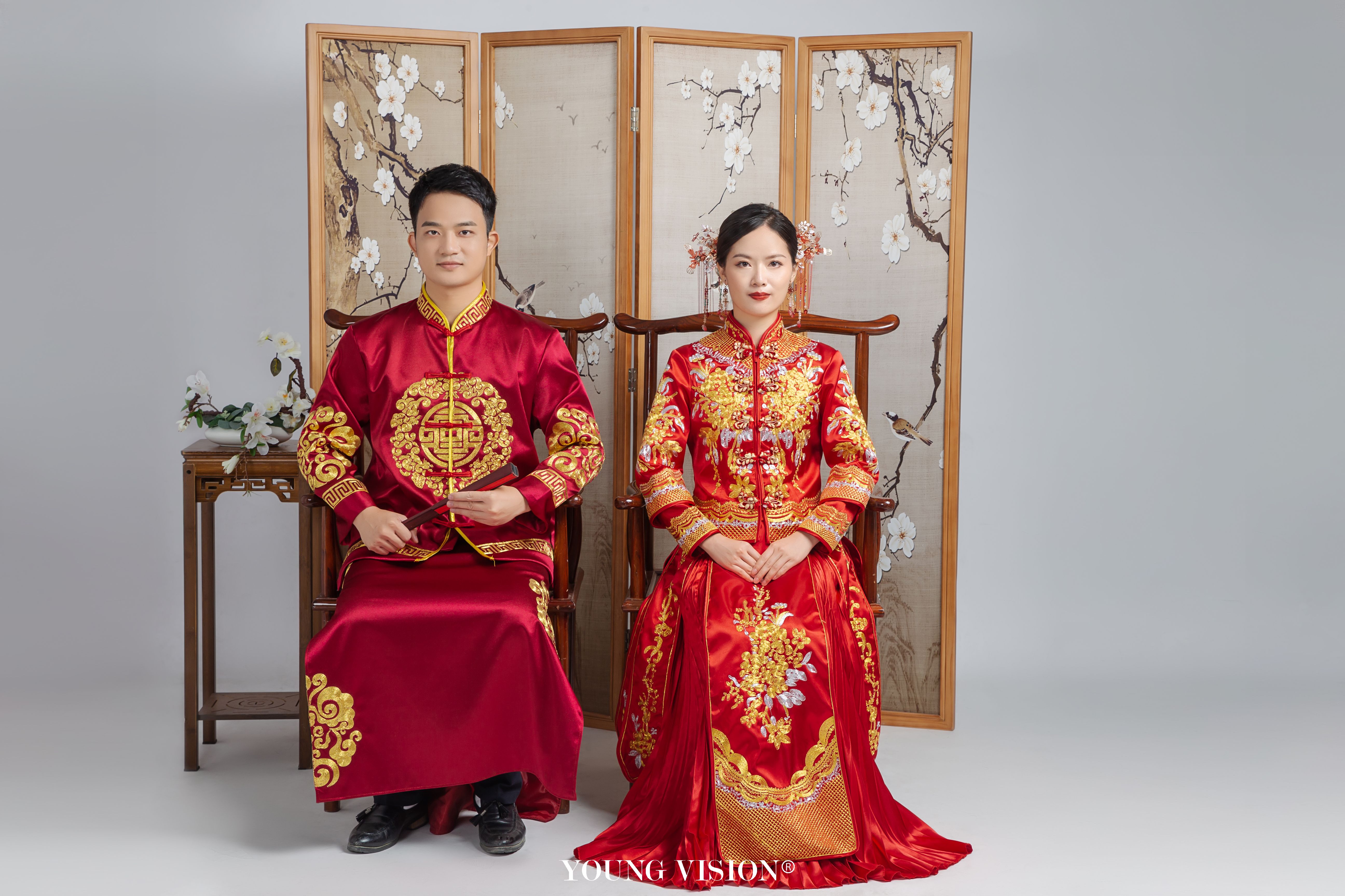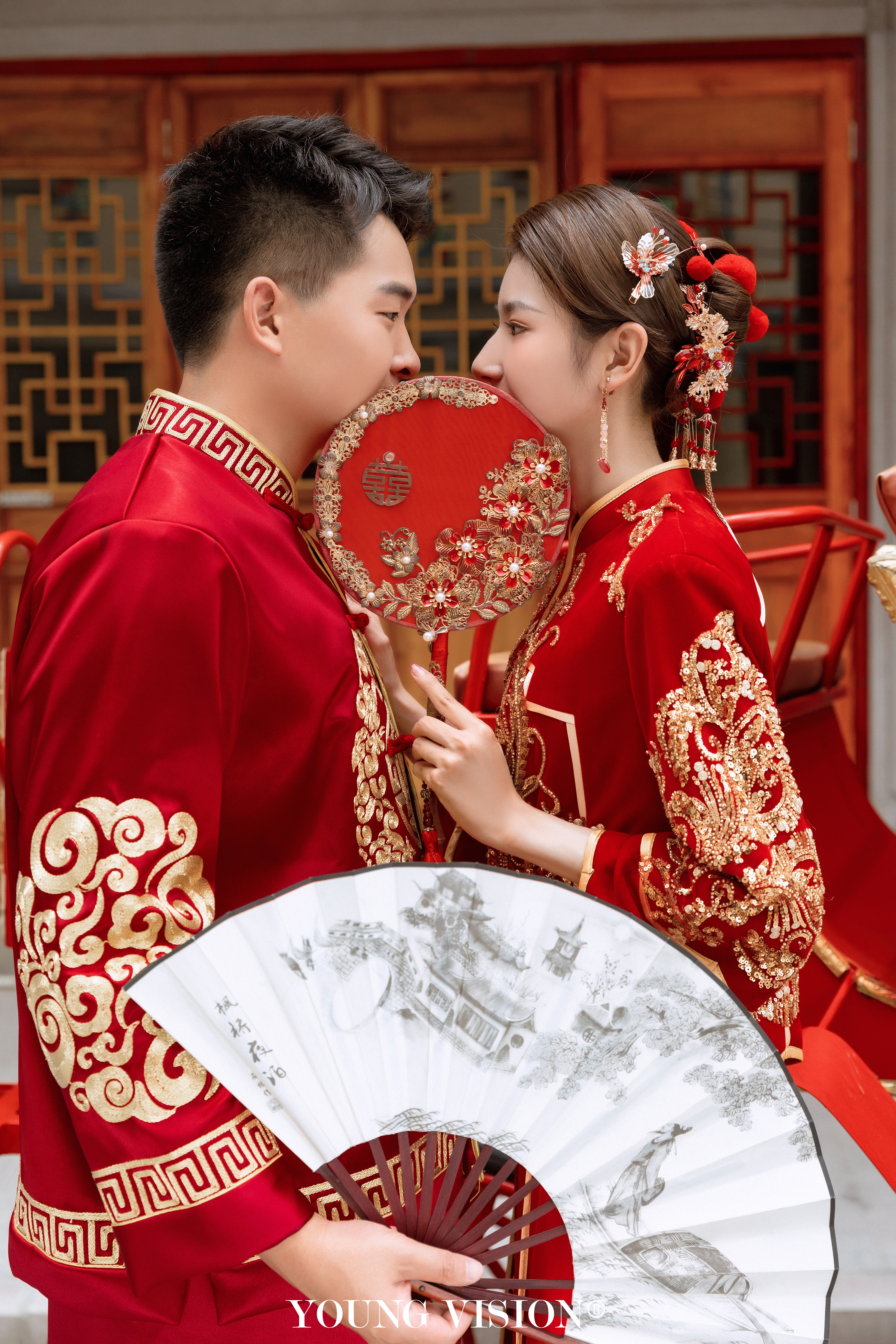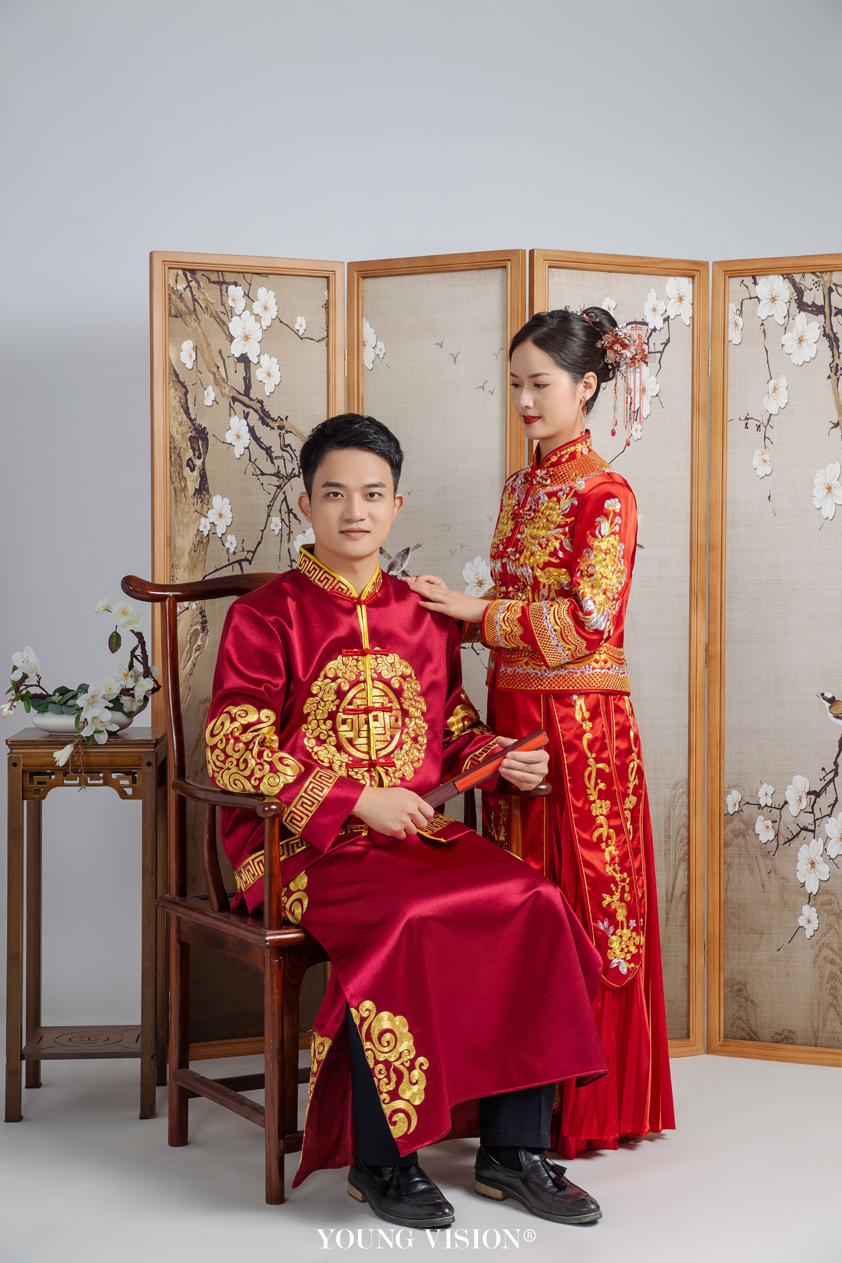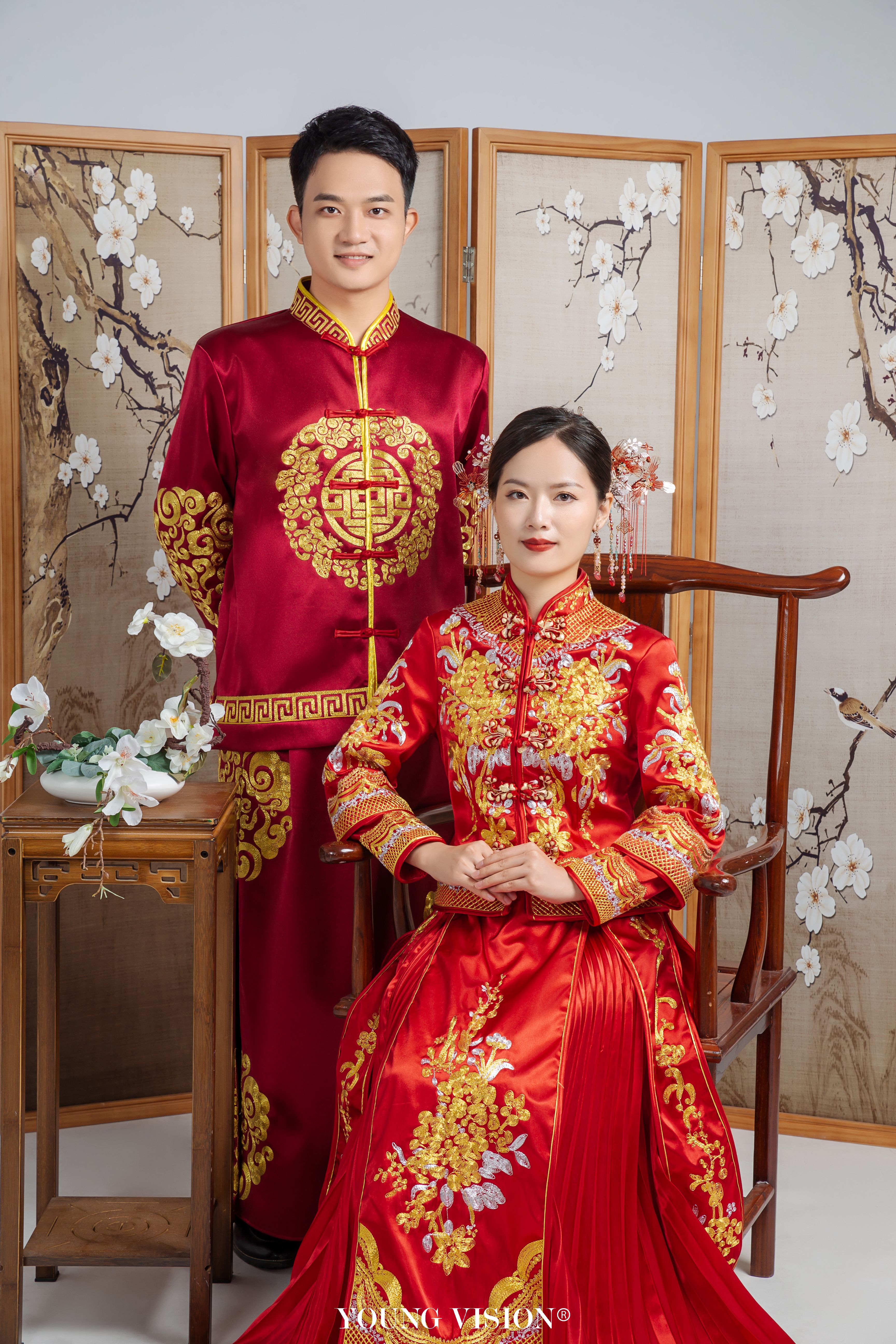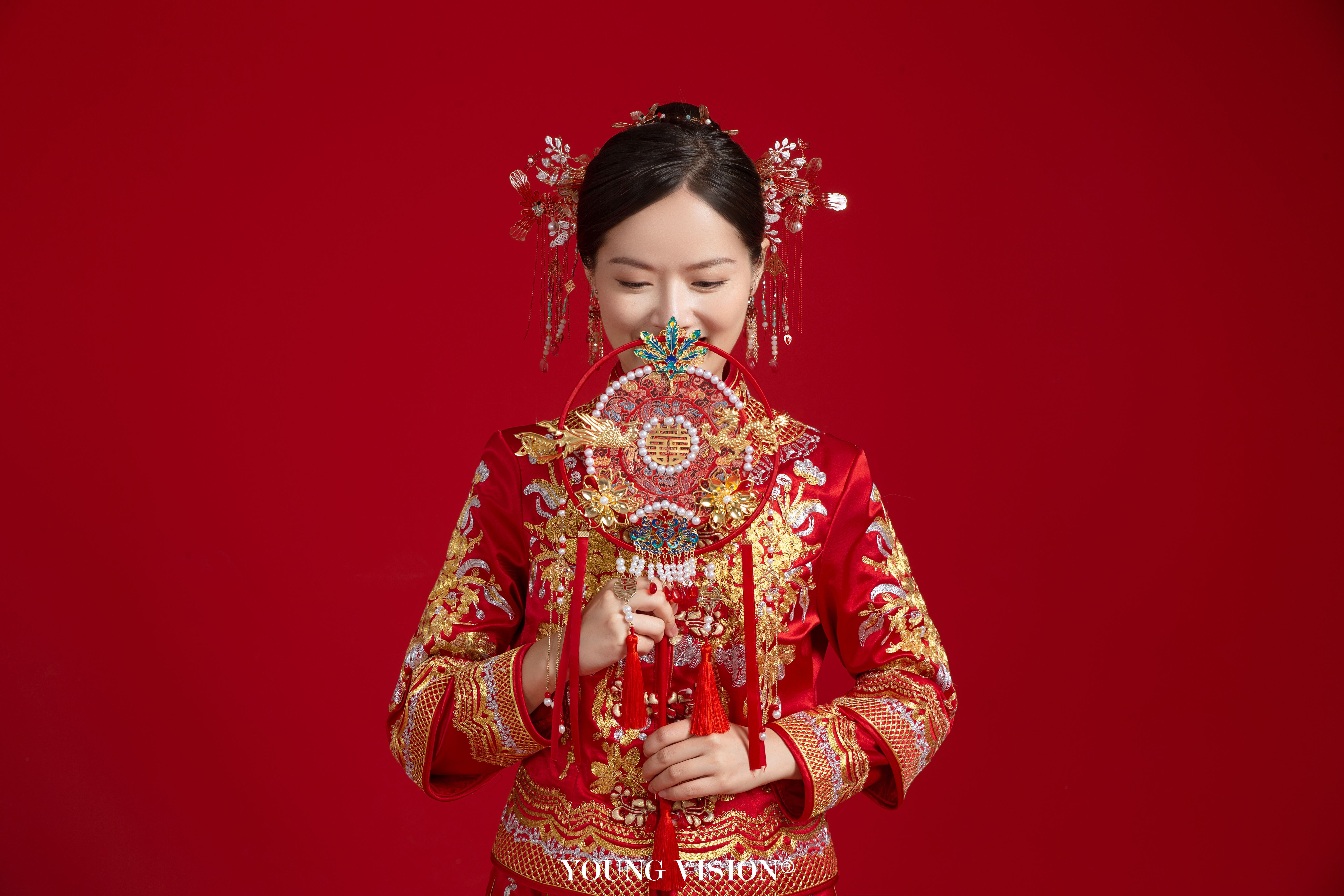 • 看此日桃花灼灼,宜室宜家; 卜他年瓜瓞绵绵,尔昌尔炽。 谨以白头之约,书向鸿笺, 好将红叶之盟,载明鸳谱。 挽起秀发,秀气不失端庄 喜庆的秀禾服色彩俏丽 凤舞龙腾,交相辉映 Style:新中式 Location:汕头 Photographer:@汕头漾视觉婚纱摄影