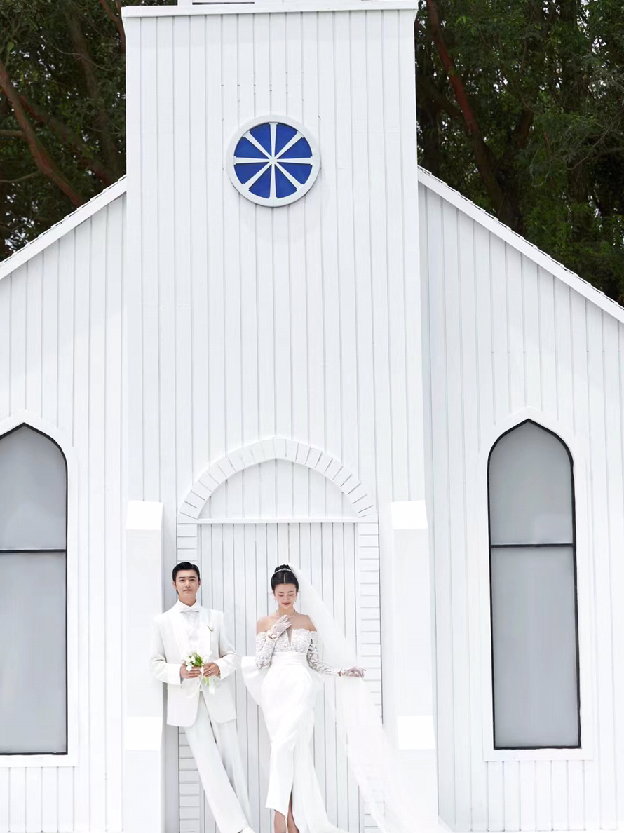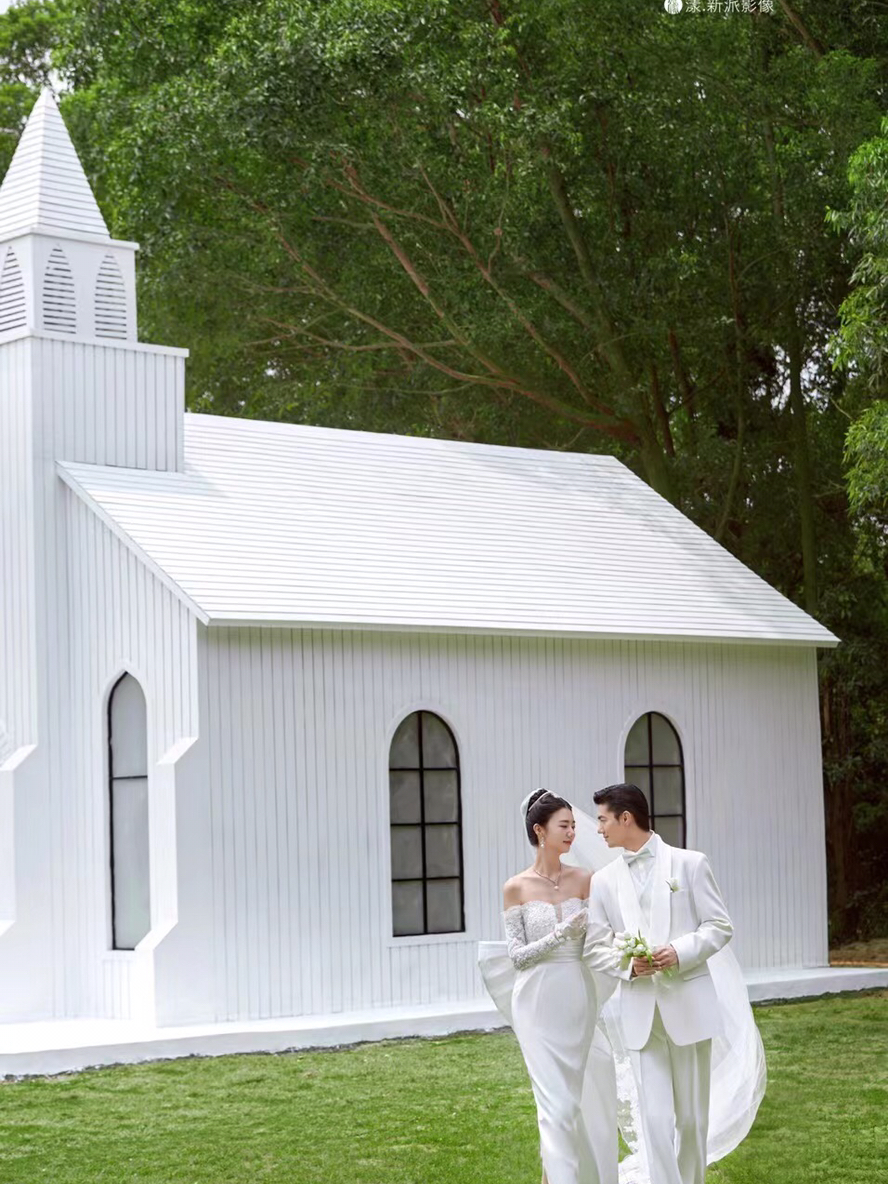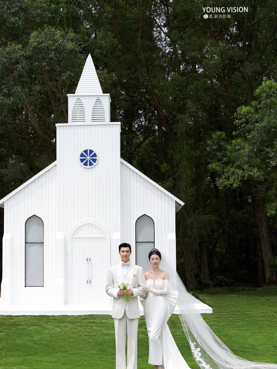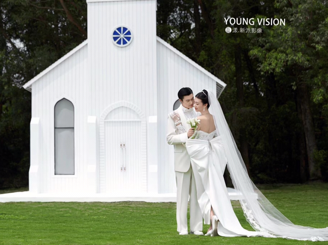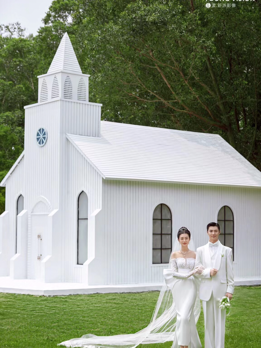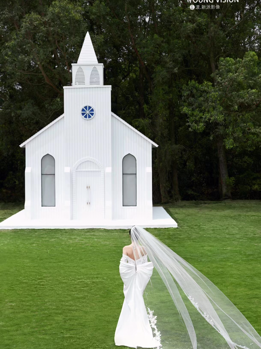 • 仪式感超强的场景,跟婚纱搭配的梦想场景。 礼堂➕草地➕长头纱 幸福的一刻我们见证