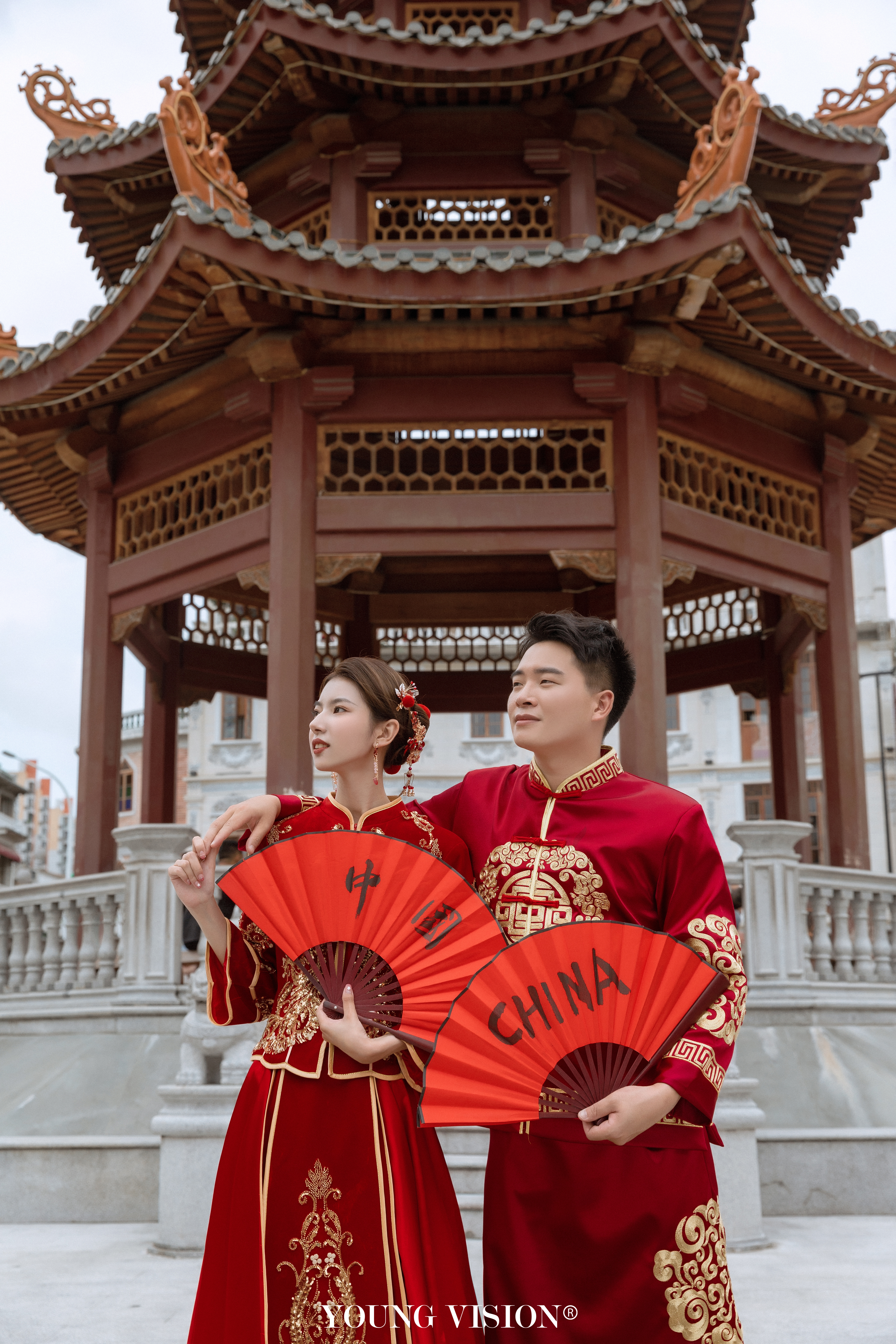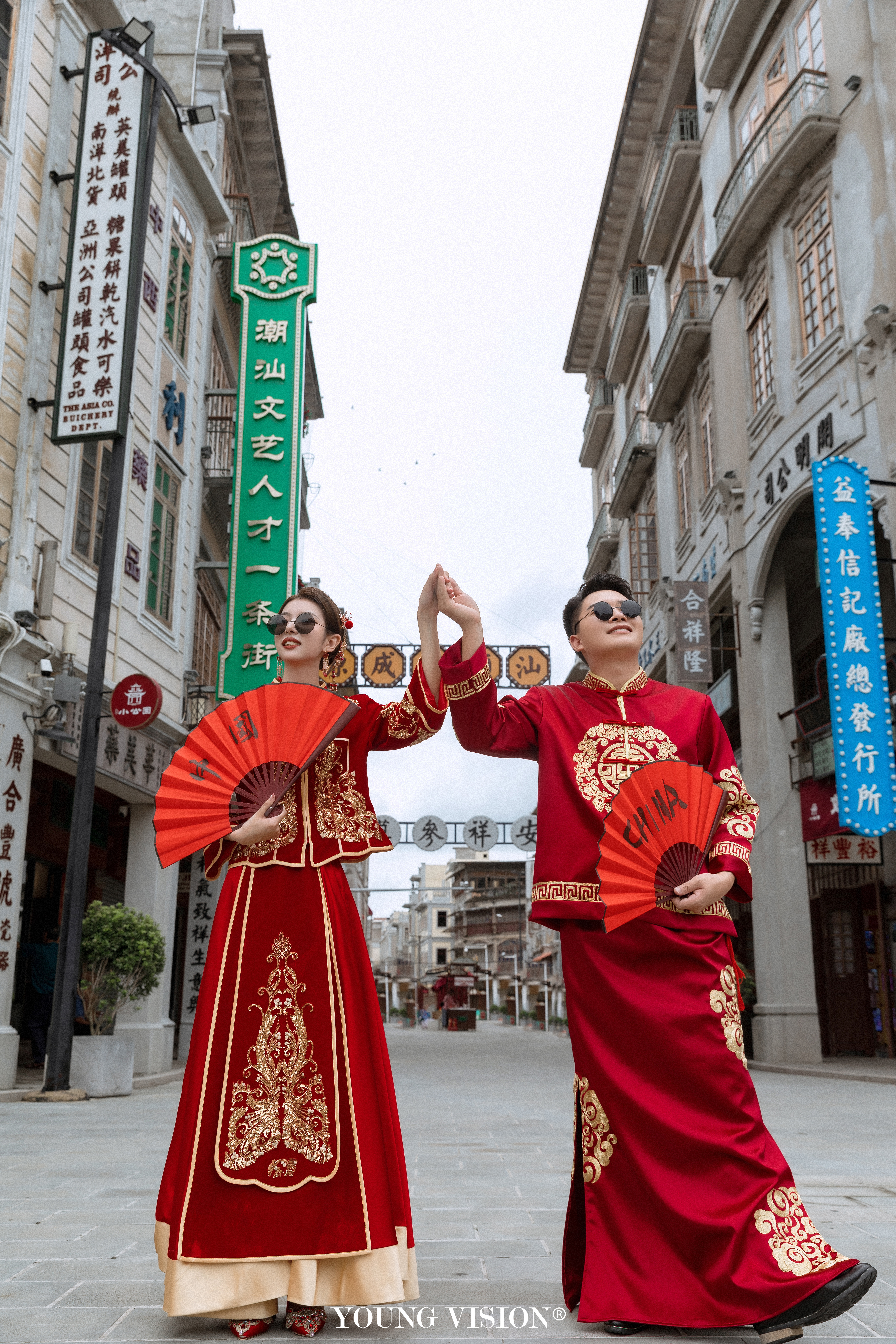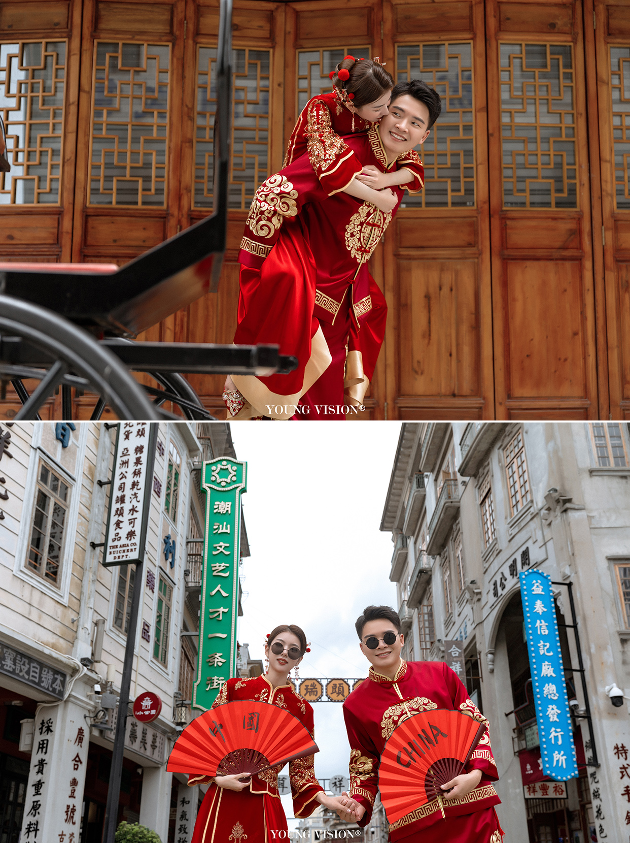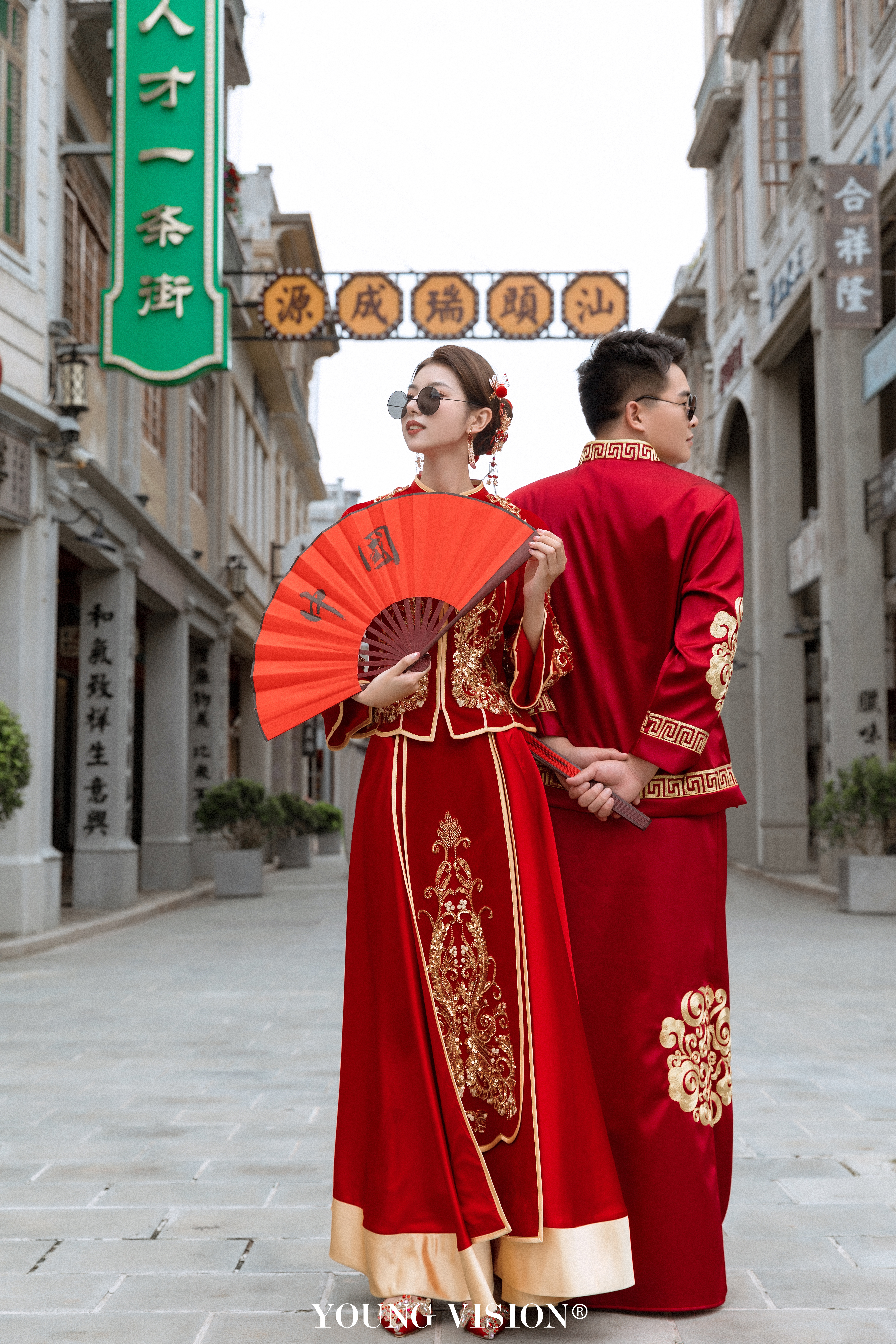 • 经典的新中式婚纱照 是每个新人拍照必选的风格 现代的秀禾婚纱 改变了传统嫁衣的繁琐庄重 不止父母辈喜欢 也符合现代人的审美 选择外景拍摄地 更加生活化 和老式建筑合影 颇具特色的街道 更具年代感 俏皮的互动 让婚照看上去更加甜蜜自然 get同款@汕头漾视觉婚纱摄影