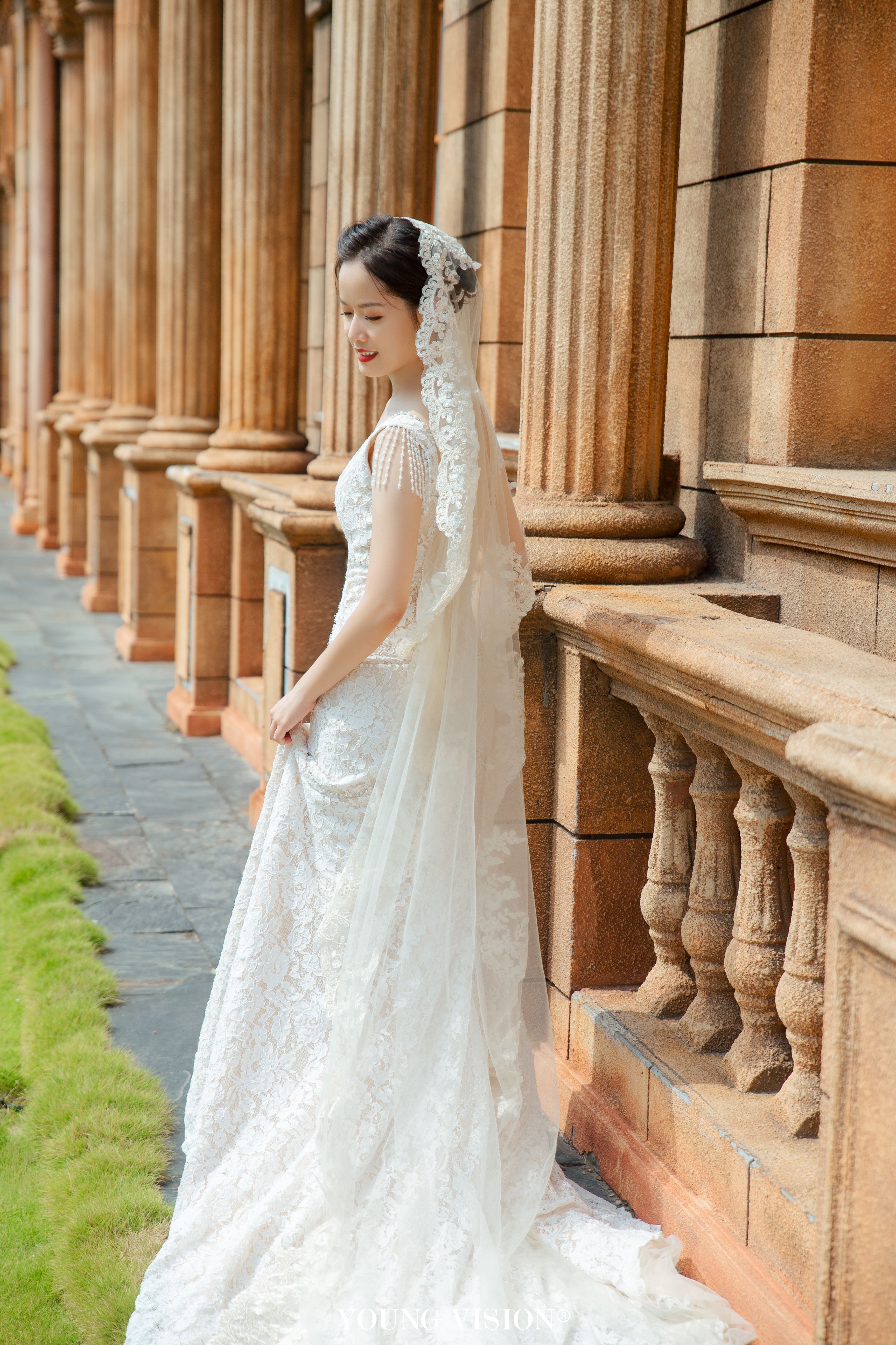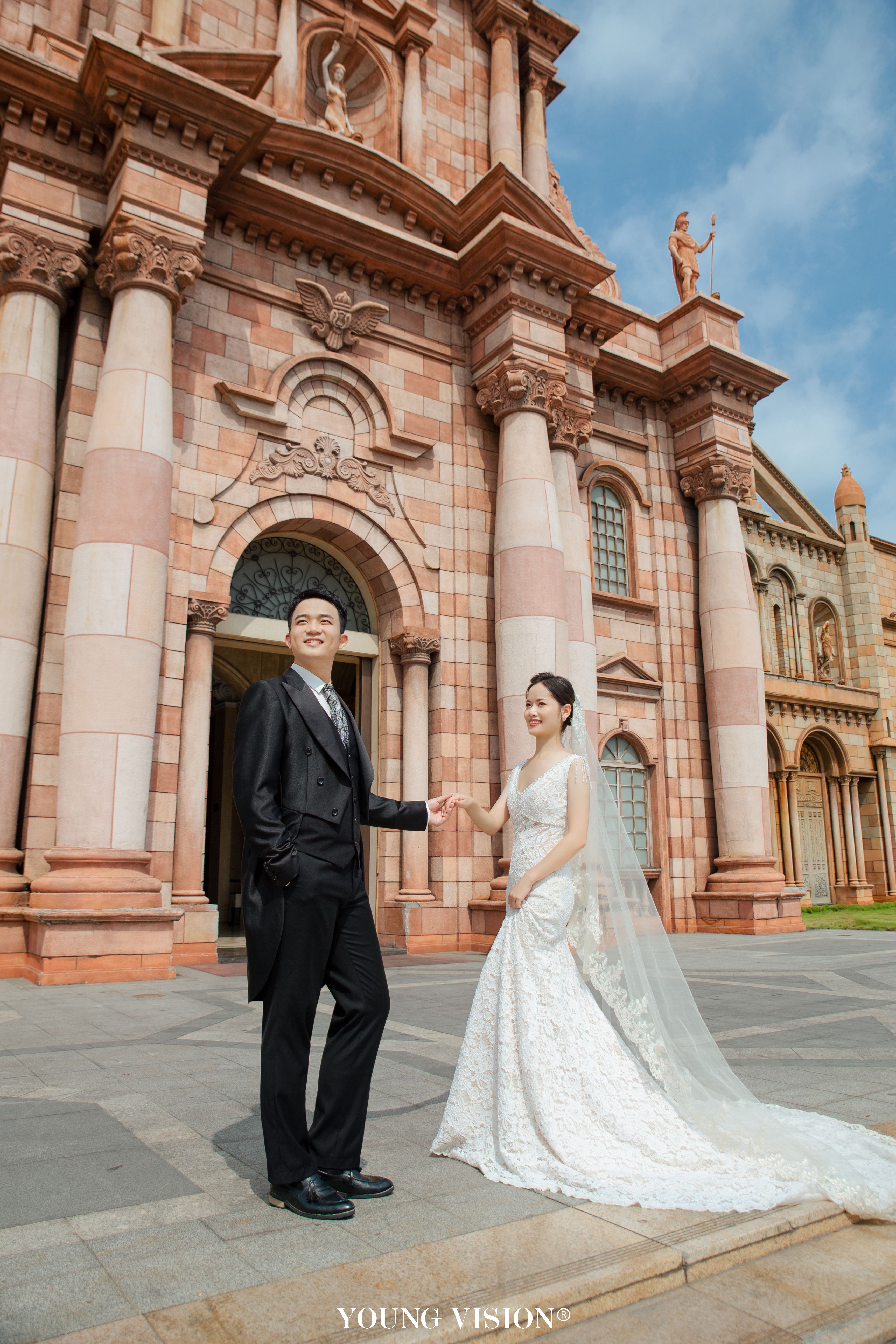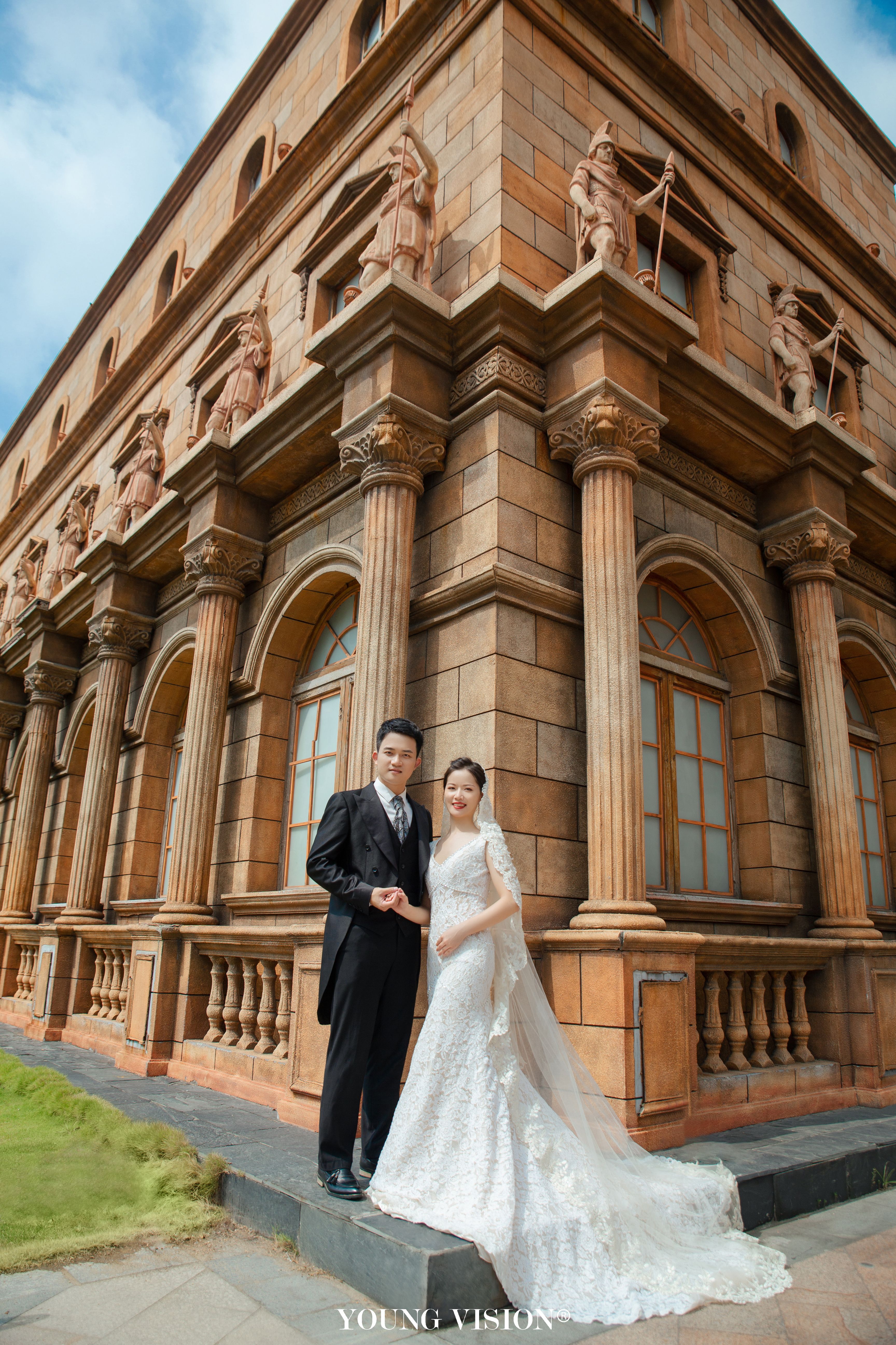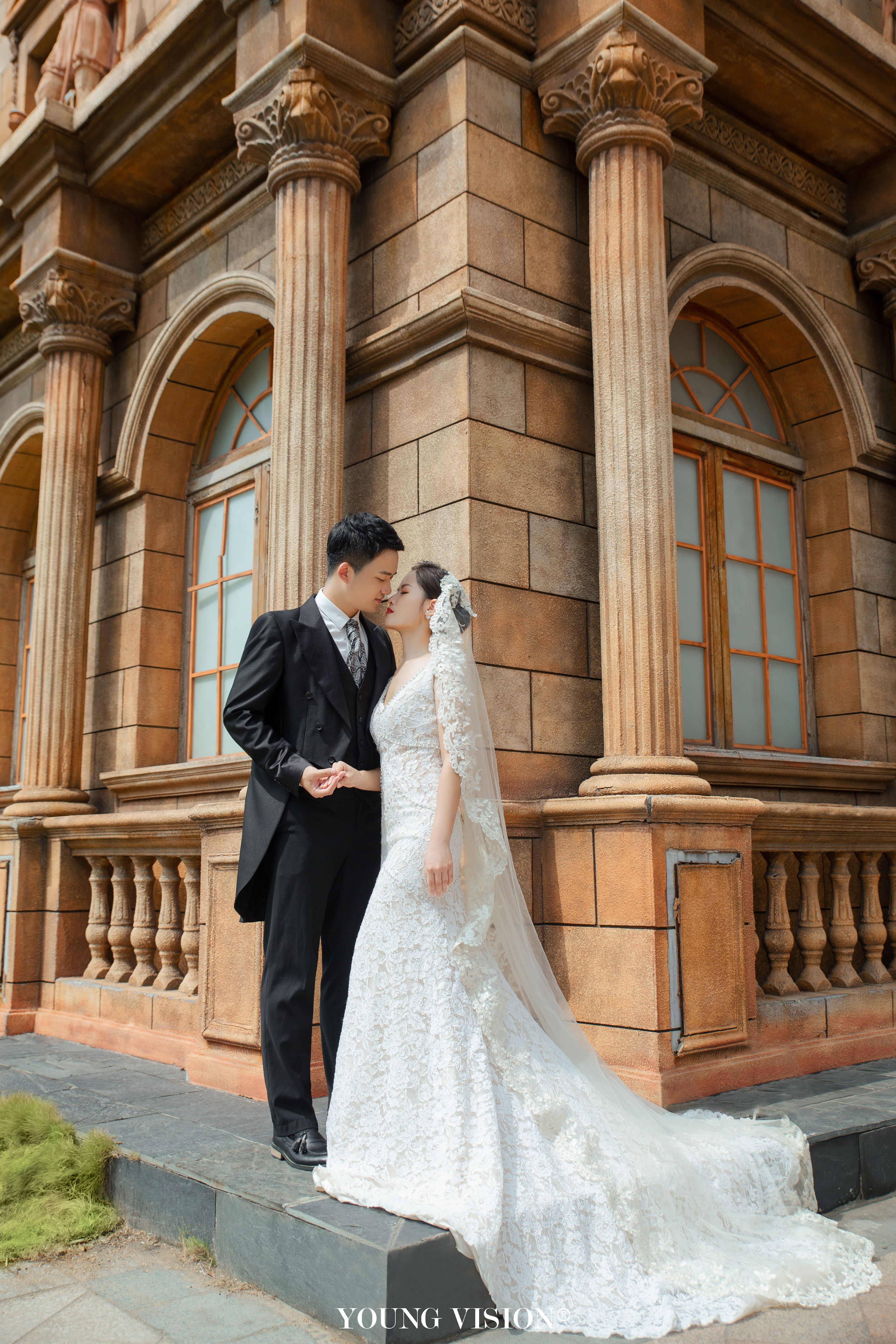 • 典型的欧式建筑,自带法式风情 高贵优雅的长拖尾白纱 化身欧洲宫廷淑女 静谧辉煌的古堡殿堂 展现了公主与王子的完美童话故事 在欧式场景中演绎永恒的爱情 碰撞出浪漫绮丽的画面