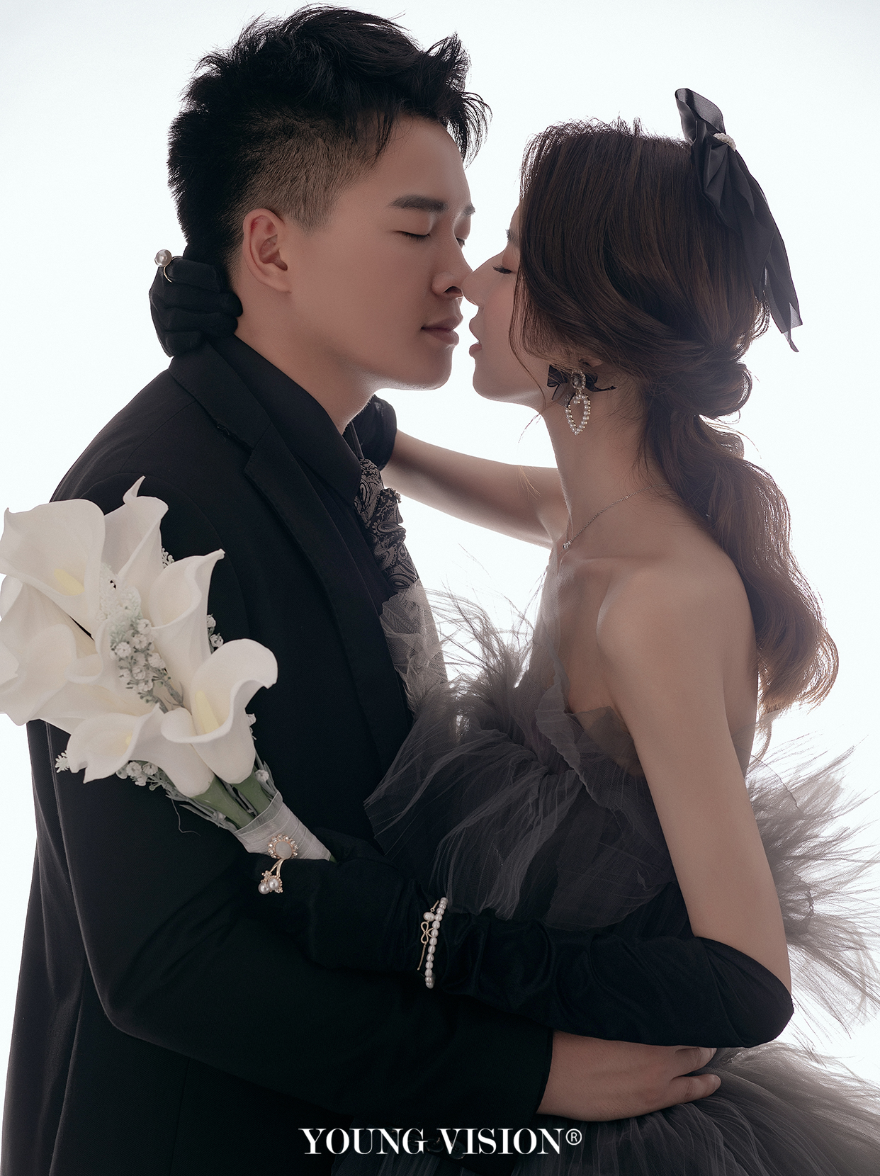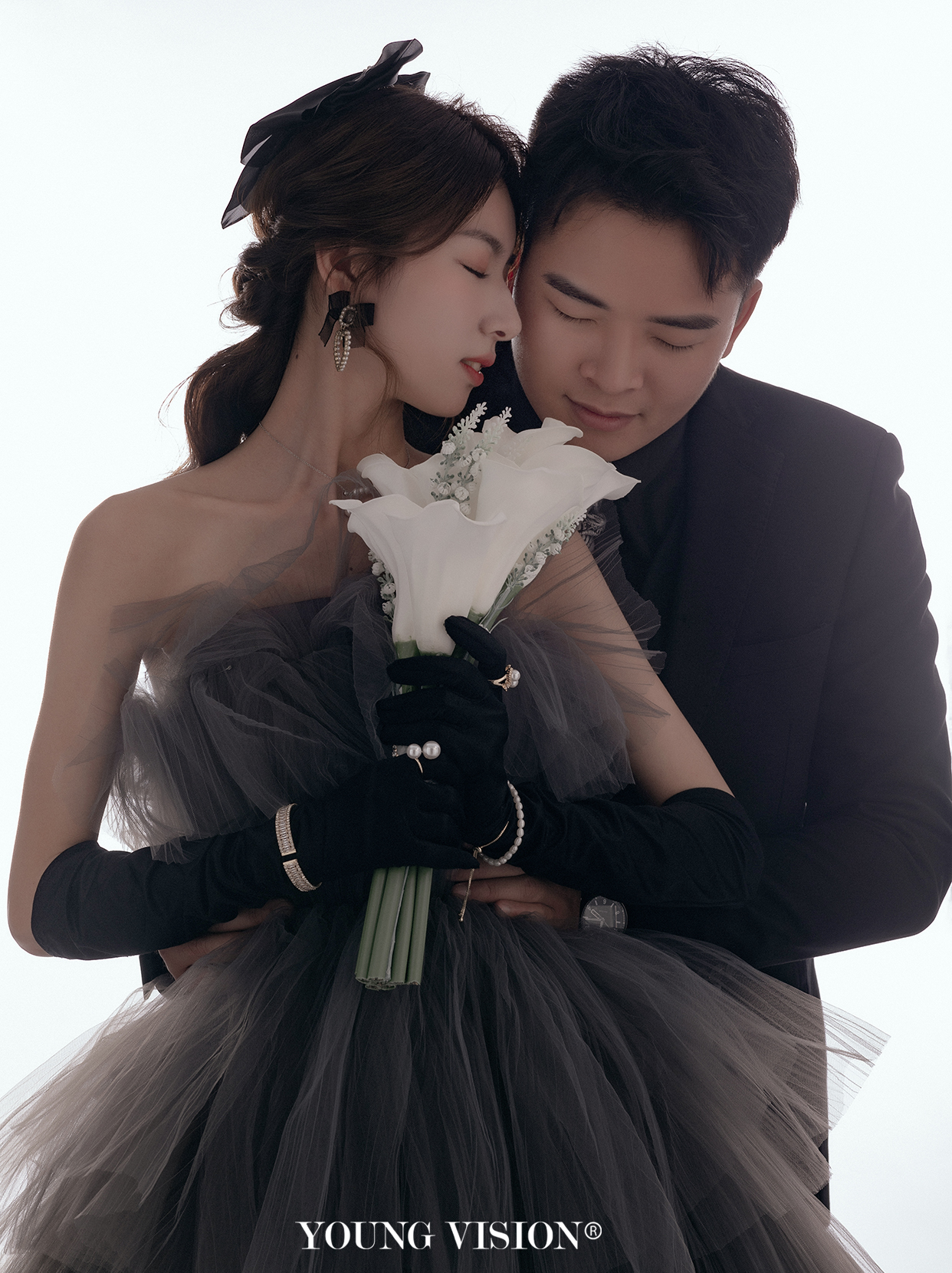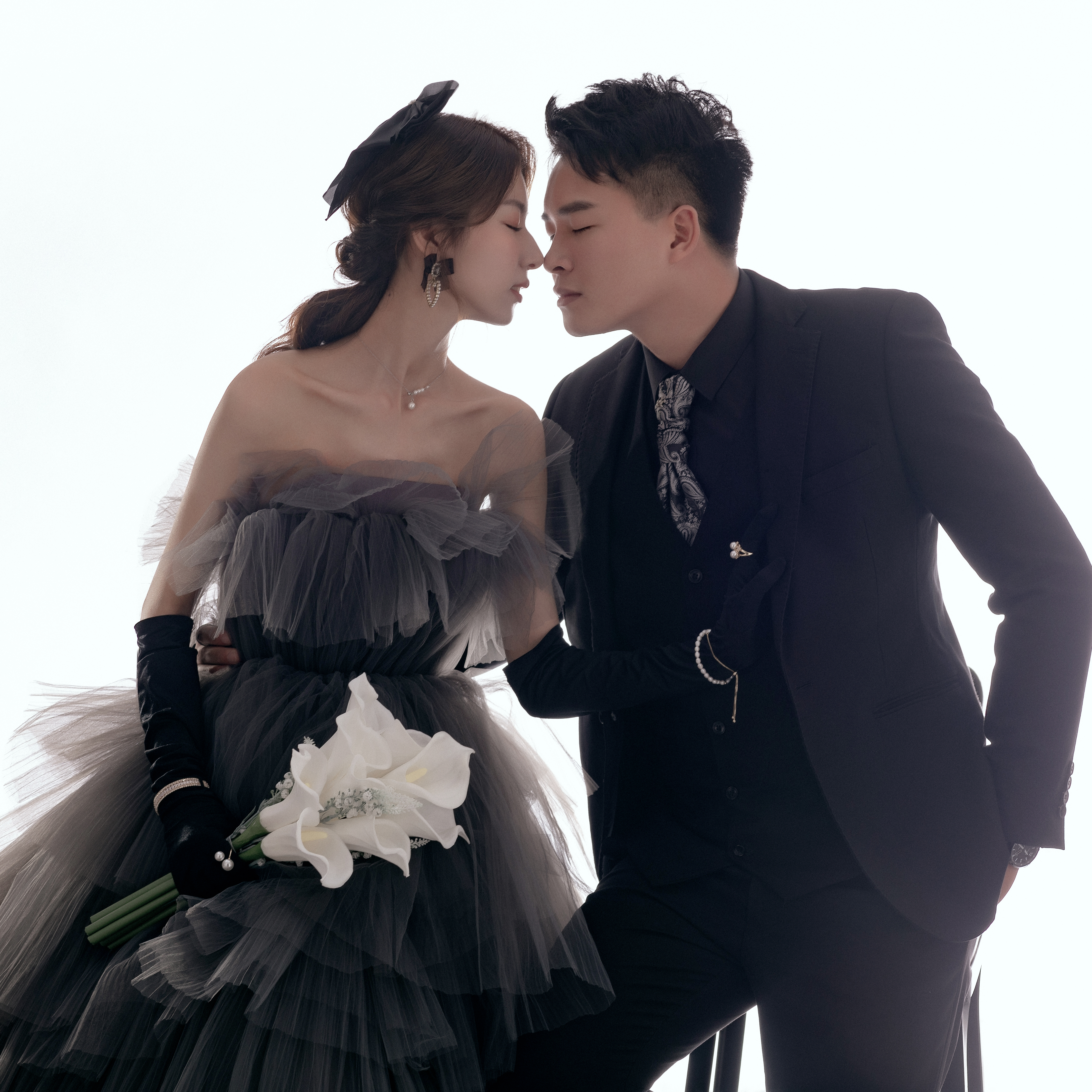 • 黑色一直是象征着高级神秘 在西班牙语里更代表了忠贞 寓意着至s不渝的爱情 黑色飘逸婚纱 搭配简洁背景格外出彩 用极简的画面渲染丰富情感 烘托光影格调 展现极.具高级感设计感的画面 仿佛暗夜中 响起的一首永恒赞歌 是白色马蹄莲的颂曲 携卷着所有浪漫气息 甜蜜无尽 @汕头漾视觉婚纱摄影