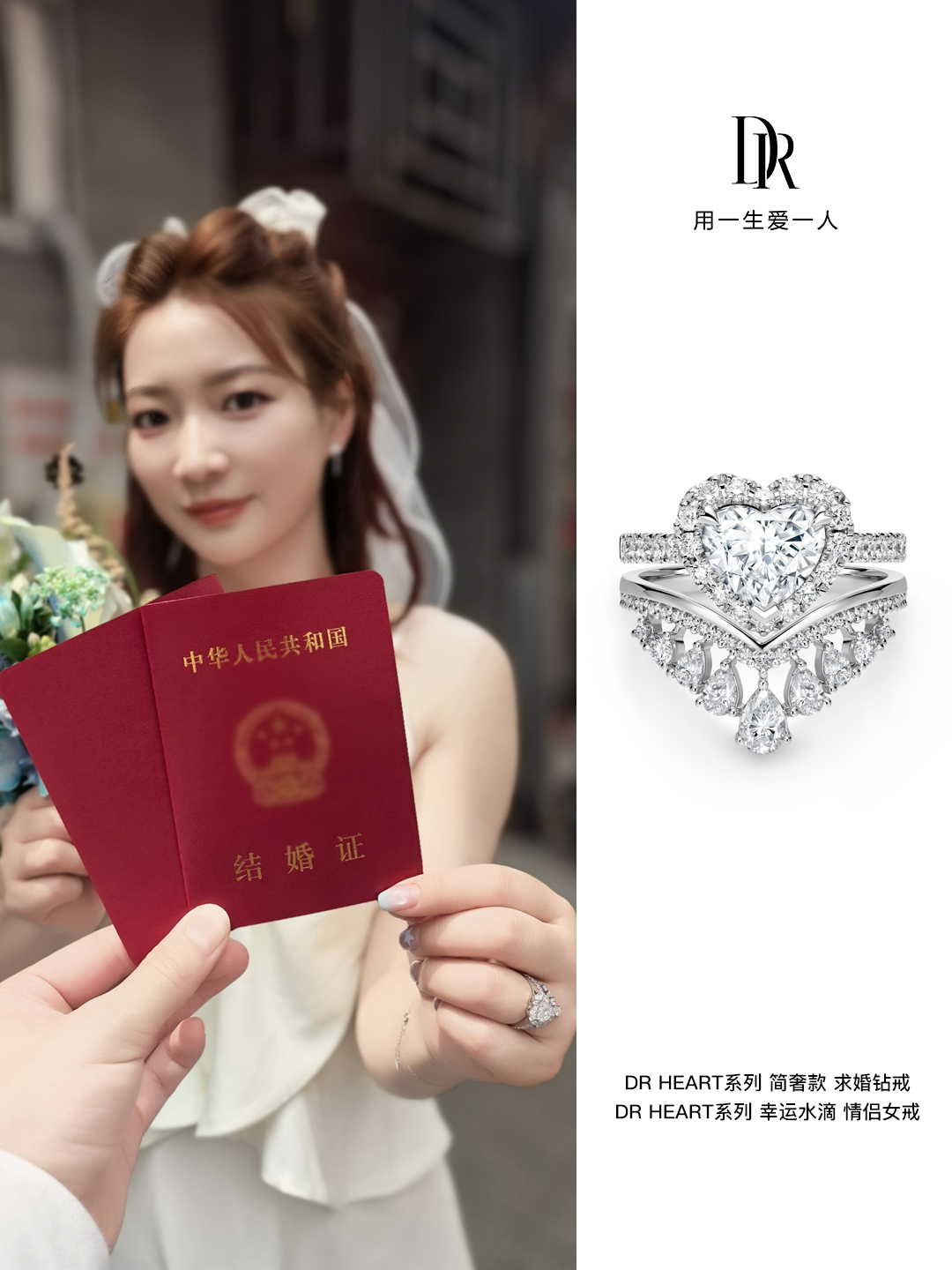 • DR HEART心形钻系列 39位明星夫妇的浪漫之选 见证160000对恋人的求婚时刻 寓意「我的一颗真心,只给唯一的你」 #DR钻戒 #结婚 #情侣