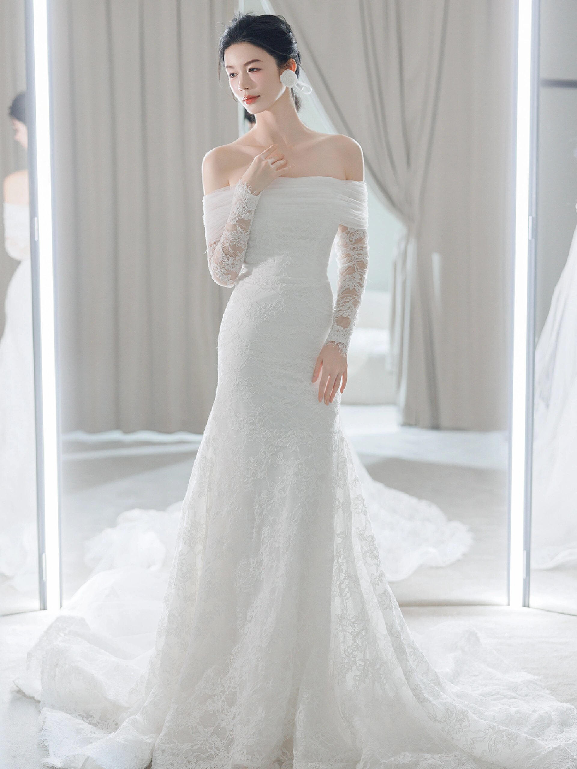 • #心动一万次的鱼尾 从梦境中走出的少女 一出场氛围感直接满 轻盈的法式蕾丝更加亲肤舒适