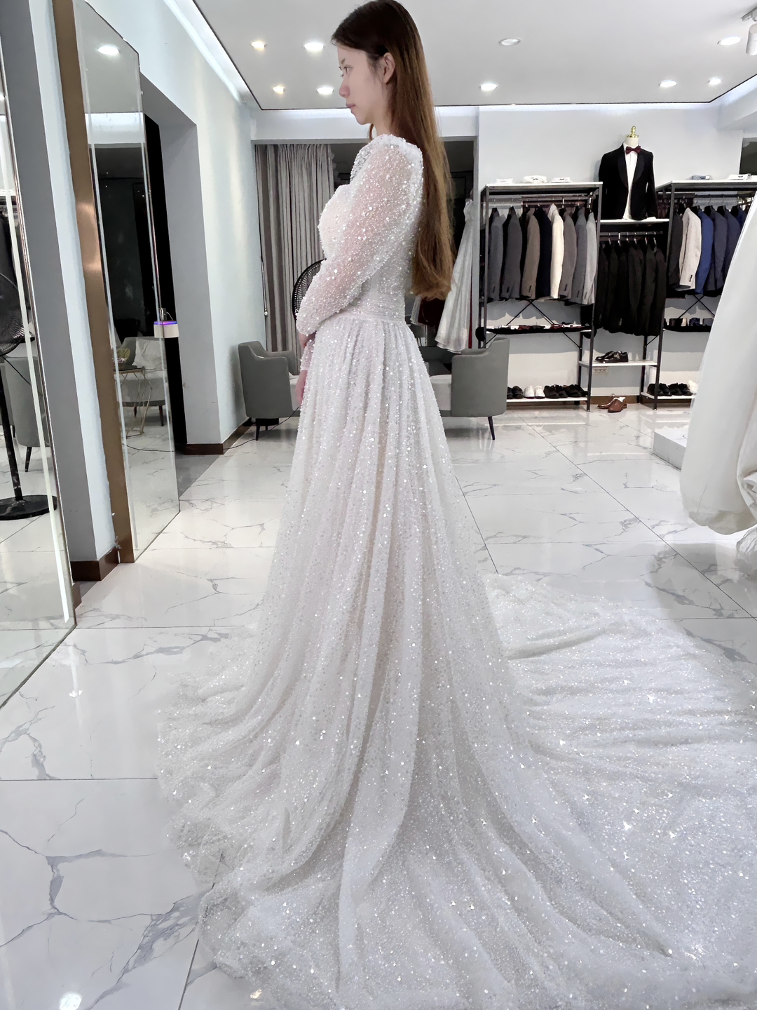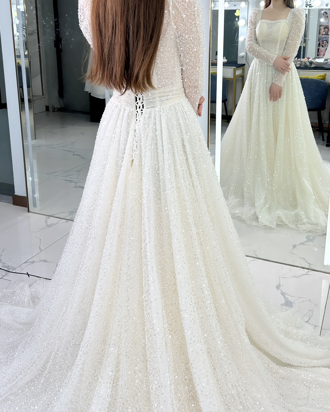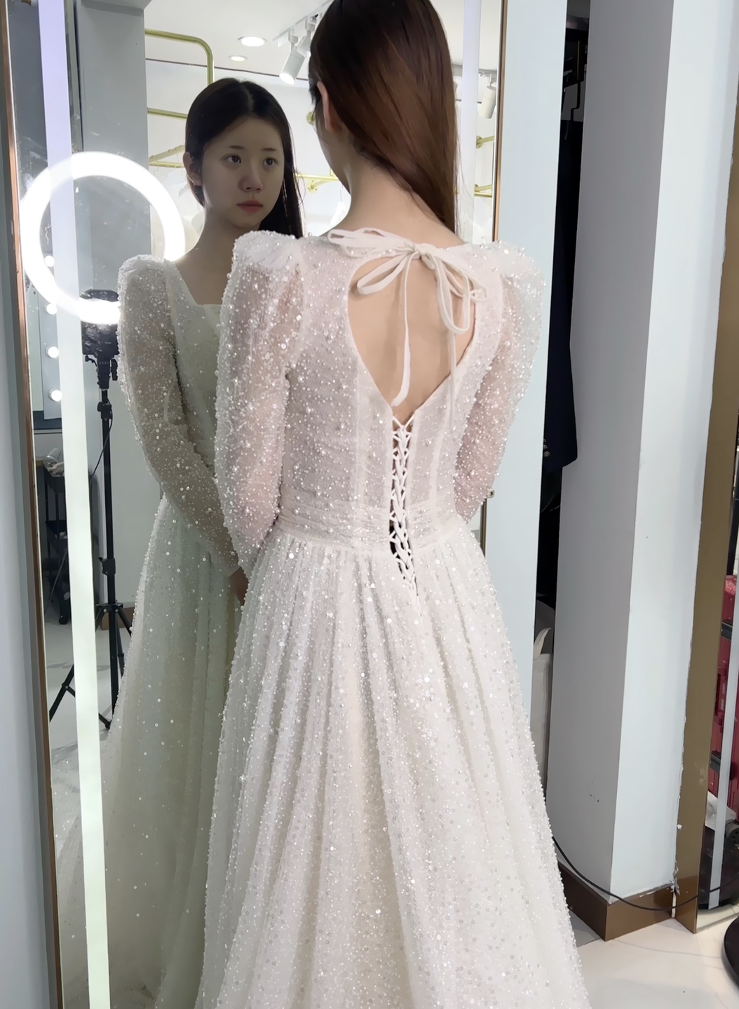 • 一袭碎闪blingbling亮片在不同光线下折射出迷人的光彩,既有少女的清纯感又不失一丝成熟姿色💜#2025婚礼流行趋势