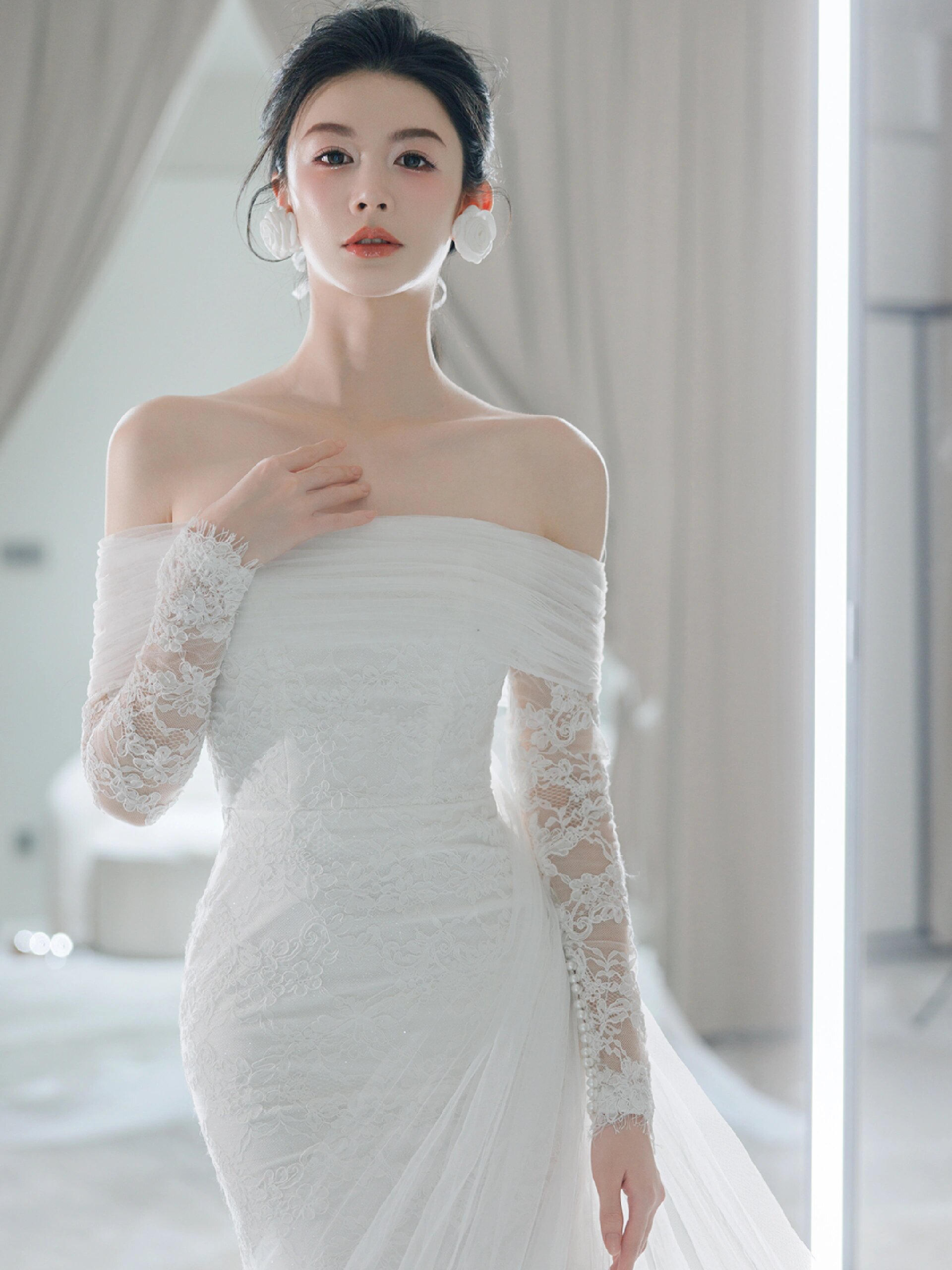 • 新娘法式赫本风轻纱