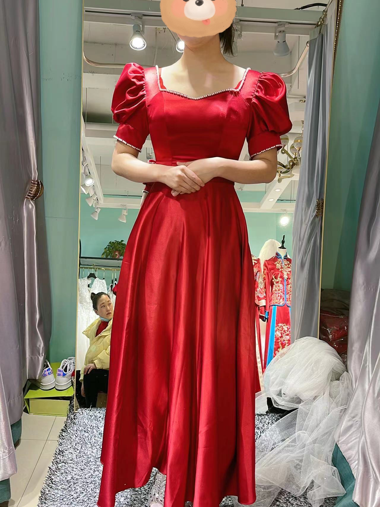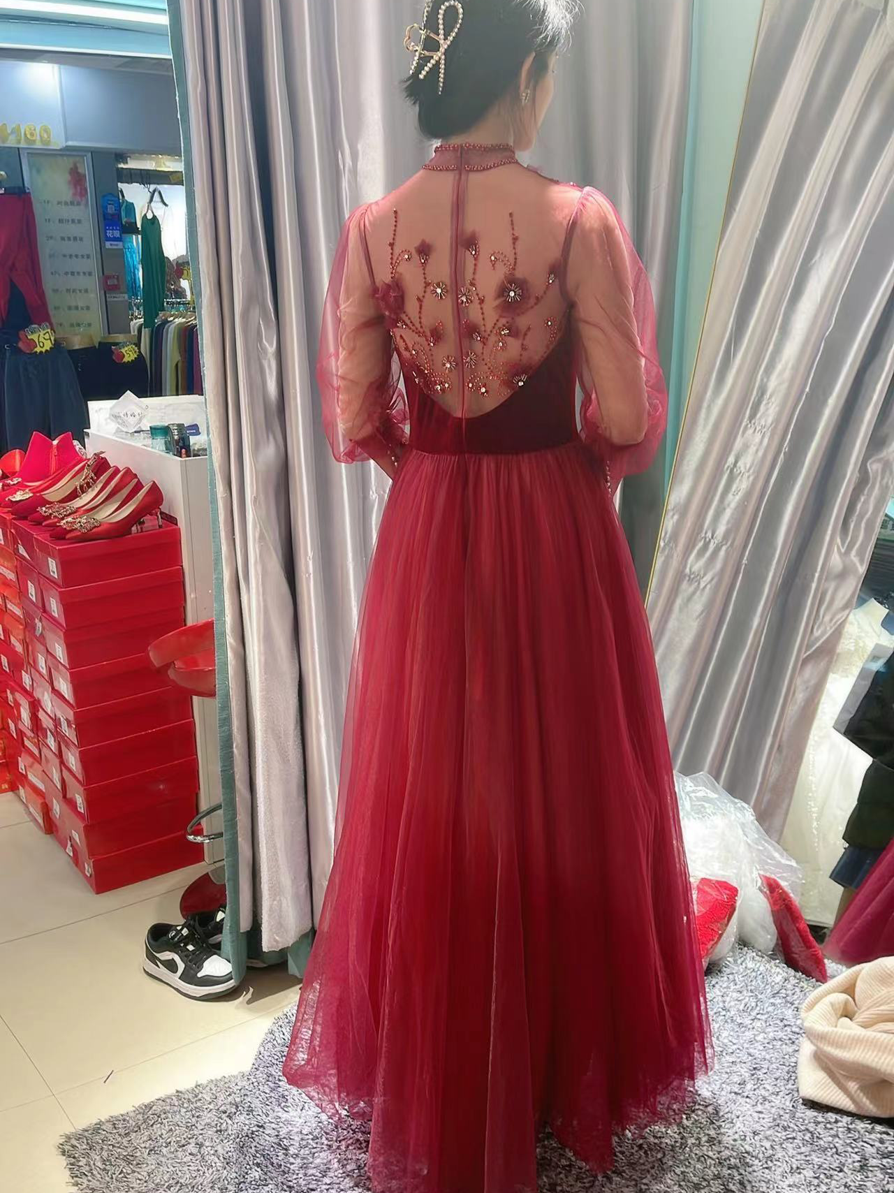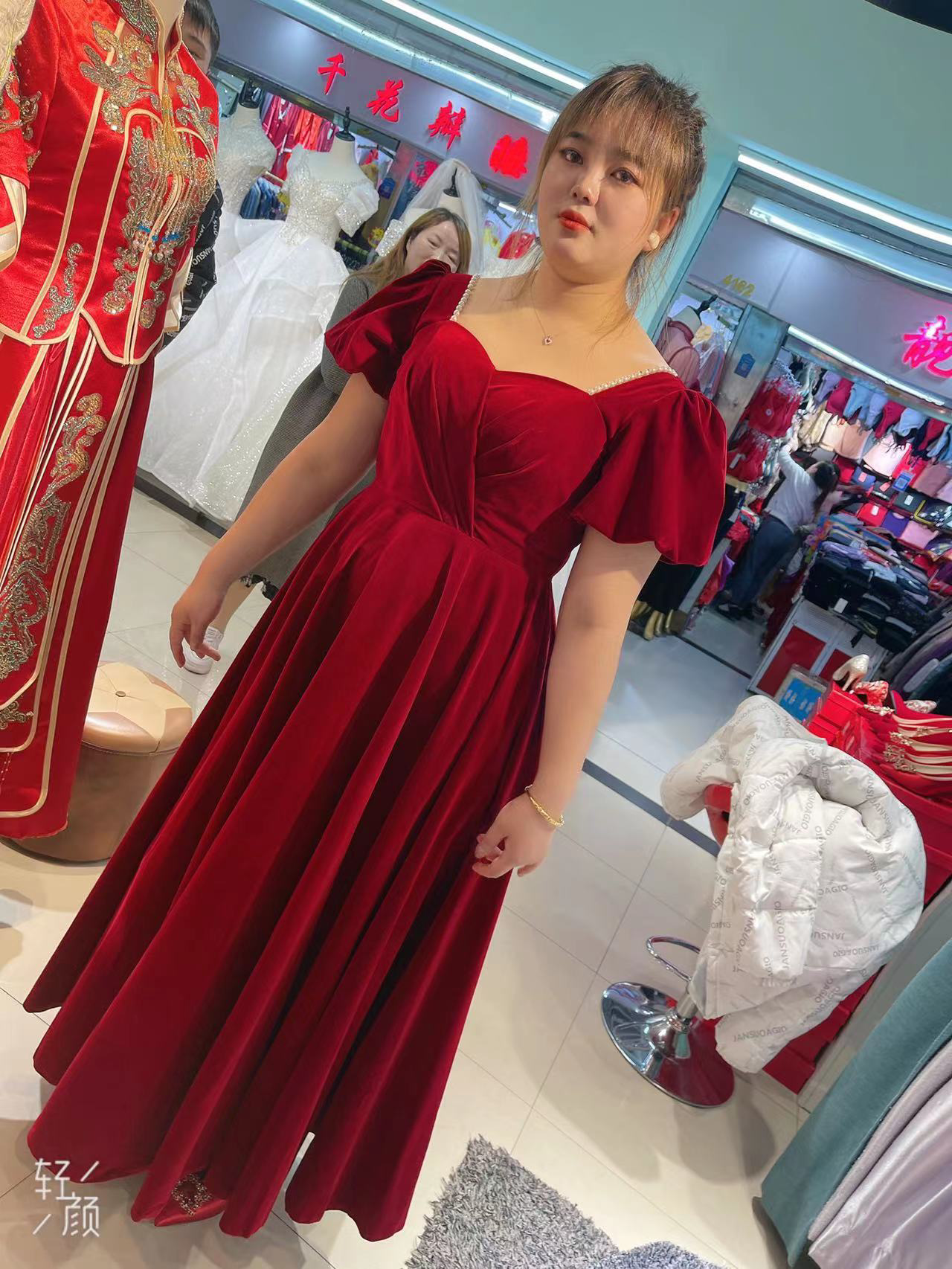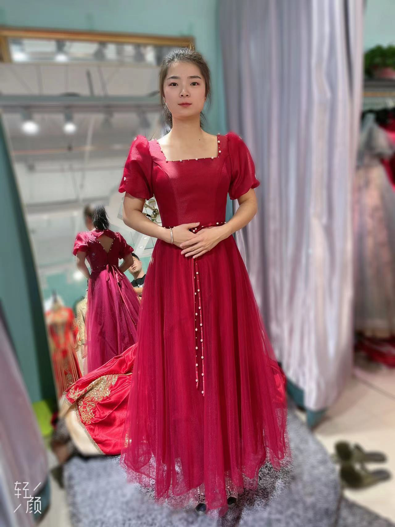 • 温婉大气,又不显胖的酒红色敬酒礼服~