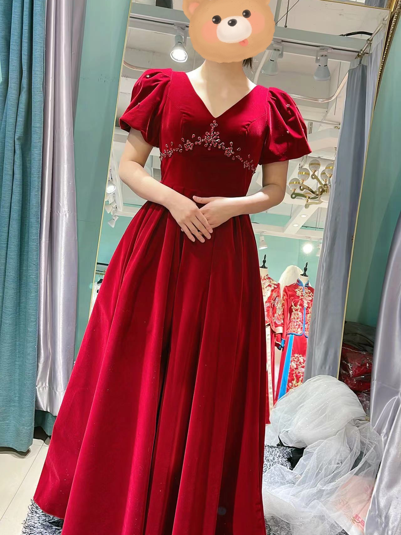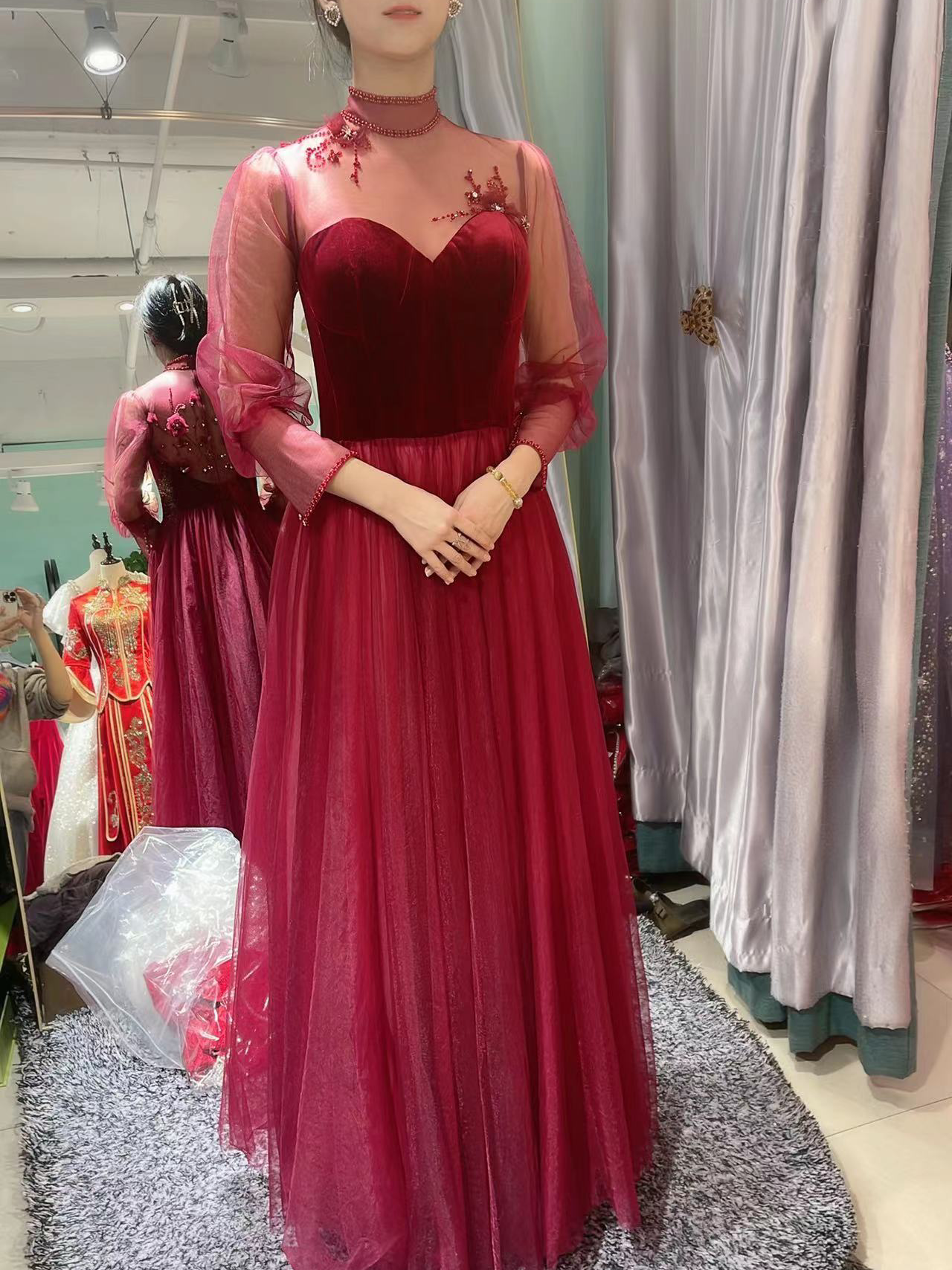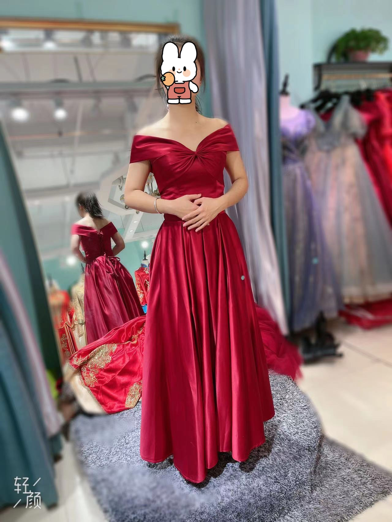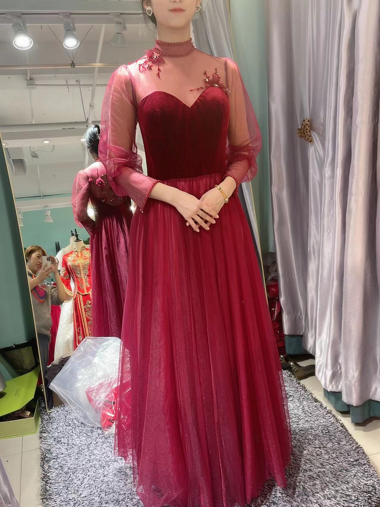 • 温婉大气,又不显胖的酒红色敬酒礼服~
