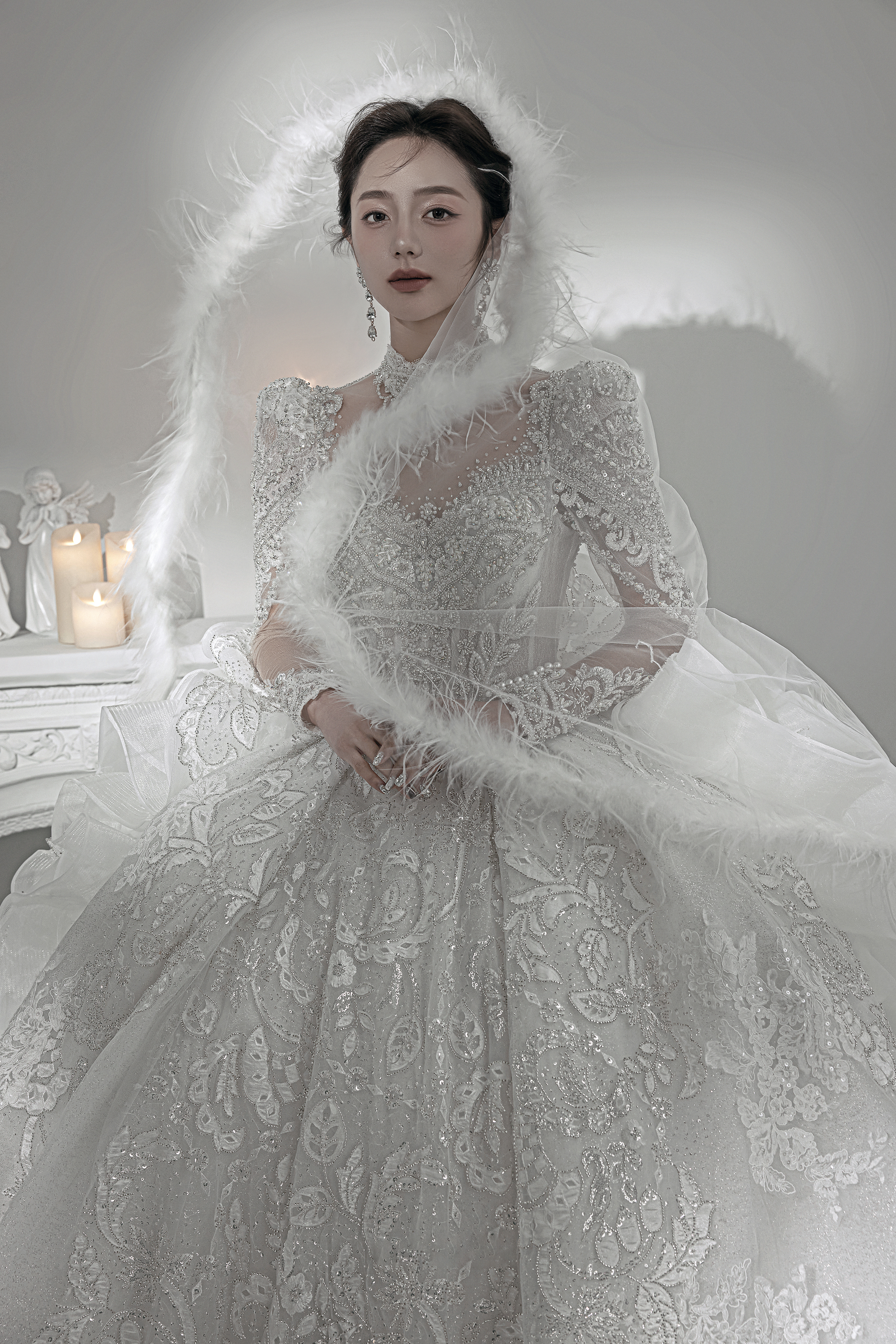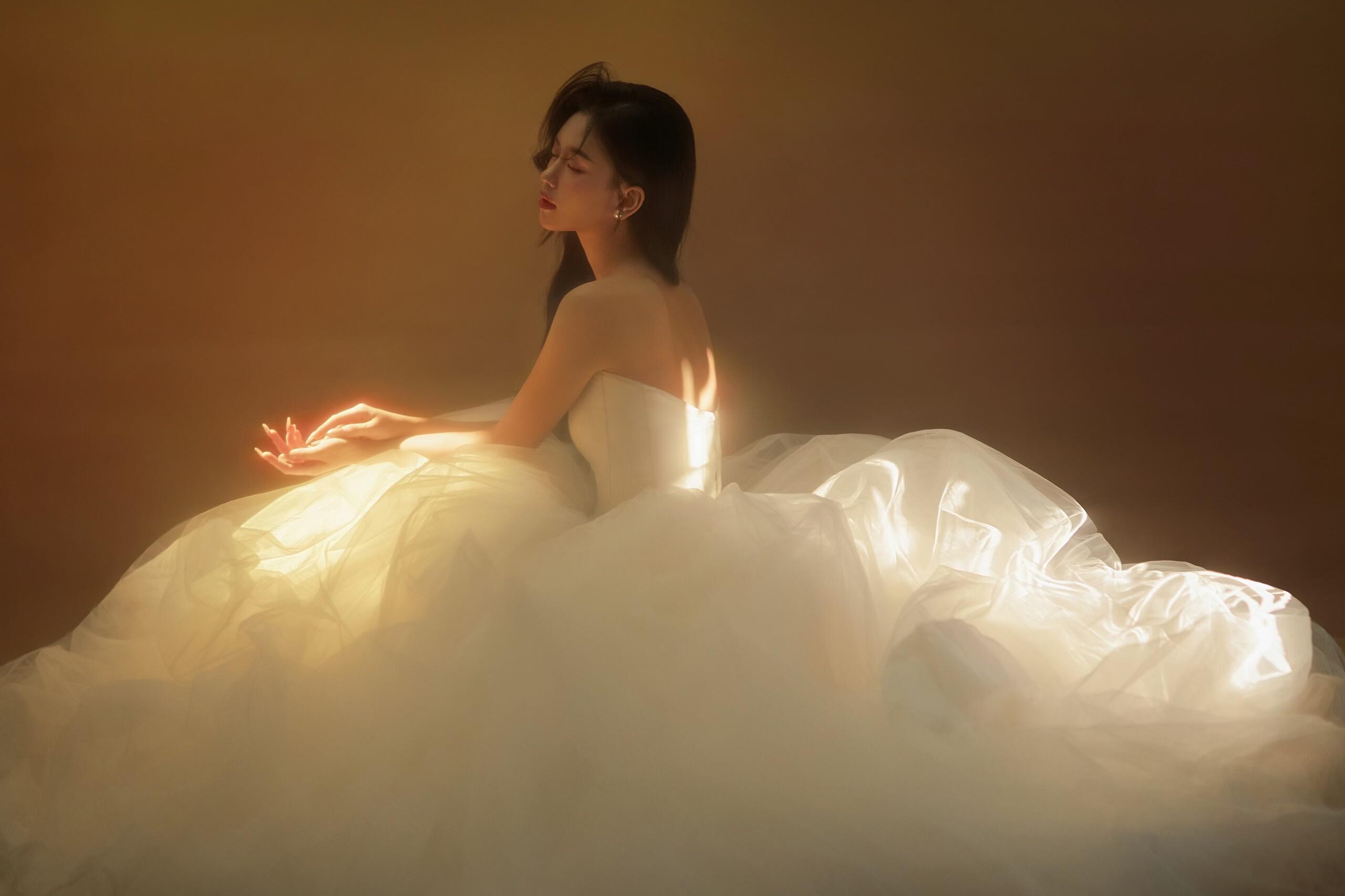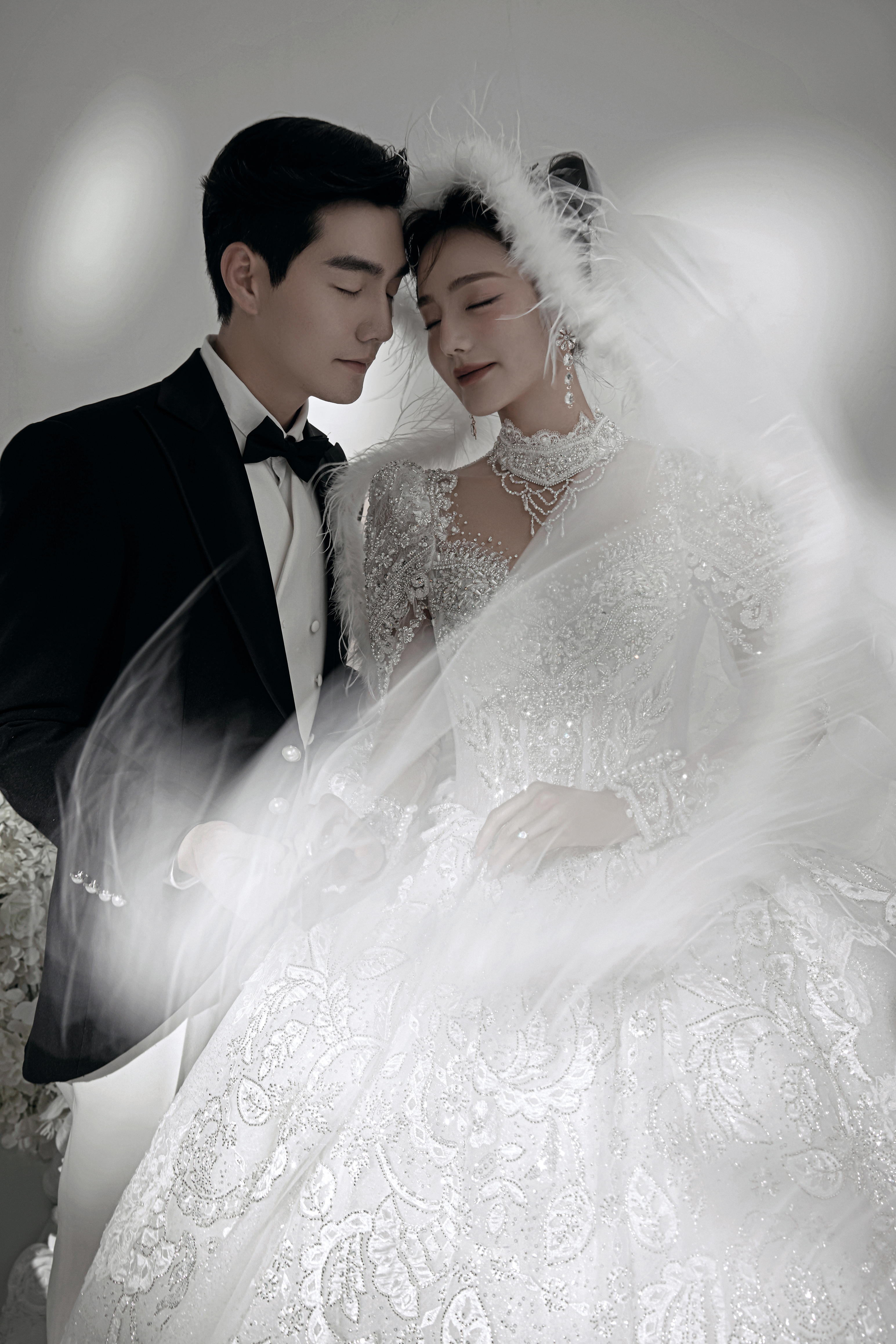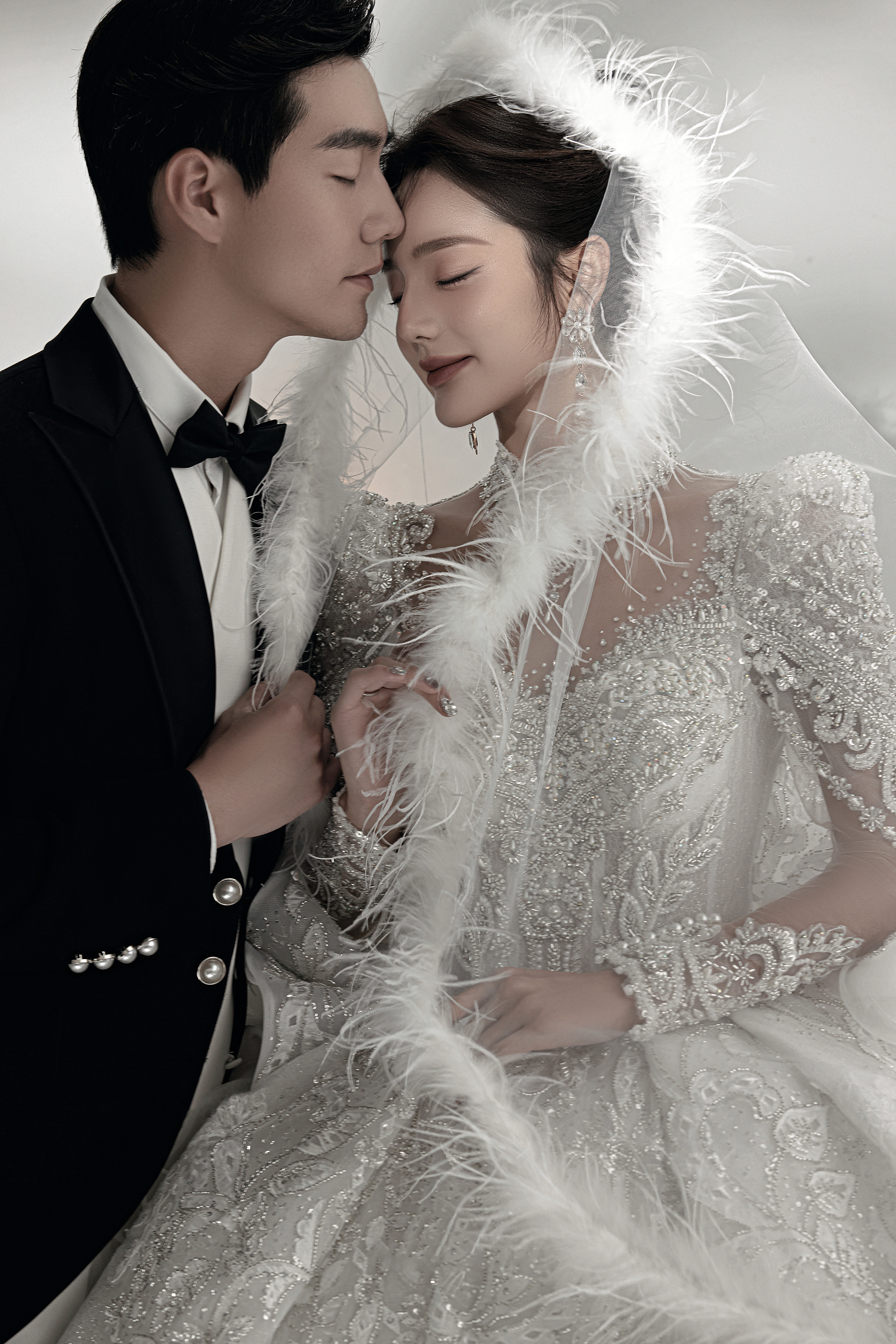• 婚纱照✨||室内 | 光影 | 艺术 | 高定 ◤艺术之始,雕塑为先◢ 光影流动在轻盈飘散的羽毛之上 纯白缎面塔夫绸勾勒曼妙身姿 宛如艺术品般无言高级的画面🤍 是每个女孩子都无法抗拒的人间浪漫 #美到犯规的光影婚纱照