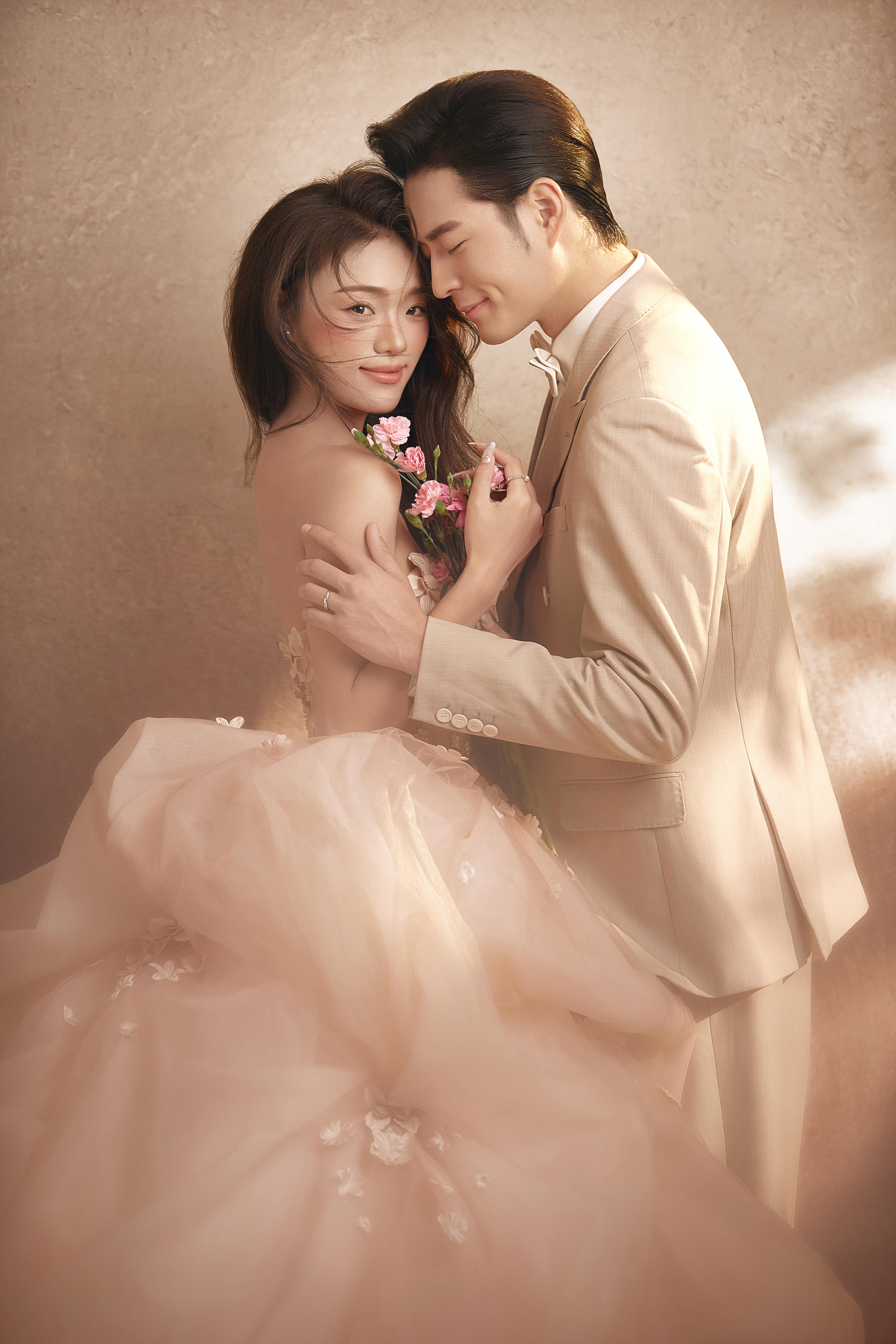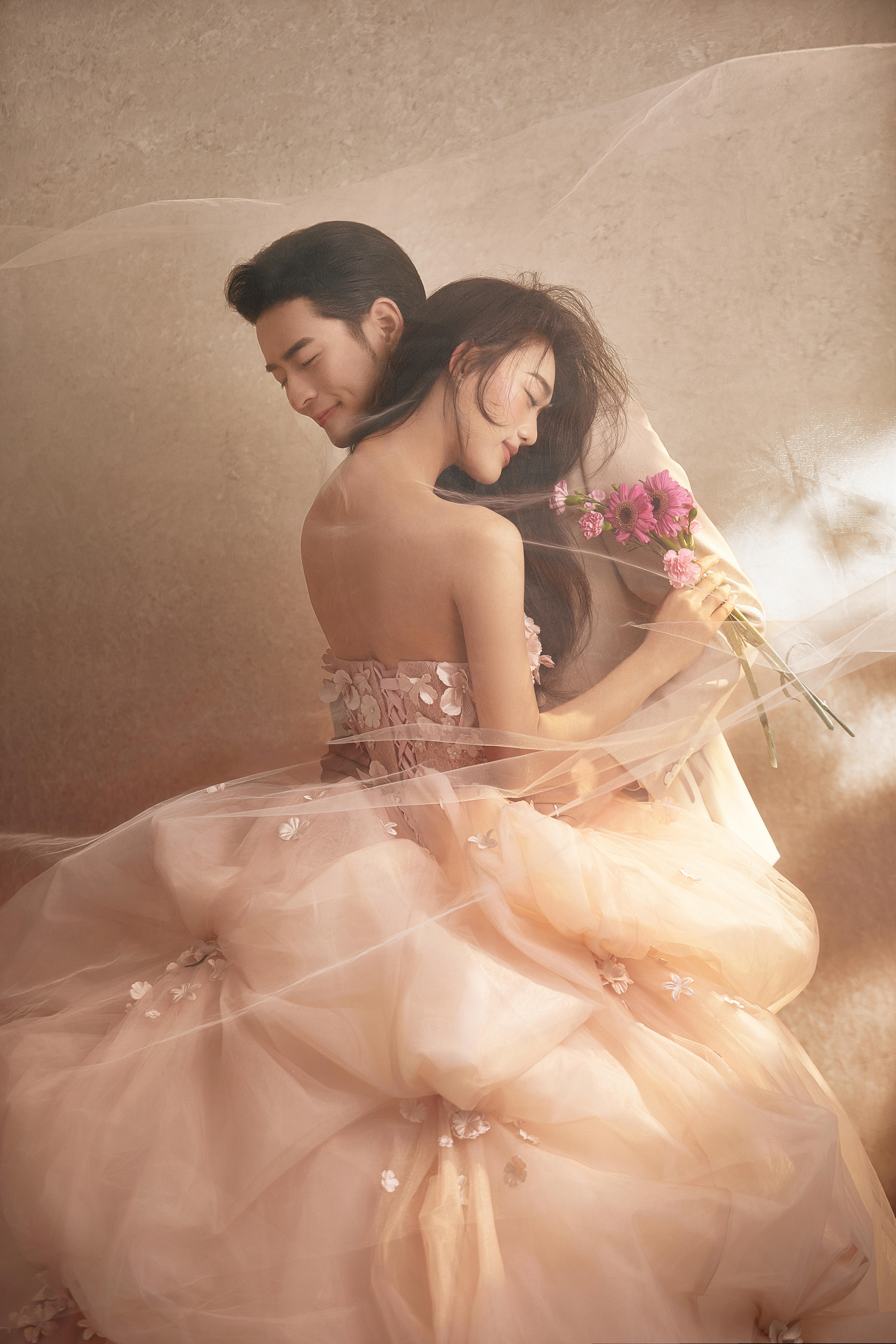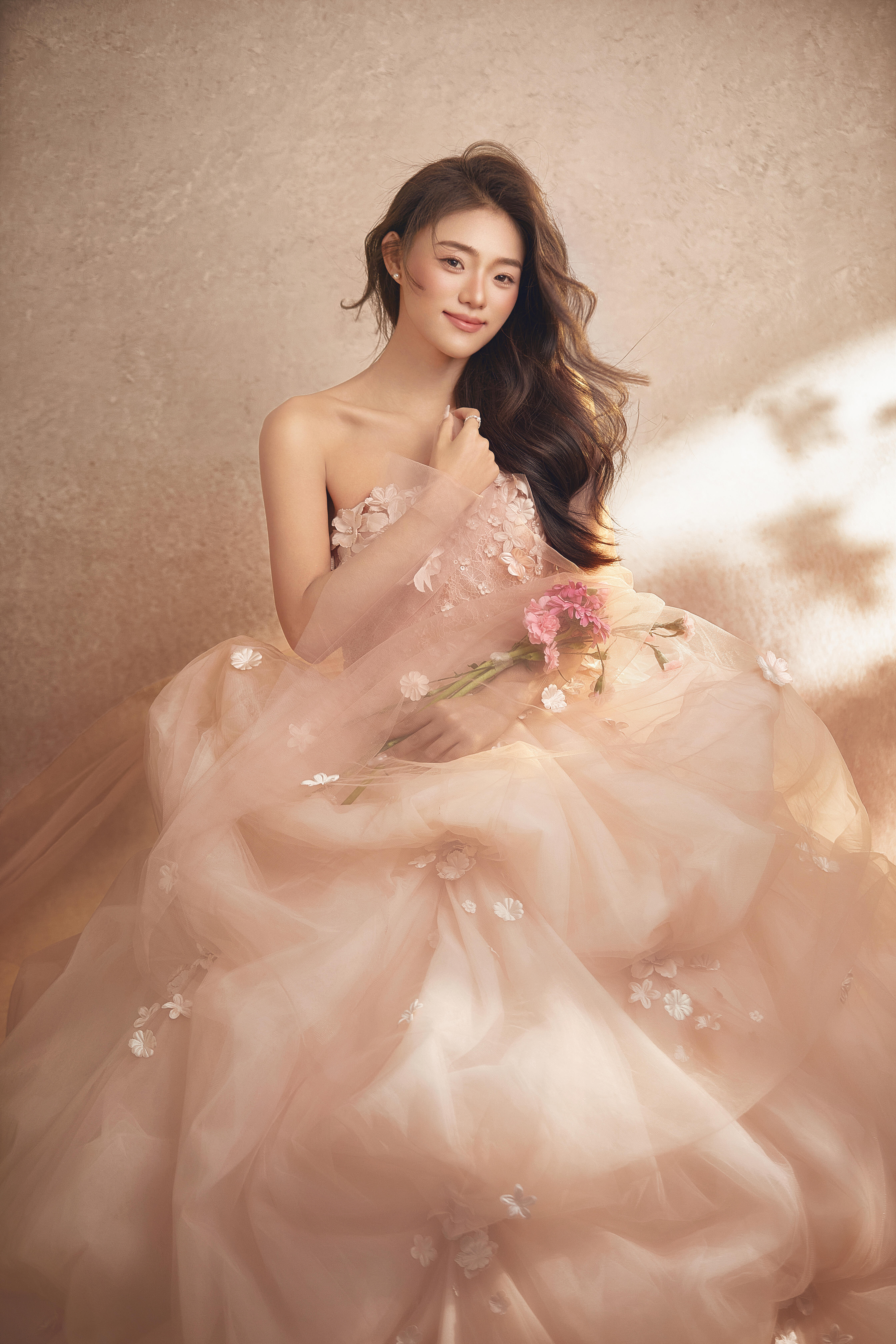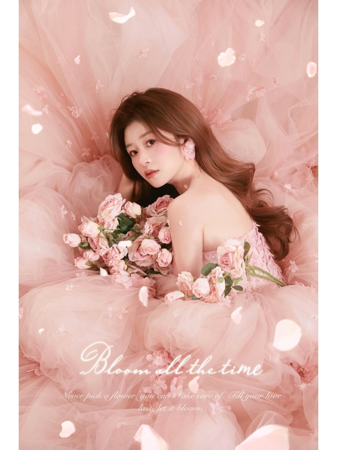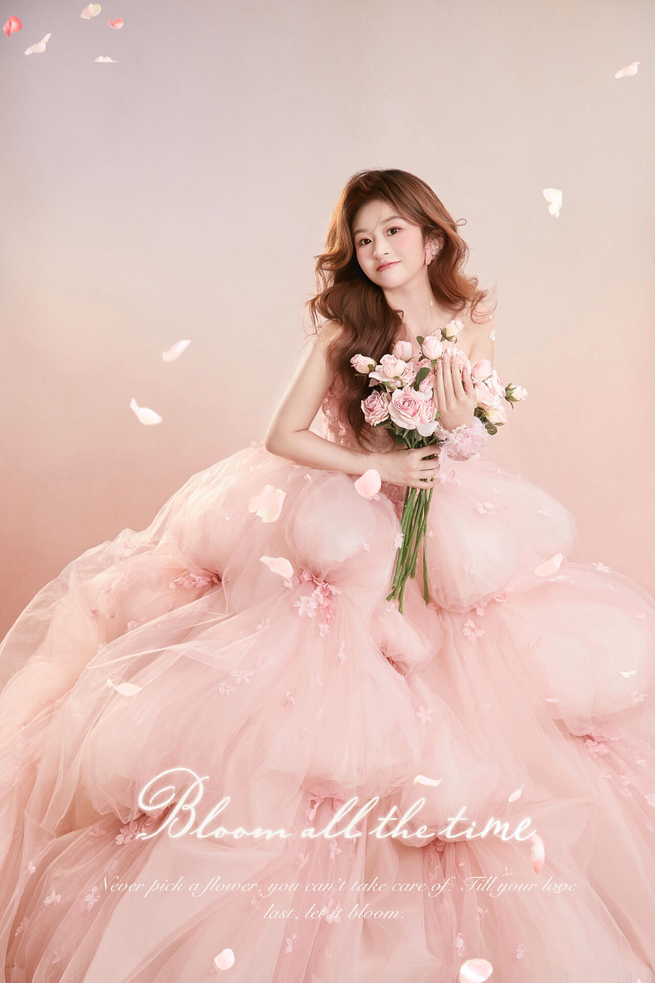• 层层叠叠的粉色花神主纱👰🏻‍♀️ 裙摆如花瓣般大肆盛开🌸 搭配韩式高马尾鲜花妆容💕 唯美少女感太戳心巴了~ · 错落有致的水波纹光影✨ 配合爱意流转在每一刻镜头📷 隔着屏幕都能感受到浪漫氛围💖#韩式花房婚纱照