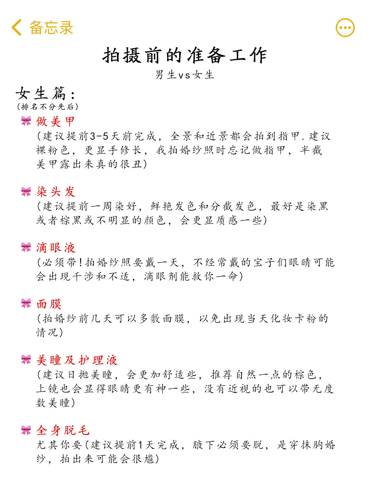 • 备婚收藏‼️拍婚纱照新人准备工作➕注意事项#婚纱照拍摄注意事项