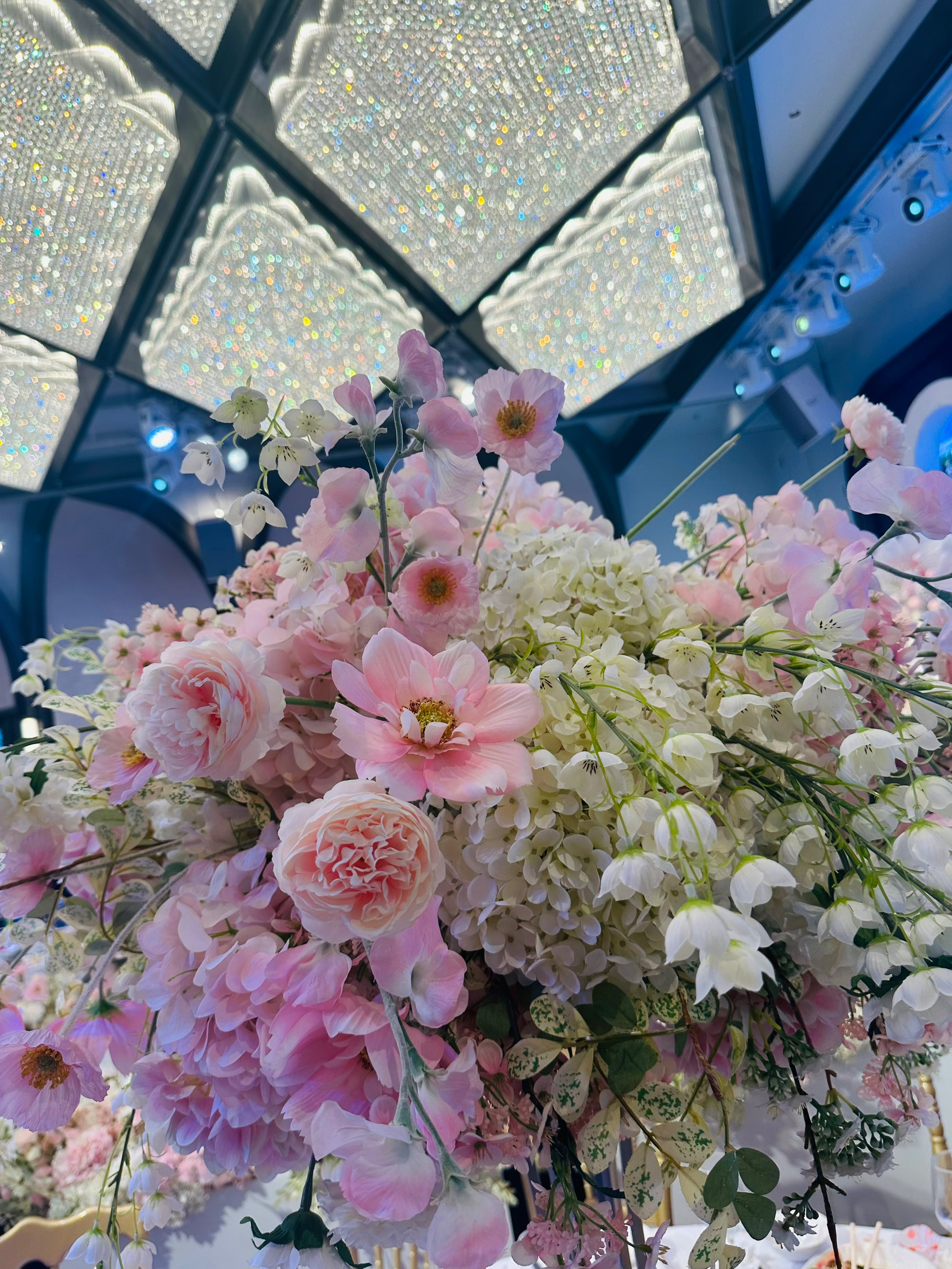 • 来参加婚礼了,感觉这个婚礼场地超梦幻!!!水晶垂坠在灯光好闪。上面的花卉也很清新浪漫。加上这场婚礼的主持人好像是阿乐老师!上次闺蜜结婚也是他台风超棒!好有气场。现场互动,6️⃣6️⃣6️⃣超亲切的,我的梦中情婚礼,心动!!!