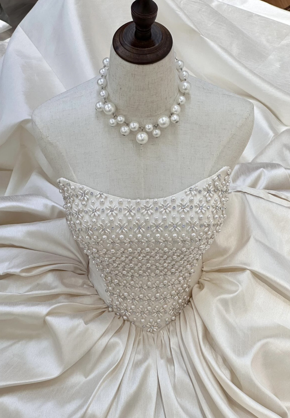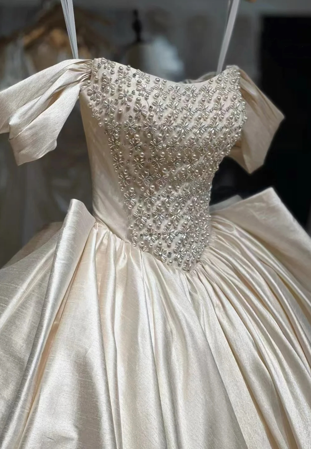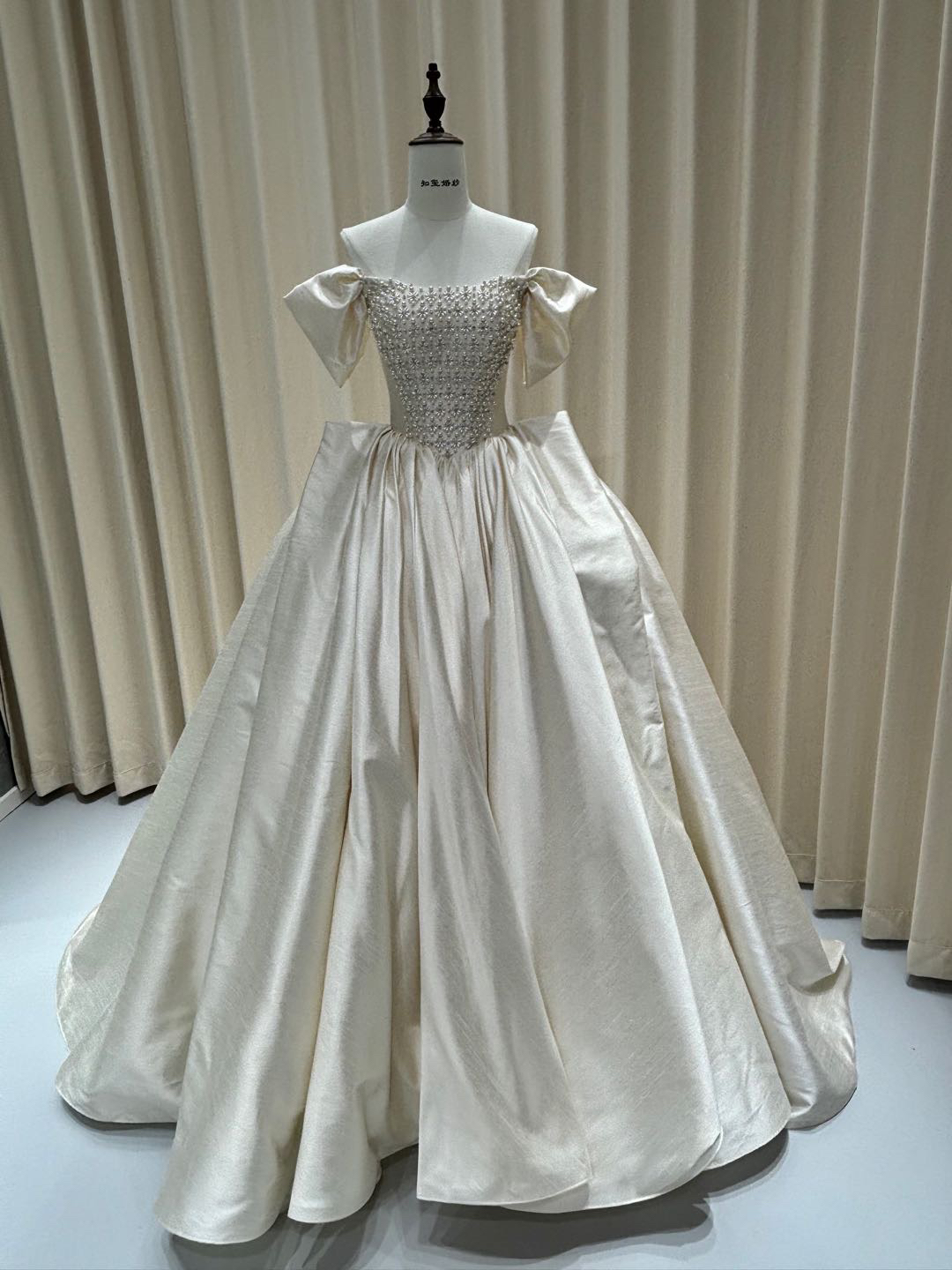• #高级缎面一字肩婚纱