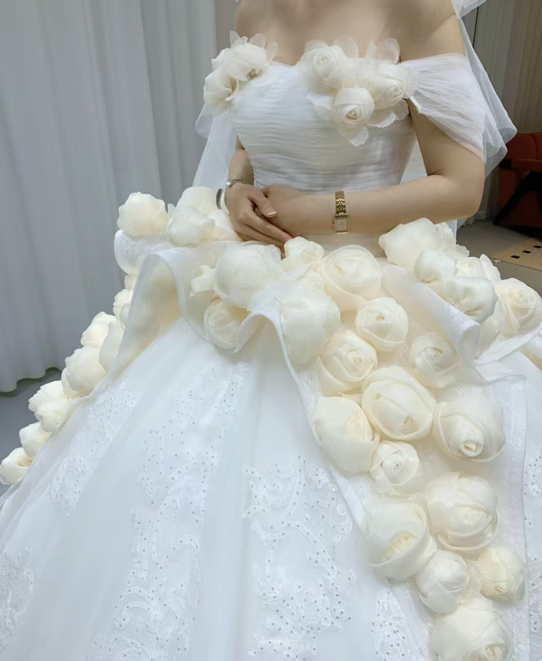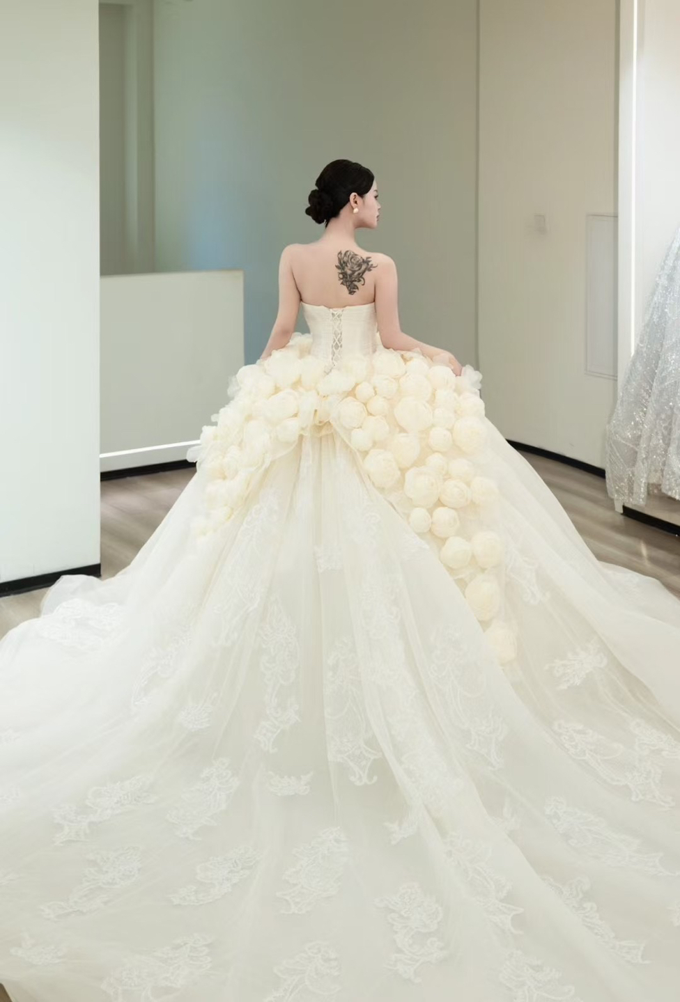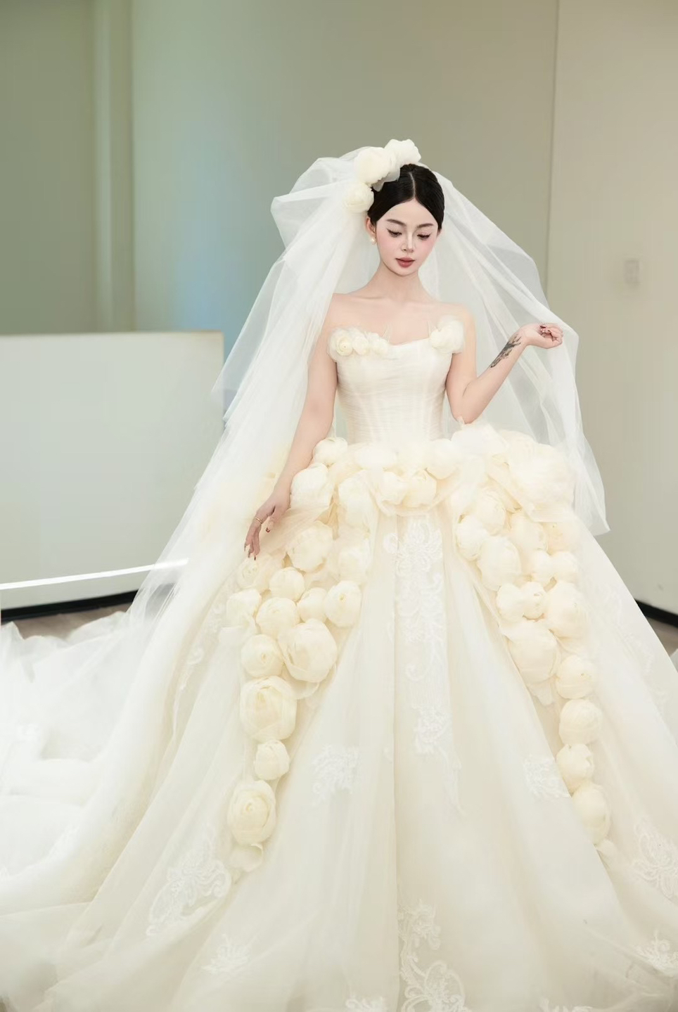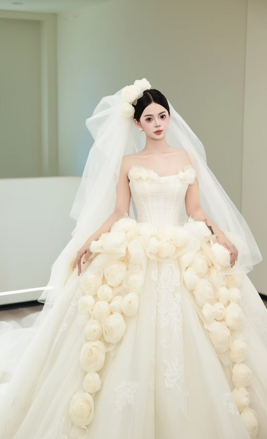 • #2025婚礼流行趋势🌹点缀设计栩栩如生 仿佛将一整个玫瑰花园披在了身上 浪漫至极 饱满的蓬蓬裙梦幻轻灵💓