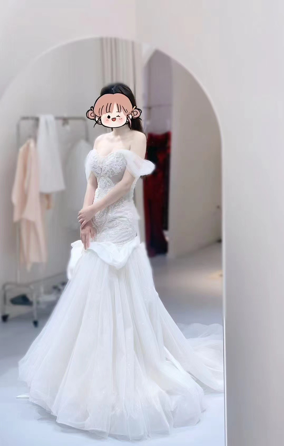 • 婚礼不可错过的鱼尾婚纱 鱼尾的设计完美呈现小仙女的身形曲线 优雅中带着满满的高级感 #试纱的一天vlog