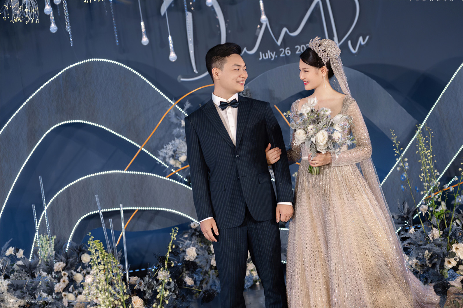 • 当进场音乐想起那一刻,开始以为自己会控制住,但是当听到主持人的声音想起时,内心一片涌动。说起过去的点滴,爱情经历……总之非常感谢主持人裕康特地为我们写的词,很是感动。也谢谢化妆师小姐姐耐心地为我化上精致的妆容。还有摄影小哥也很给力。以及策划师为我用心的设计方案。差点忘记了,还有超哥和他的小伙伴们都非常的专业用心,谢谢你们给了我们一场梦幻的婚礼。