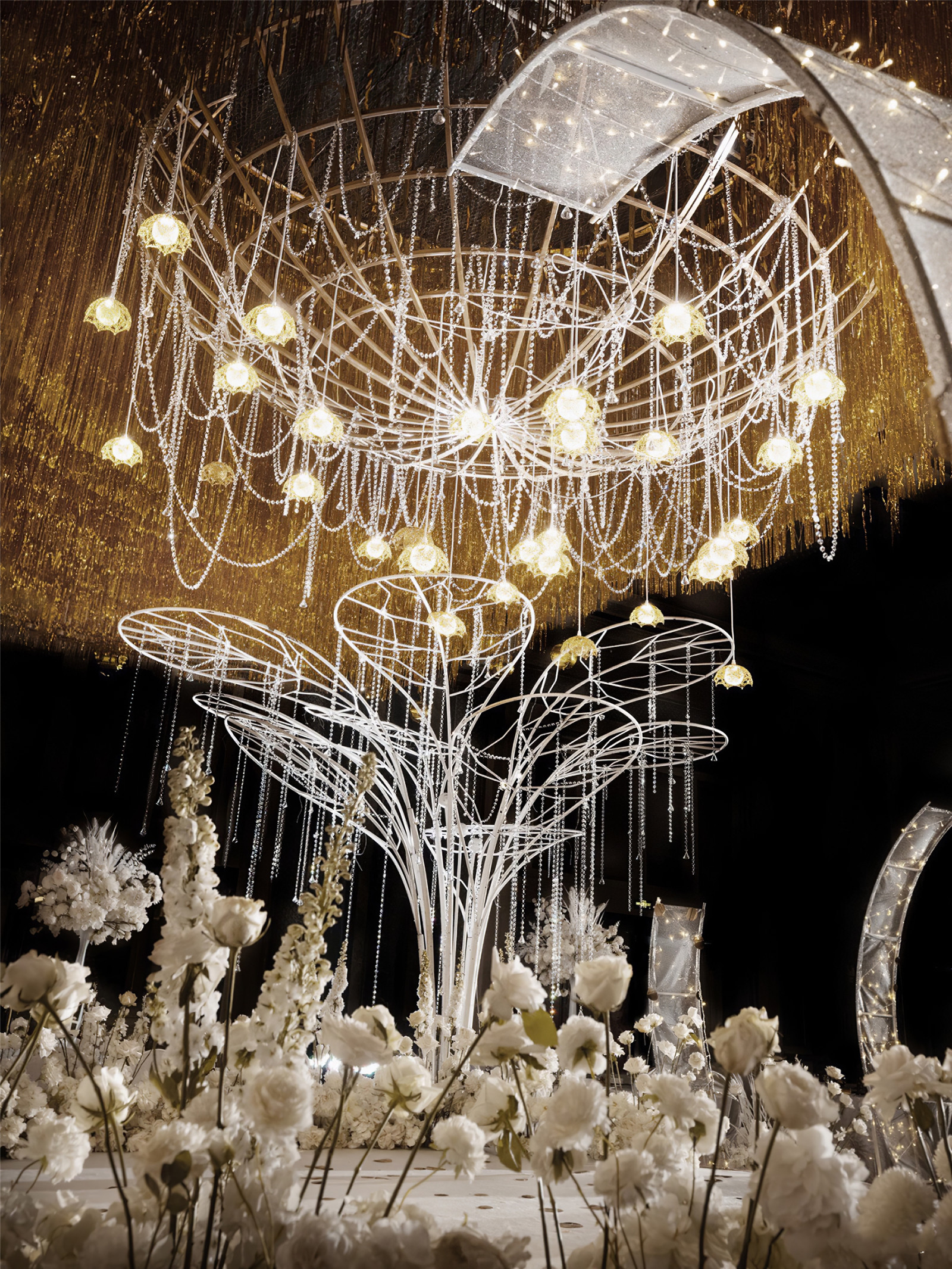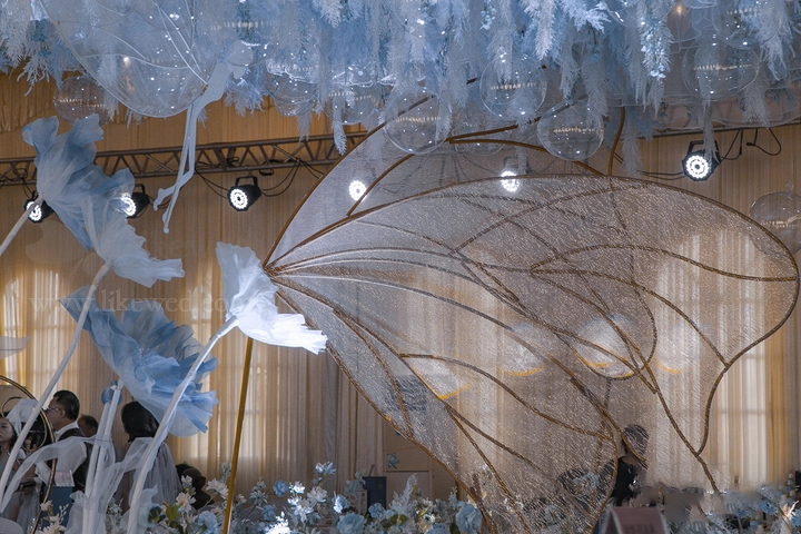 • 创意的布置有一种梦幻的感觉,让我印象最深刻的就是第一场的仪式,新郎走向我的时候跪下,说出深情款款的誓言,恰到好处地响起悠长的音乐…那一刻很让我动容,这场婚礼见证了我们一起走过了五年的时光。除了满满的感动还有许多有趣的小环节,整个婚礼感觉下来还挺享受的。