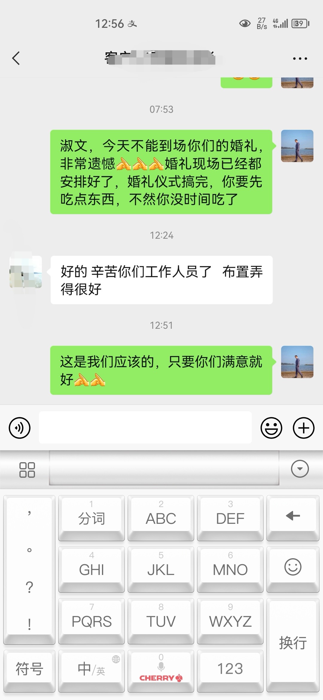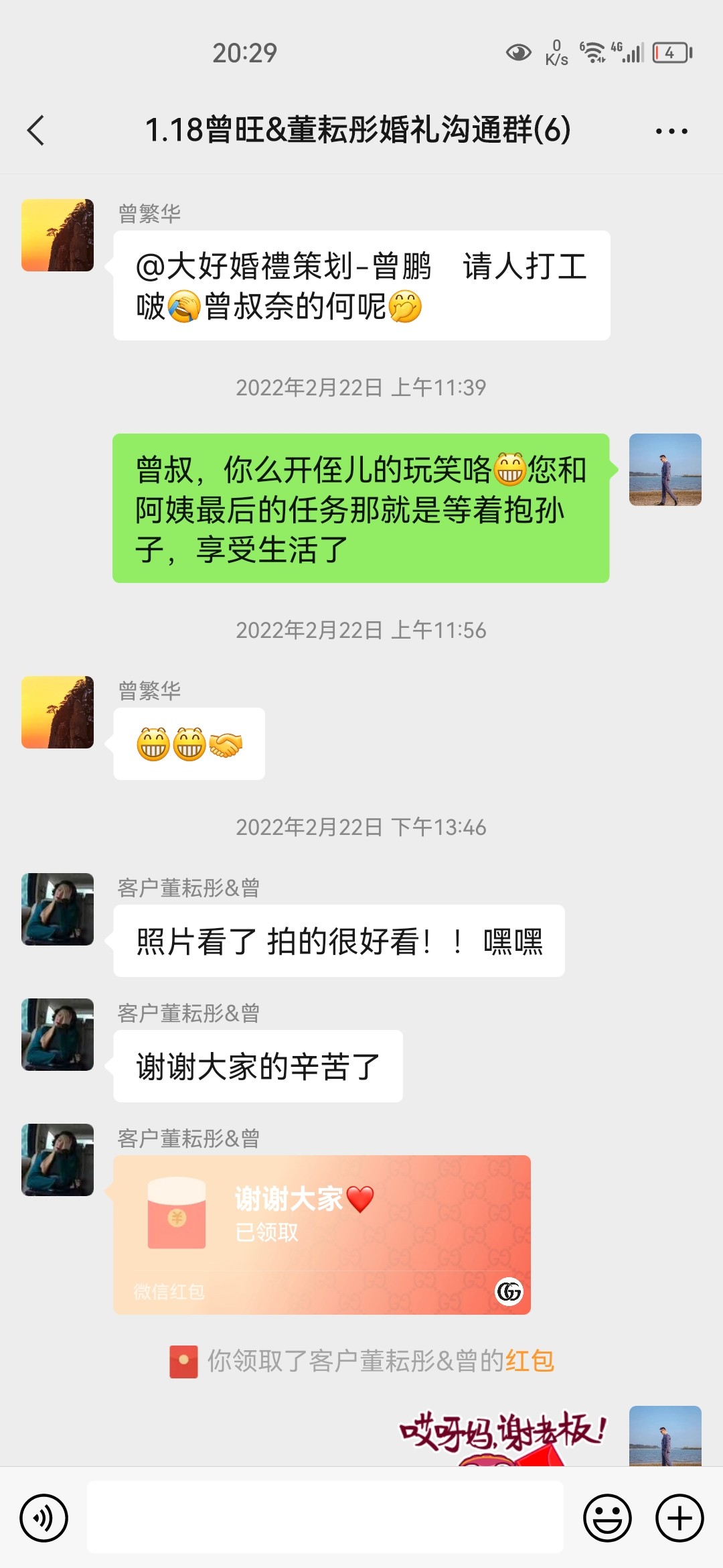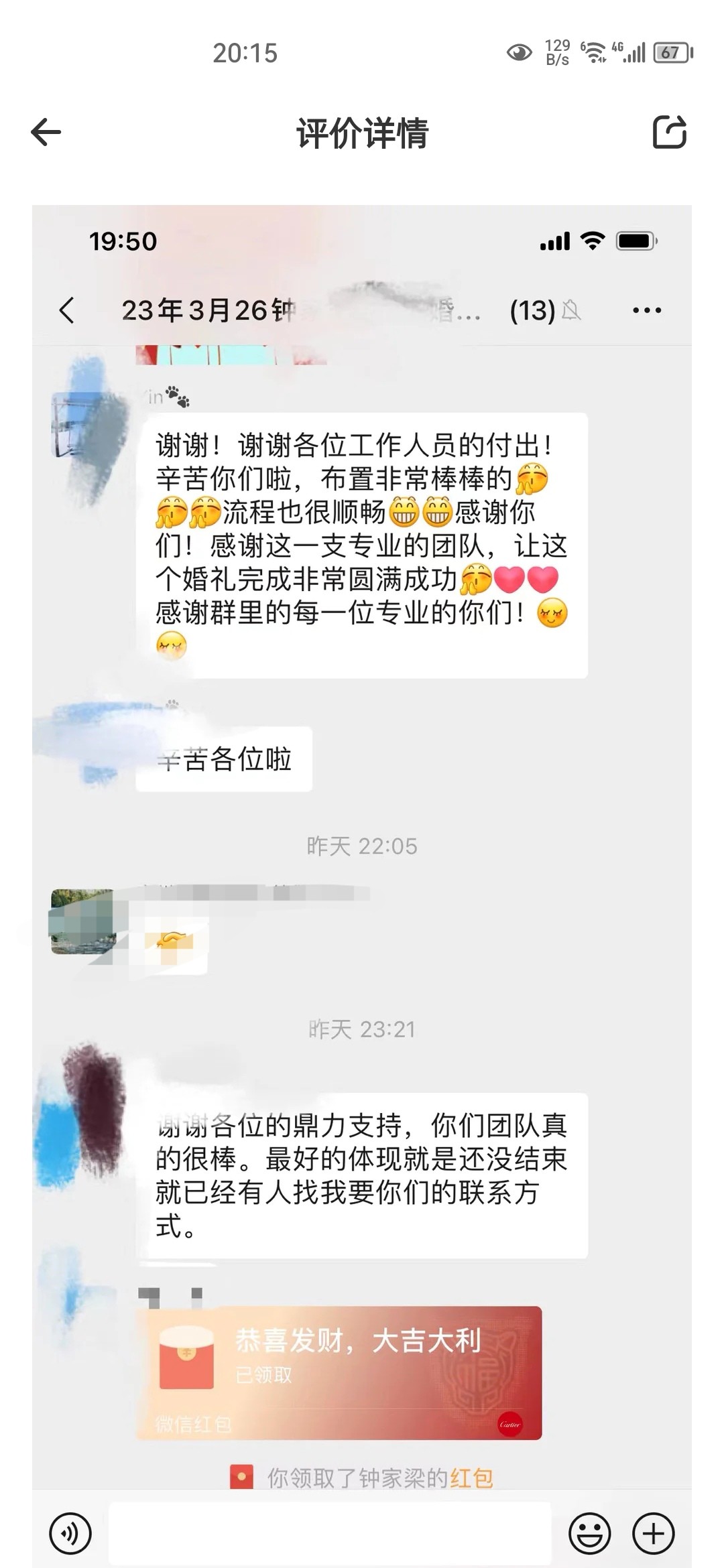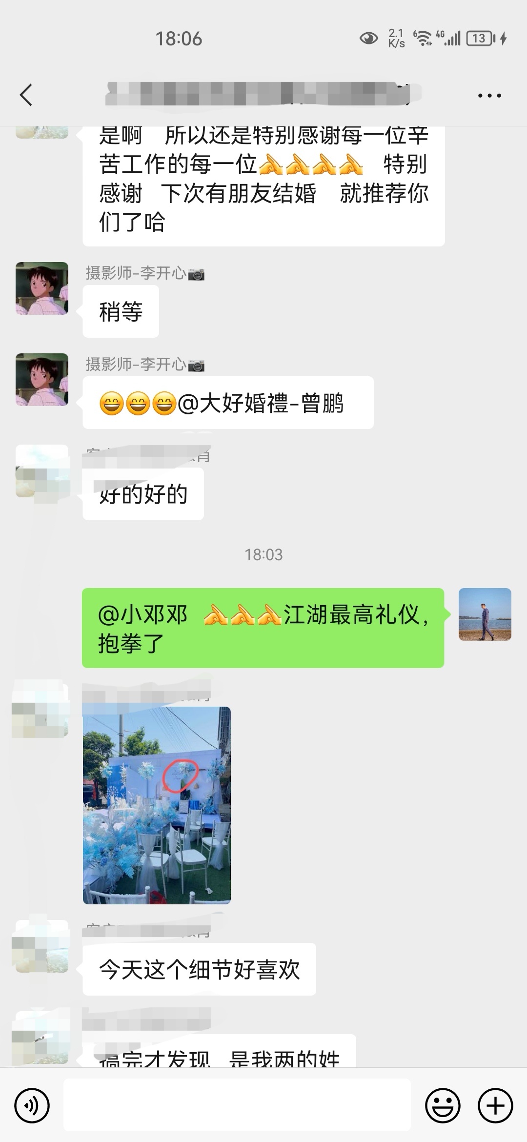 • 因为时间的关系一直没有太多的时间和精力去筹备自己的婚礼,。去他们家是因为朋友推荐过去的,。心想着找婚庆公司不就是当天布置下就好了,。签了才发现找一家专业的婚庆公司原来可以这么省心,。从请柬到喜糖到席位图的各种婚礼筹备的各种细碎的活儿都被全程操心包掉了,。很省心的一家公司,。推荐