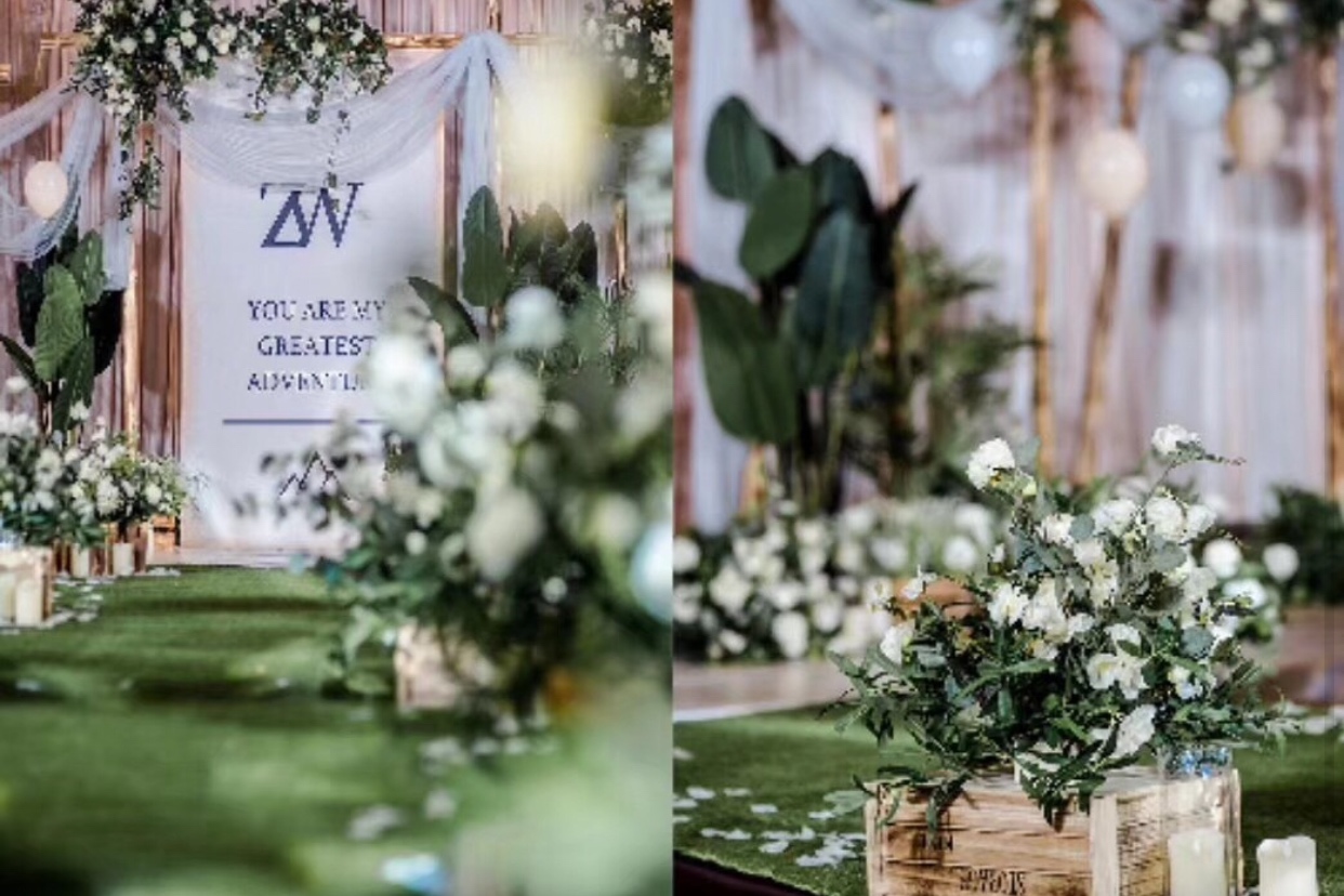 • 找婚礼公司前,初步先给自己定了个大方向:简洁、清新、户外然后带着方向在婚礼纪上看了许许多多婚礼方案,看到了他们家各式各样的户外小清新主题,这不就是我想要的感觉么!而且每一场都非常有特色,不会单是花花草草那样我的婚礼策划师真的是不厌其烦的帮我们改方案,光是场地他们就去了好几次,尺寸测量的非常精确我们定的位置,加班加点做设计现场效果非常好,每一个细节都是之前设计师和我们再三确定的,满足了我的少女梦我的婚礼小秘书非常暖心,从接亲到仪式,全程提醒我需要注意的事项,帮我整理婚纱、拿花,有她在身边,特别安心!婚礼结束,酒店的销售经理和我说,这是今年这里办过的最美的婚礼,好开心也好感动。