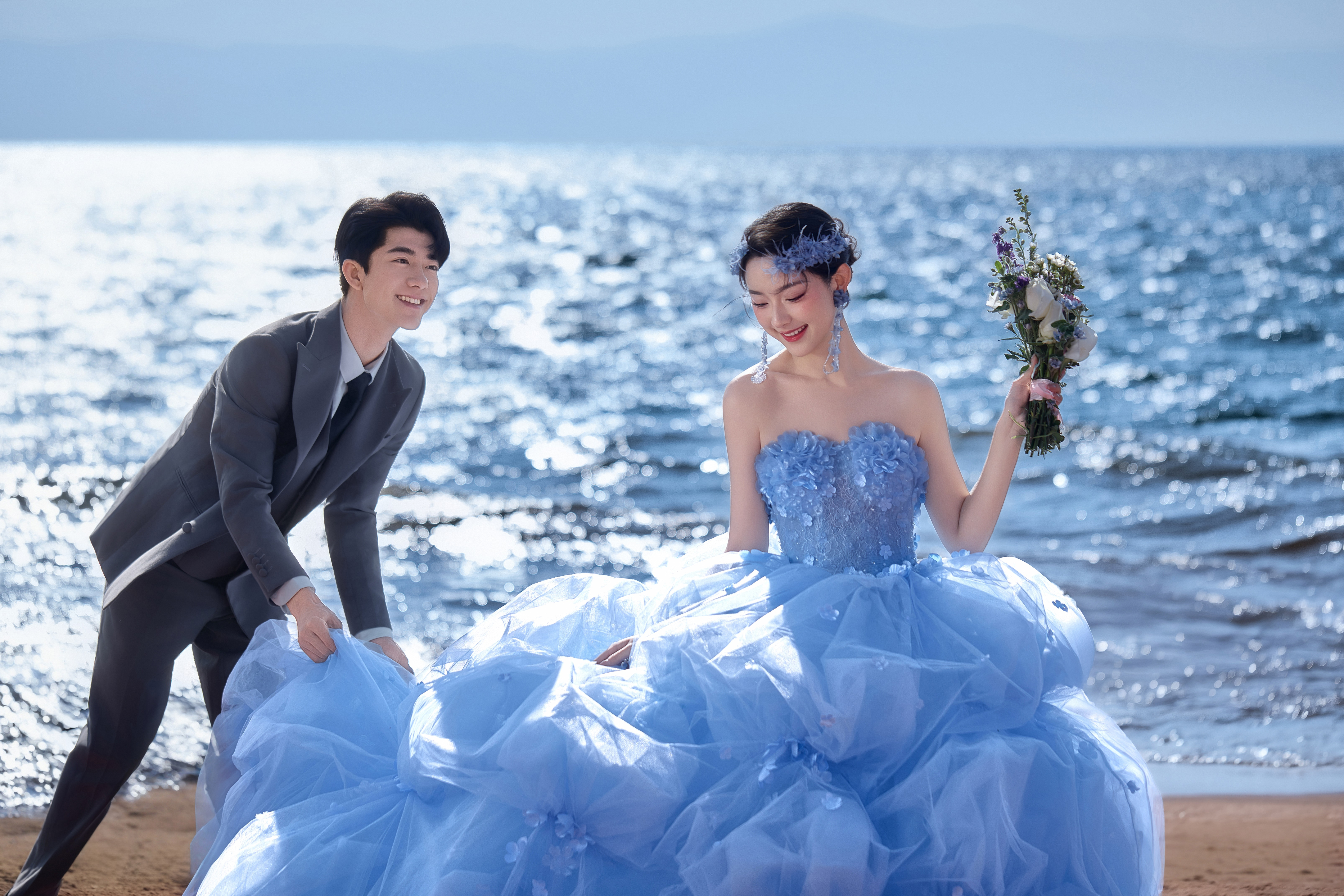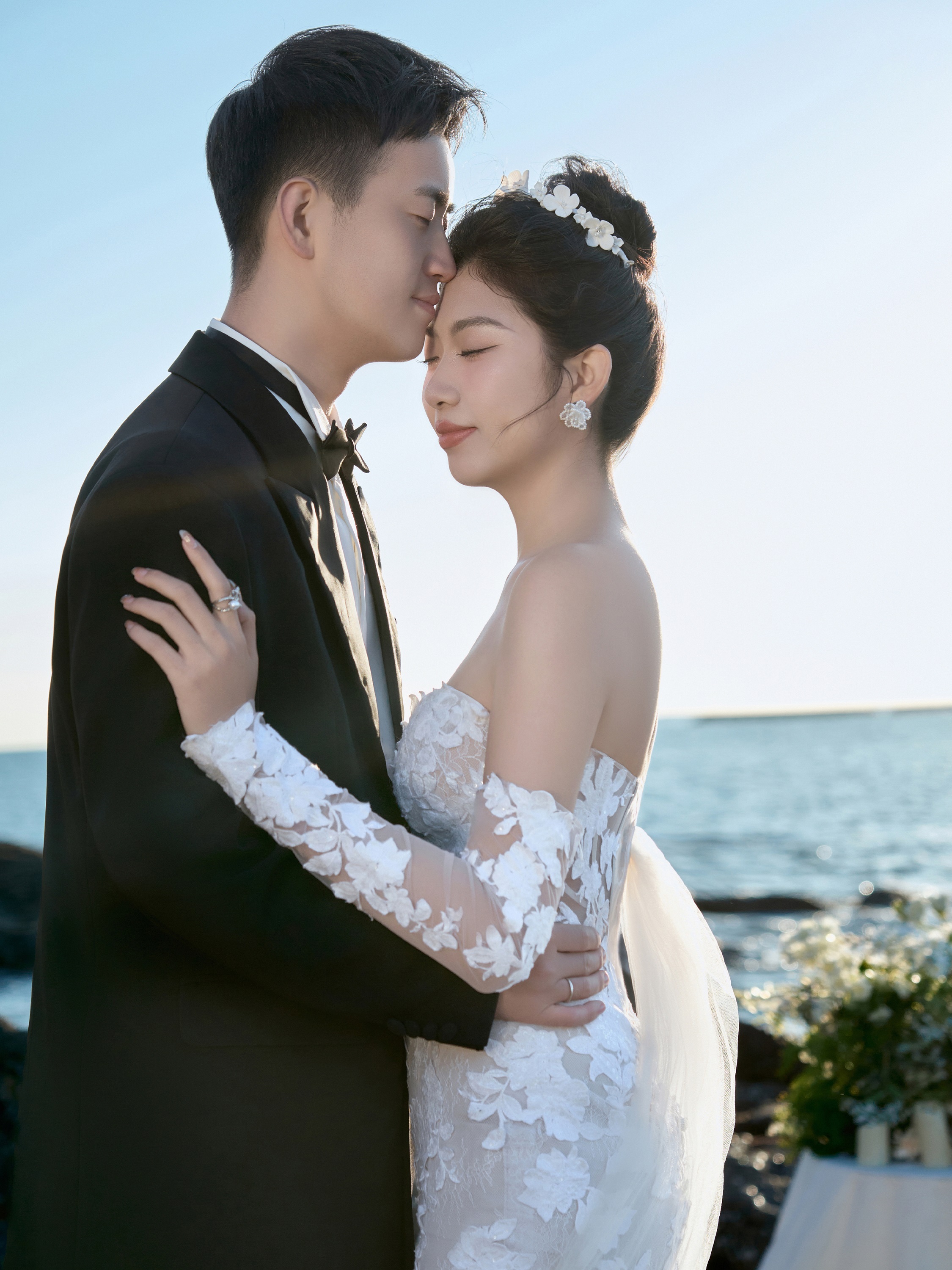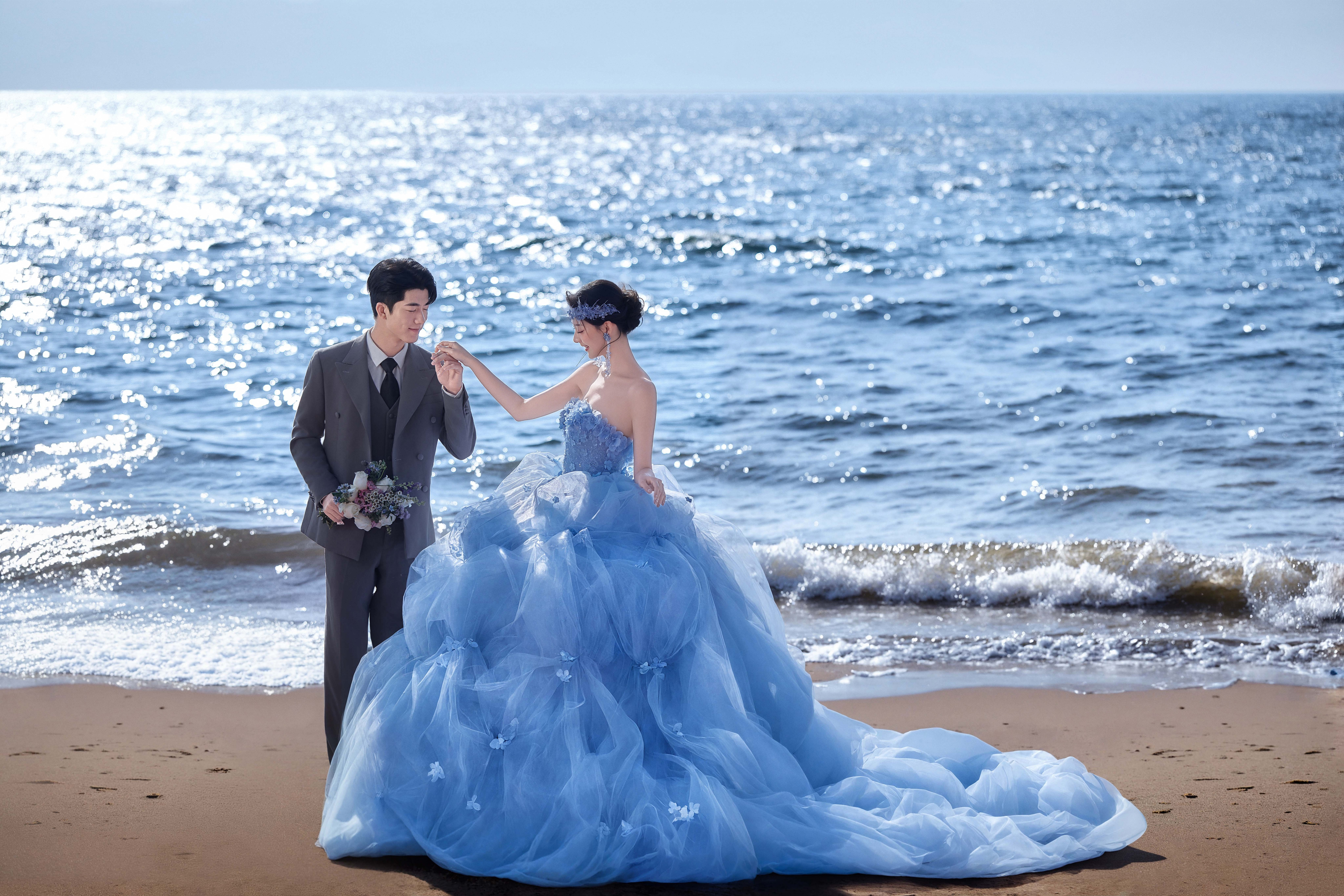 • 选择在海边拍摄婚纱照,本是源于对大海的执念,而实际成片的效果,却给了我们远超期待的惊喜与感动。从前期沟通到拍摄结束,每一个细节都尽显专业,让这场浪漫之旅格外舒心。 拍摄前,摄影师和化妆师提前和我们沟通风格偏好,根据海边的光线特点、潮汐时间,定制了专属拍摄方案,还贴心提醒我们准备轻便的鞋子、防晒用品,甚至建议搭配的服装色系,细致到让人安心。化妆时,化妆师精准把握了自然清透的妆容风格,既贴合海边的清新氛围,又能经得住强光拍摄,发型设计也随着服装切换灵活调整,一整天下来妆容依旧精致服帖,完全没有脱妆斑驳的情况。 拍摄过程中,摄影师的专业度更是让人赞叹。他没有让我们生硬摆拍,而是通过轻松的聊天、有趣的互动引导我们自然流露情绪,捕捉到了很多不经意间的甜蜜瞬间——海边漫步时的相视一笑、海风拂起裙摆时的相拥、踏浪奔跑时的肆意开怀,每一个画面都充满了故事感。面对我们偶尔的僵硬和紧张,摄影师耐心指导姿势,还会用幽默的话语缓解氛围,让整个拍摄过程轻松又愉快。 最惊喜的莫过于成片效果。湛蓝的大海作为背景,自带纯净治愈的滤镜,阳光洒在海面上波光粼粼,与白色婚纱、浅色西装搭配得恰到好处。后期修图没有过度磨皮液化