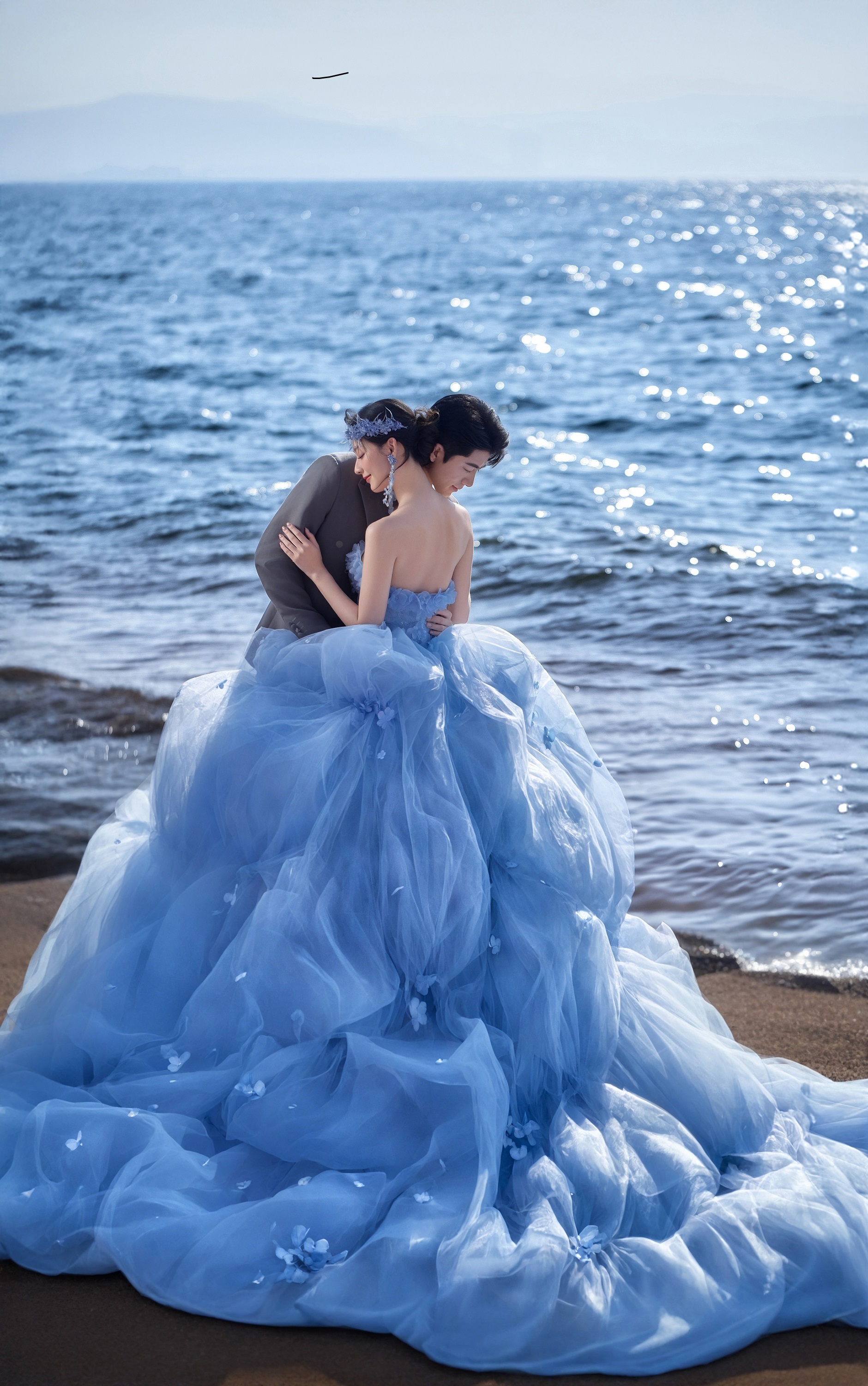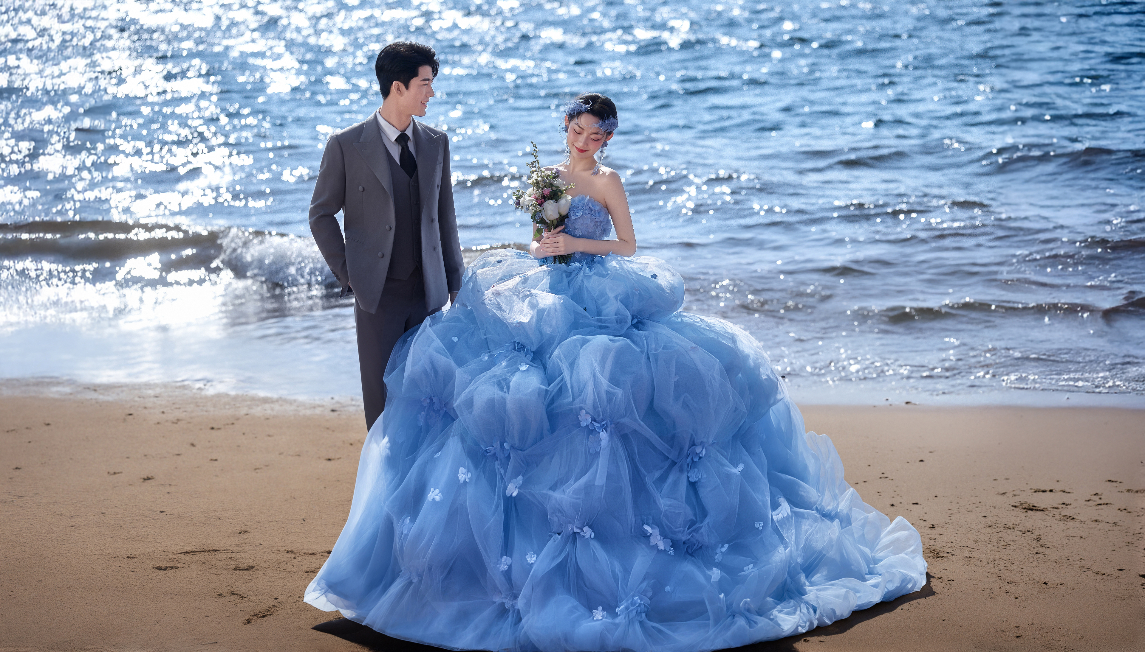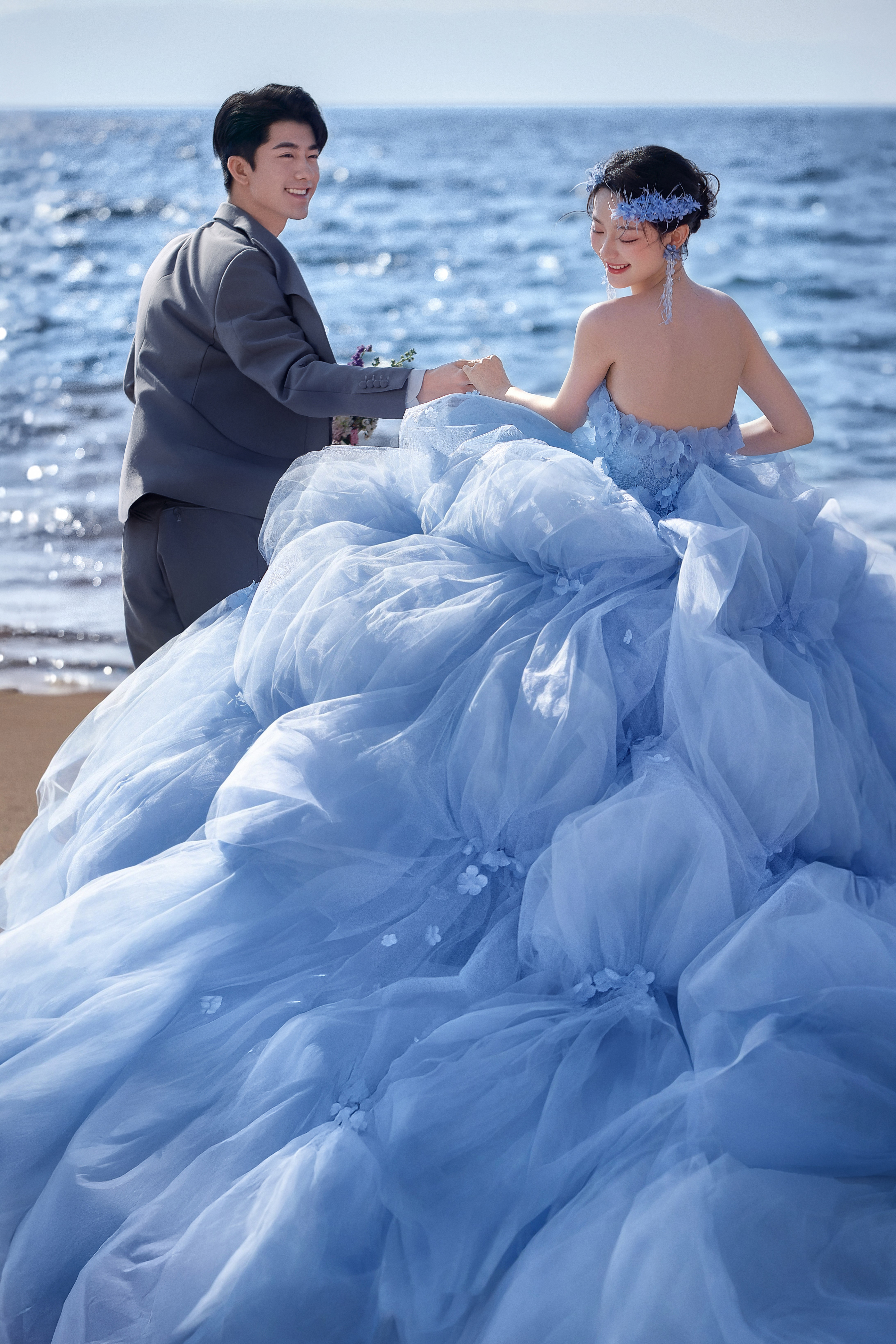 • 选择在海边拍摄婚纱照,本是源于对大海的执念,而实际成片的效果,却给了我们远超期待的惊喜与感动。从前期沟通到拍摄结束,每一个细节都尽显专业,让这场浪漫之旅格外舒心。 拍摄前,摄影师和化妆师提前和我们沟通风格偏好,根据海边的光线特点、潮汐时间,定制了专属拍摄方案,还贴心提醒我们准备轻便的鞋子、防晒用品,甚至建议搭配的服装色系,细致到让人安心。化妆时,化妆师精准把握了自然清透的妆容风格,既贴合海边的清新氛围,又能经得住强光拍摄,发型设计也随着服装切换灵活调整,一整天下来妆容依旧精致服帖,完全没有脱妆斑驳的情况。 拍摄过程中,摄影师的专业度更是让人赞叹。他没有让我们生硬摆拍,而是通过轻松的聊天、有趣的互动引导我们自然流露情绪,捕捉到了很多不经意间的甜蜜瞬间——海边漫步时的相视一笑、海风拂起裙摆时的相拥、踏浪奔跑时的肆意开怀,每一个画面都充满了故事感。面对我们偶尔的僵硬和紧张,摄影师耐心指导姿势,还会用幽默的话语缓解氛围,让整个拍摄过程轻松又愉快。 最惊喜的莫过于成片效果。湛蓝的大海作为背景,自带纯净治愈的滤镜,阳光洒在海面上波光粼粼,与白色婚纱、浅色西装搭配得恰到好处。后期修图没有过度磨皮液化