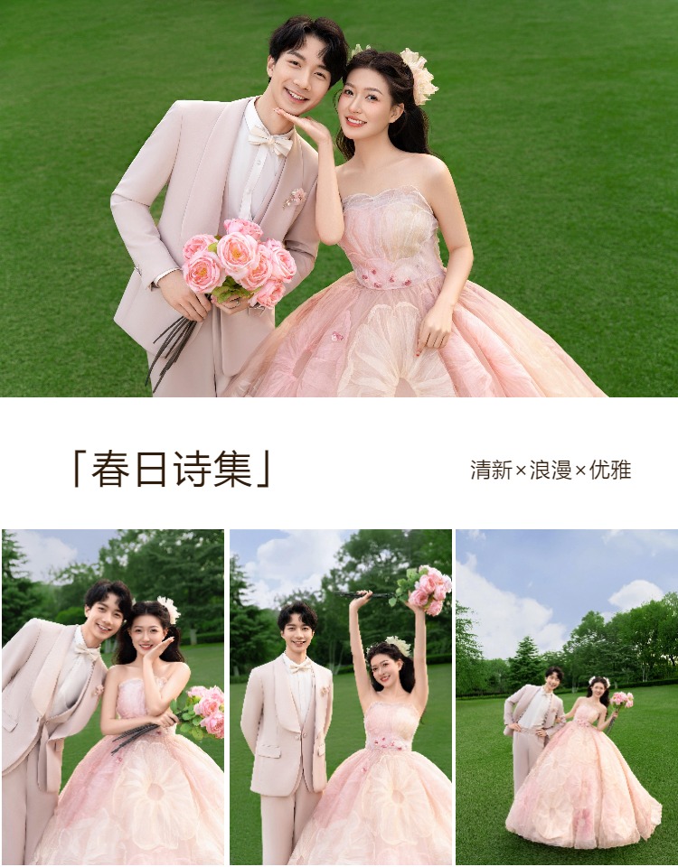 • 轻甜纪实草坪婚纱照|烟火日常,爱意流淌 摒弃复杂道具,只留自然与彼此。在草坪上奔跑打闹、席地而坐分享零食,或是依偎着看云卷云舒,用镜头捕捉最真实的互动瞬间。松弛的笑容、不经意的触碰,都裹着青草的香气,记录“平凡日子也浪漫”的轻甜时光。#婚纱照风格怎么选