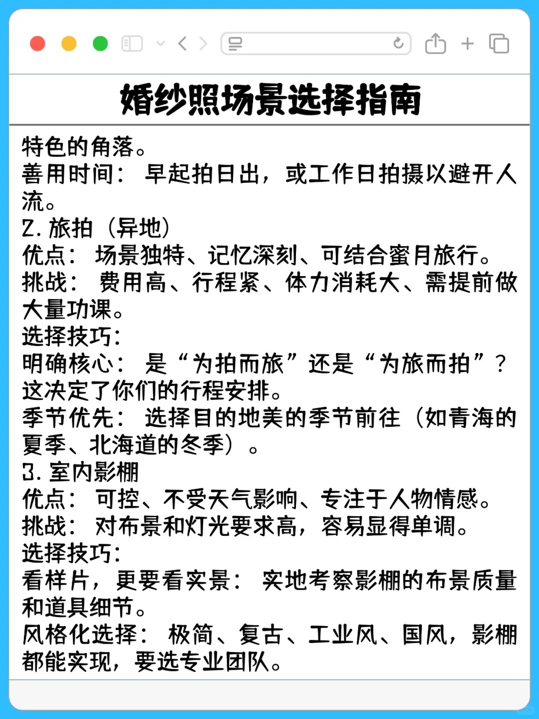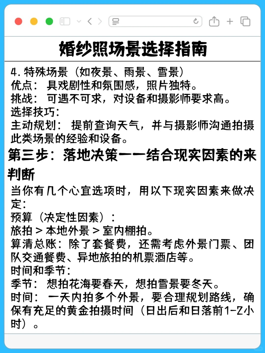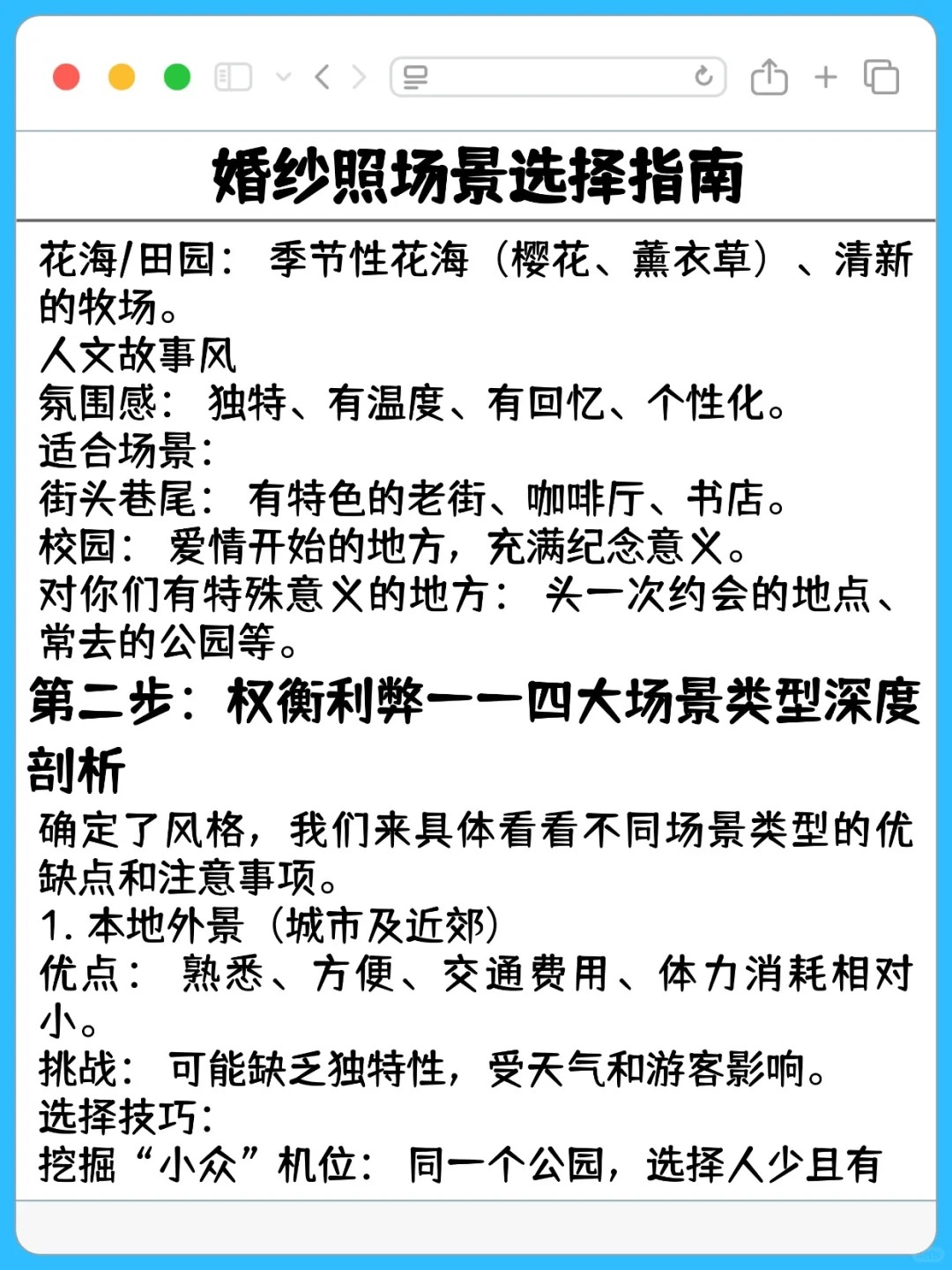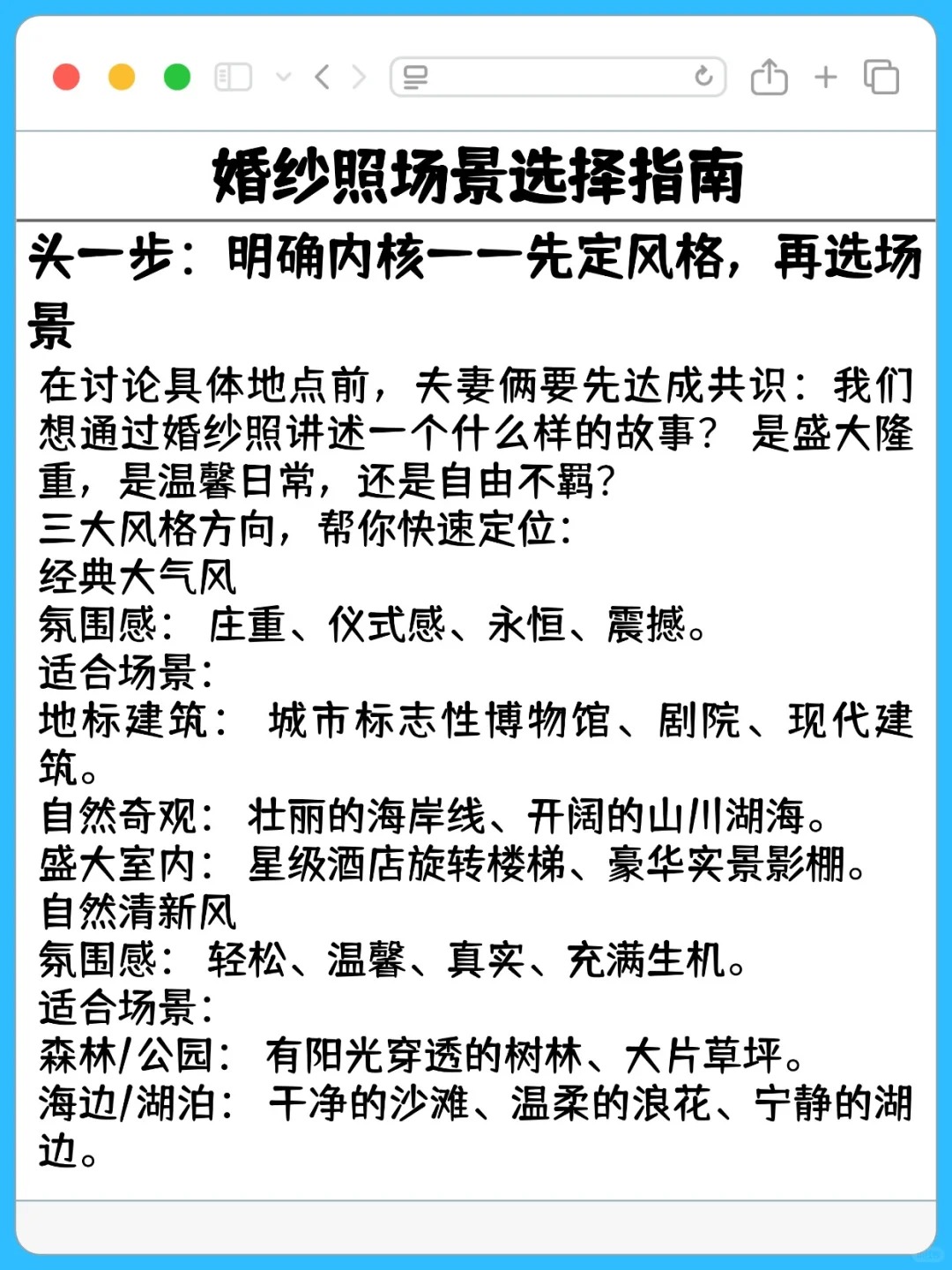 • 选对场景,婚纱照就成功了一半。面对众多选择,不必迷茫。本指南将通过一个清晰的决策流程,帮你锁定适合你们的拍摄地#婚纱照拍摄注意事项