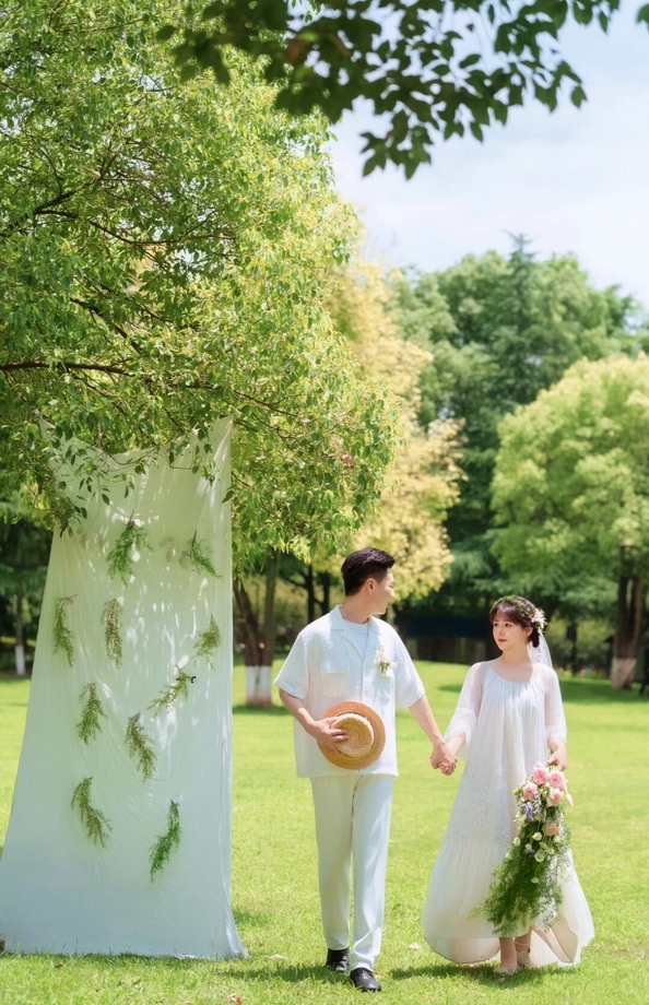 • 宽阔的草坪作为天然取景板 给予了极大的摄影空间 极尽高雅的沉浸式自然场景 呈现出最真实的情感状态 落日余晖下逆光拍摄 将爱情的美好定格在光影交错中#浪漫光影婚纱照