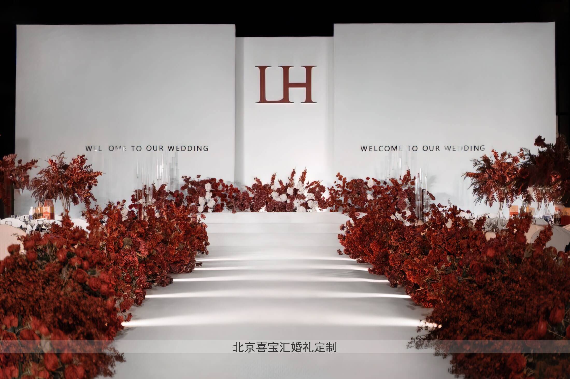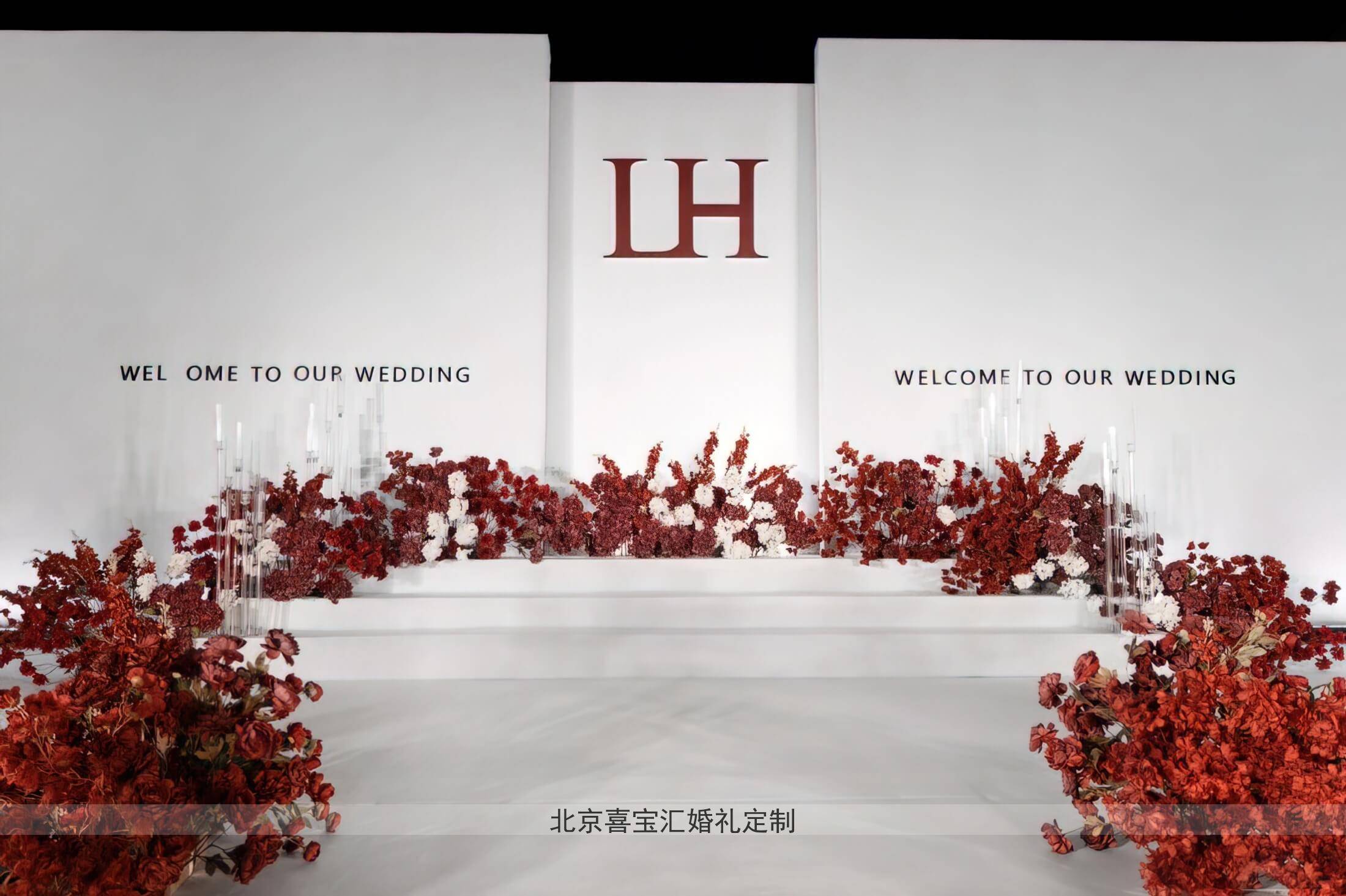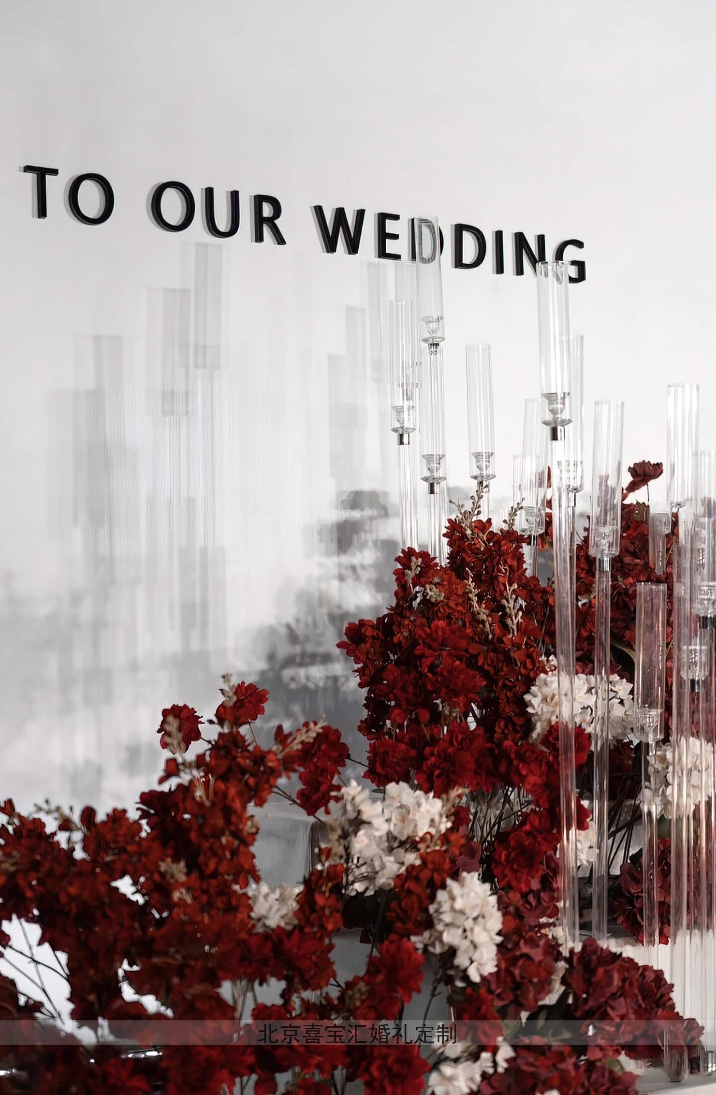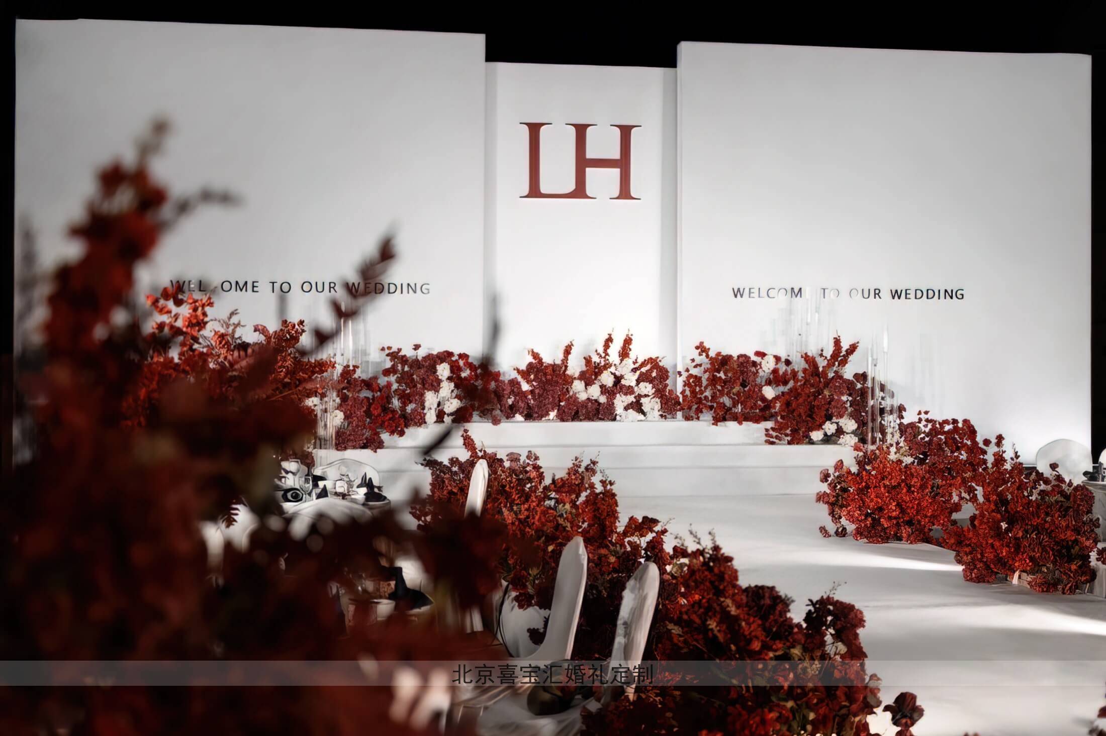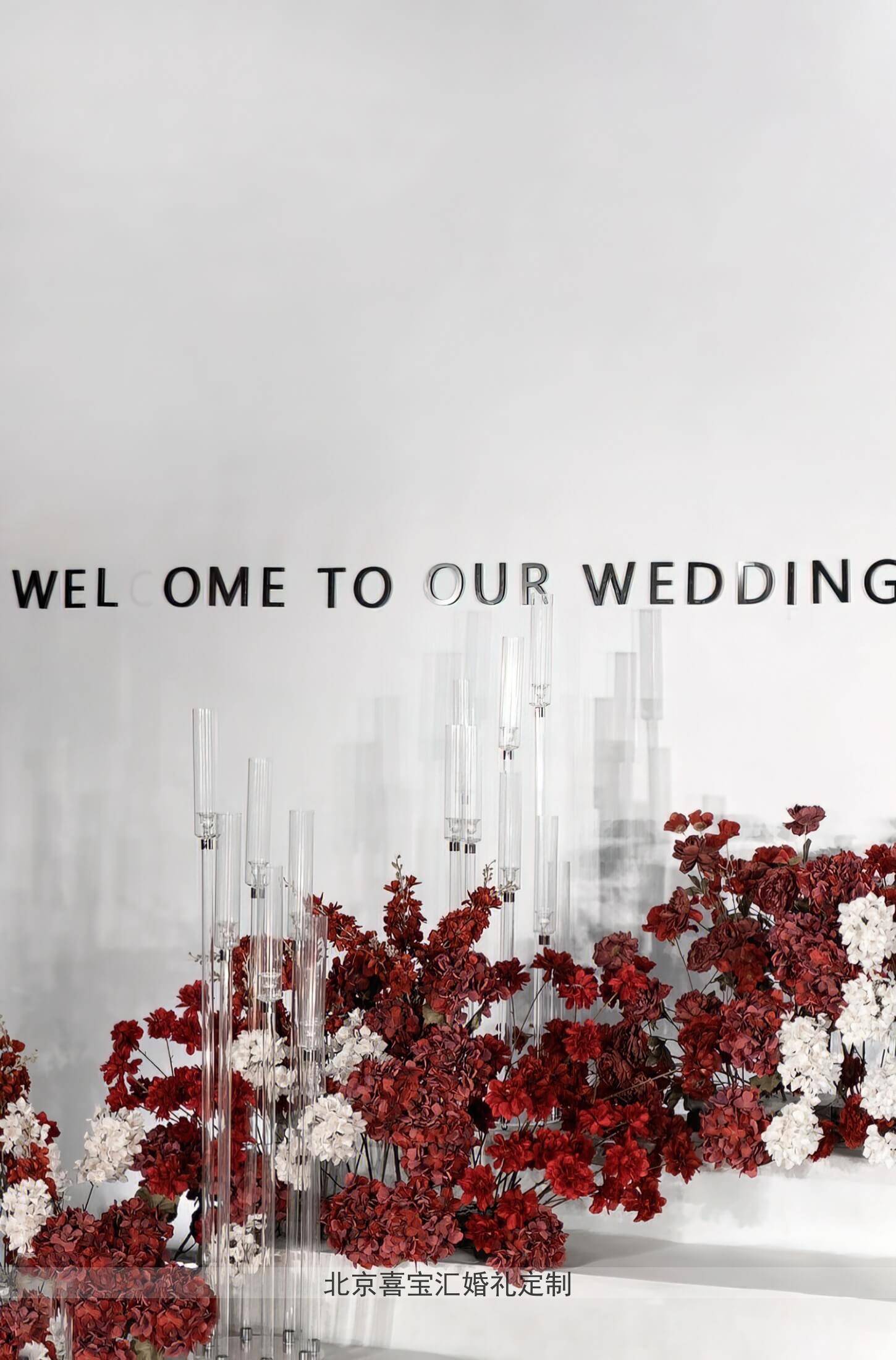 • 没有用浮华的设计取悦他人, 没有过多的道具堆砌修饰,简约而高级的艺术感溢出屏幕。 取一抹热烈勃艮第红与素净象牙白,红与白的色彩碰撞直白简单, 具备高强度的时尚冲击感,吸引来宾眼球,色彩之间的碰撞, 让婚礼的平面构架不再寡淡,整体设计呈现的也更有张力。