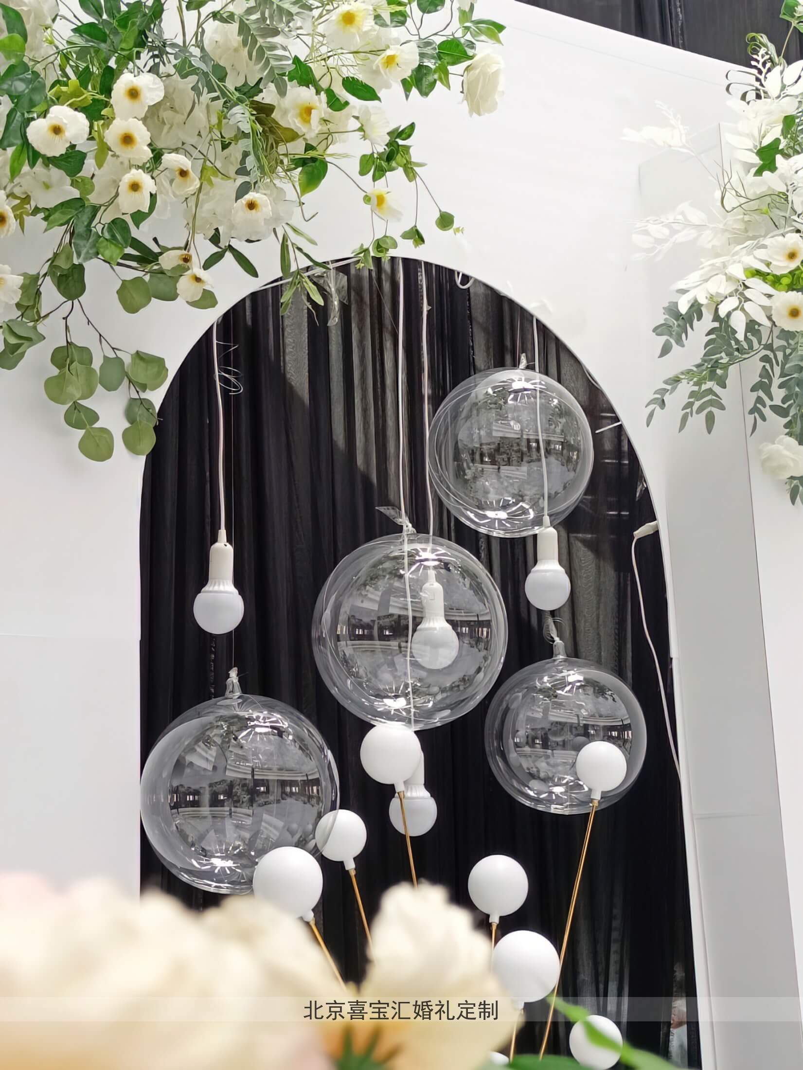 • 白绿的婚礼布置,想让清新怡人进行到底,取一片素静的白,配一抹绿,惜静淡雅,一如初见你般纯粹自然。韩式白绿系婚礼用心做了回答,干净的白色跳动着灵动的绿,清新的色系在极简的设计下给予空间括静优雅的气息。