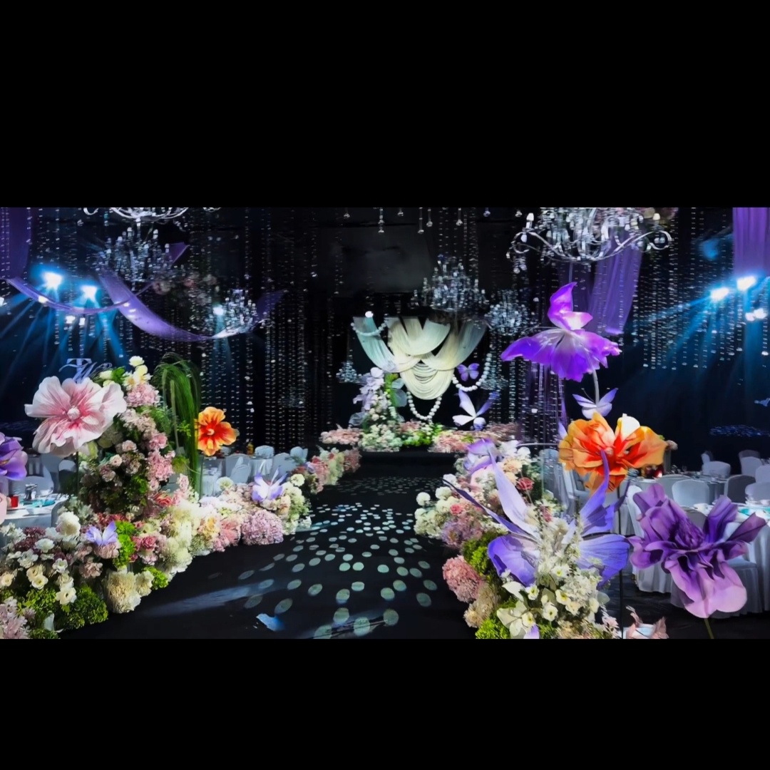 • 满天星辰入目皆是你,蓝色星空婚礼,四溢的流光飘洒点点荧火,仰望星辰满覆天际。