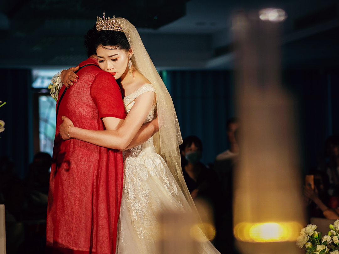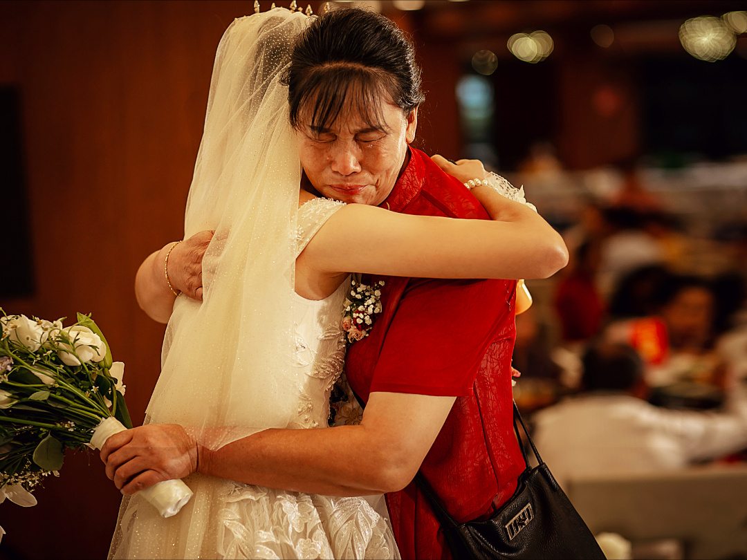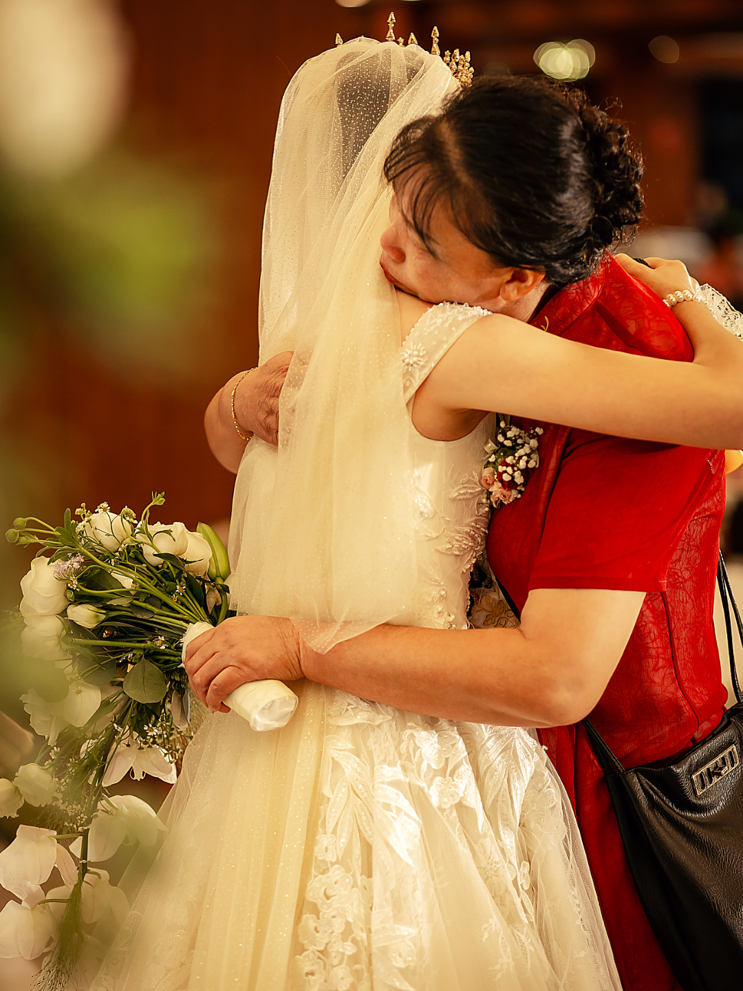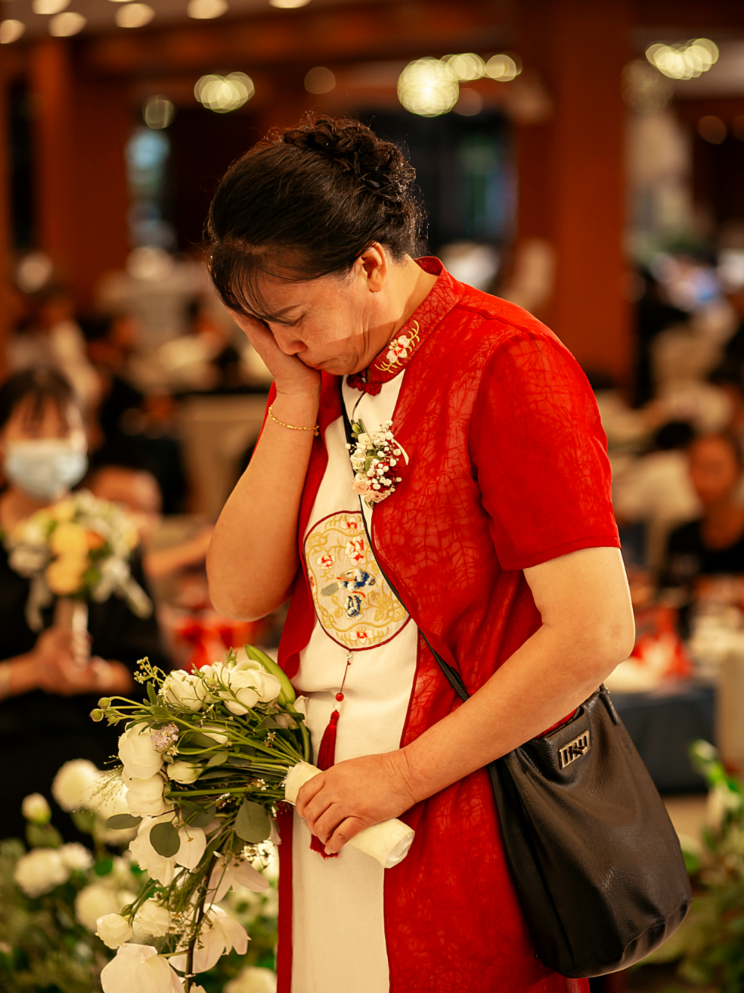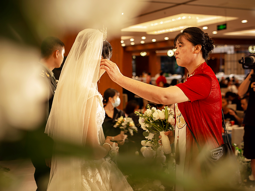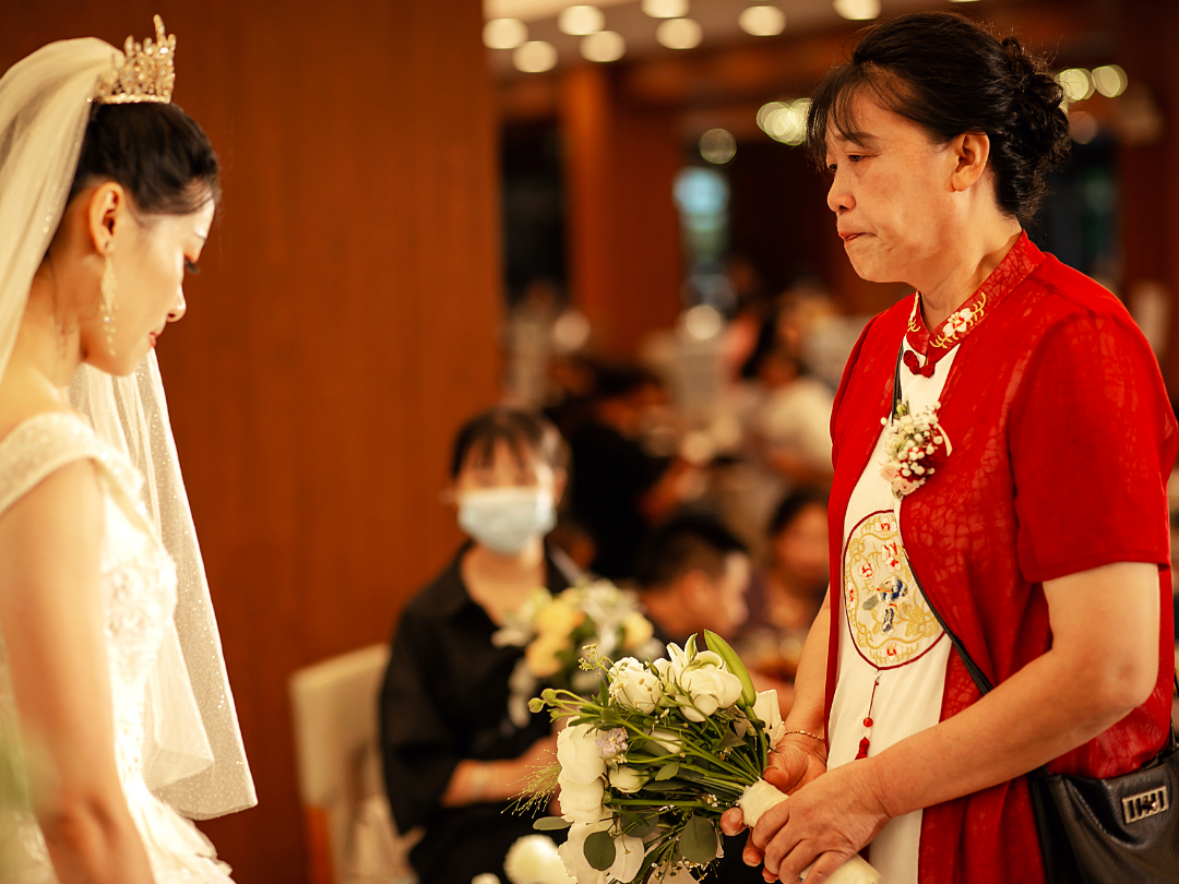• 当主持人问新娘这束捧花是准备抛下去还是送给谁的时候,新娘说这一束捧花,我要送给最疼爱我的妈妈,谢谢您从小到大一直这么疼爱我……