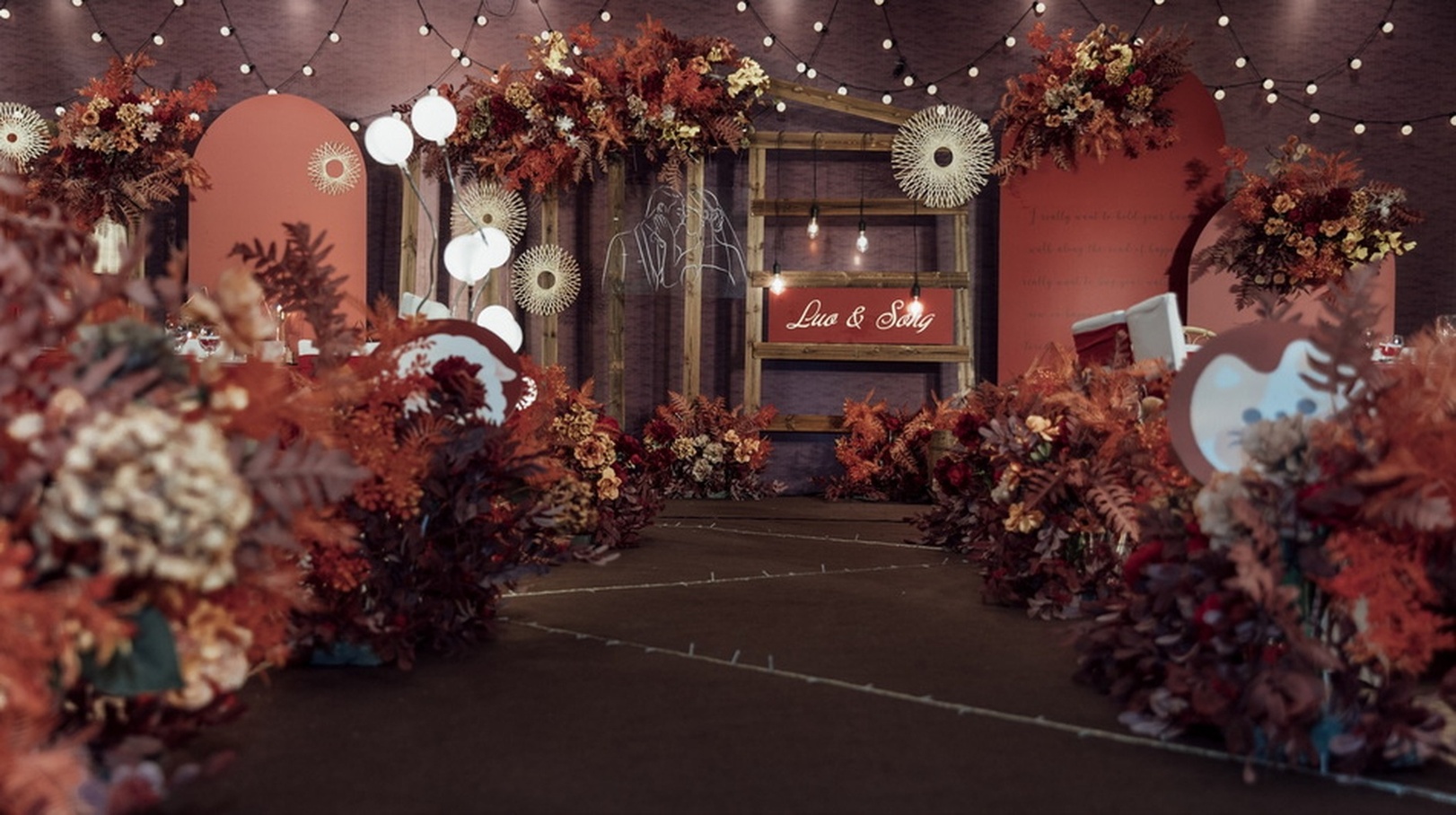 • 回忆起来你会幸福感爆棚,婚期比较紧,在我们沟通期间特别尊重新人意见,谈得来就果断定了,甚至有个朋友直接和我说,出的策划案也比较满意,设计师也不厌其烦根据我们提的要求反复修改,这是她近两三年参加婚礼看过主持最用心最卖力的,另外要特别强调下我们的司仪老师,真是没选错。